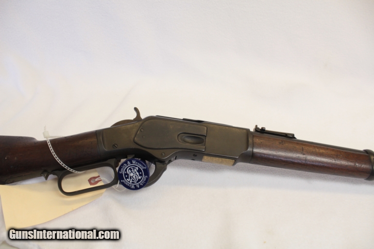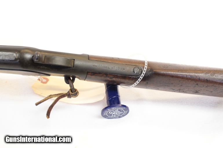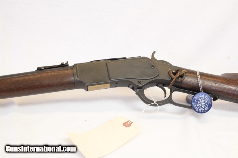 Description: Winchester 1873 Saddle Ring Carbine in 44-40. Round barrel full magazine, crescent butt with trap door butt plate. Original dust cover. Forend has the obligatory crack, and butt stock shows some wear and roughness I would call the whole gun above average for a SRC. Mechanically excellent with a very smooth action. Original rear sight. Finish is a dark gray possibly an old reblue but the edges and lettering are all every crisp and sharp 1889 production. Bore is typical at a 4 or 5 and slight ring but remains shootable with rifling throughout. An excellent affordable 73 SRC SOLD Curio/Relic: Yes Antique: Yes |