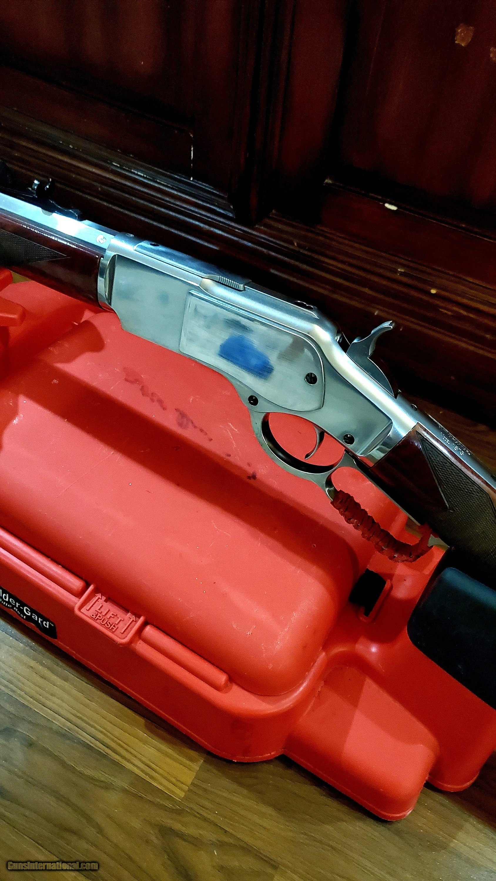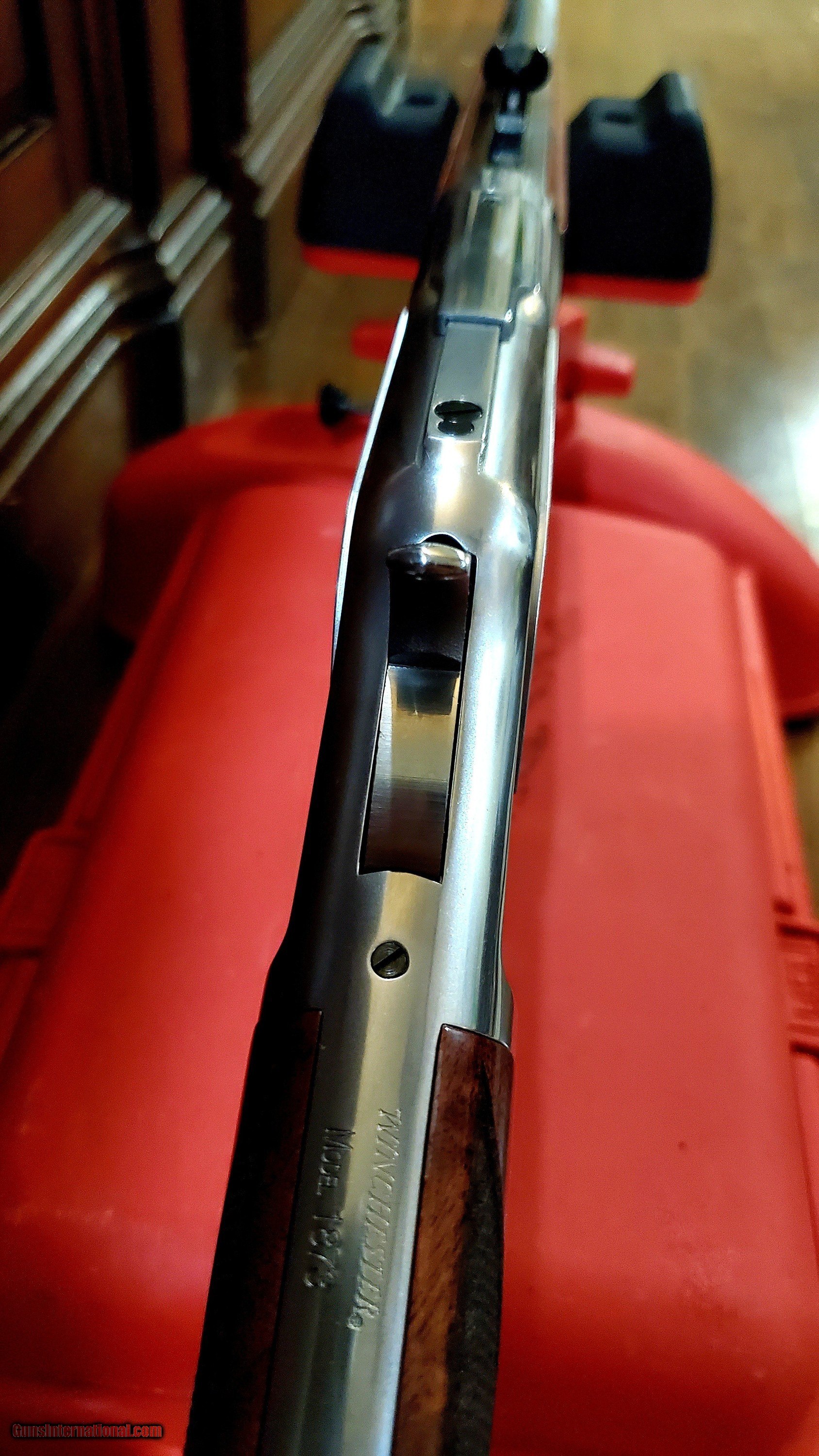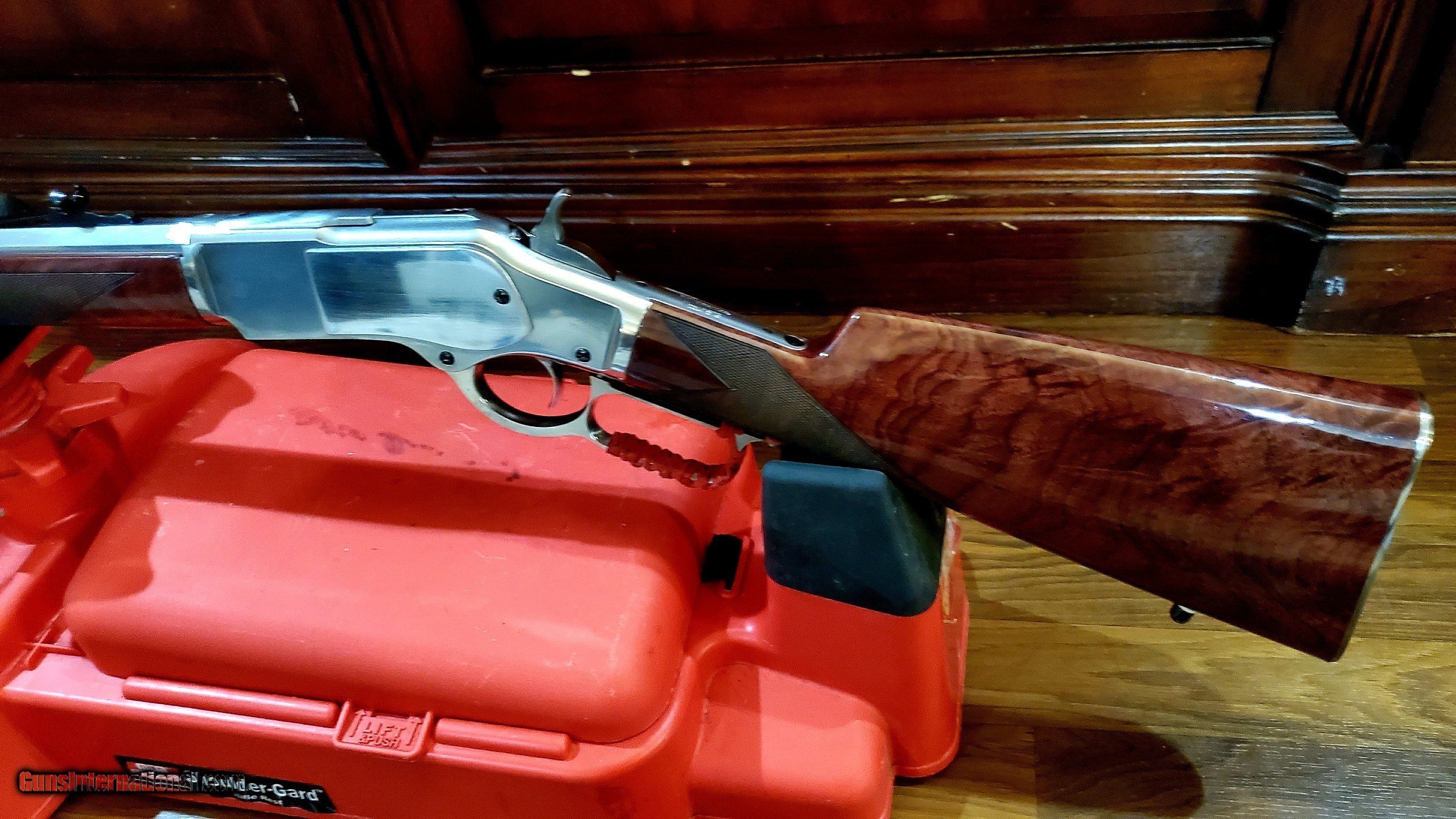 Description: Winchester 1873 Sporting Rifle ... .357 mag. / 38 Special...Serial # 22.. EXTREMELY LIMITED EDITION !!! Super Rare... This Hard to get Winchester model 1873 is not available to the normal public it was given a long time distributor with over half a century of Doing Bussiness Together. Serial Number 22 of 100 to ever be produced in this format. This Winchester features a 22 inch polished stainless steel Octagon that is chambered in 357 mag. / 38 Special also features a blued magazine tube and blued loading gate it also sports beautiful Checkered Grade IV African Black Walnut furniture. Also has a checkered shotgun style buttplate Semi-Buckhorn rear sight in brass bead front sight. Including Original Box .This gun was made to wear it could be engraved . This is one of the finest if not the finest example of the new model Winchester model 1873 that has been produced to this date. FINAL PRICE DROP SOLD Rifle Caliber: .357 Magnum, .50 Handgun Caliber: .38 Special Manufacturer: winchester Model: 1873 Serial Number: 22 Barrel Length: 22 Bore: 357 Chambers: 357 mag / 38 spl Ejectors: top Condition: mint shot once Metal Condition: mint Wood Condition: mint Bore Condition: mint Barrels: 22 inch Barrel Type: octagon Action: lever Stock: grade 4 walnut Butt Pad: checkered shotgun Finish: polished stanless Weight: 7lb1oz Sights: semi buckhorn Manufacture Date: 2017 Case: original box |