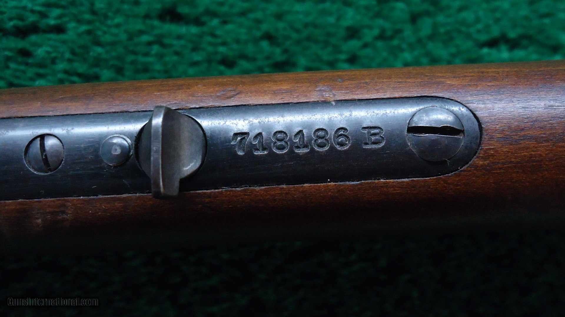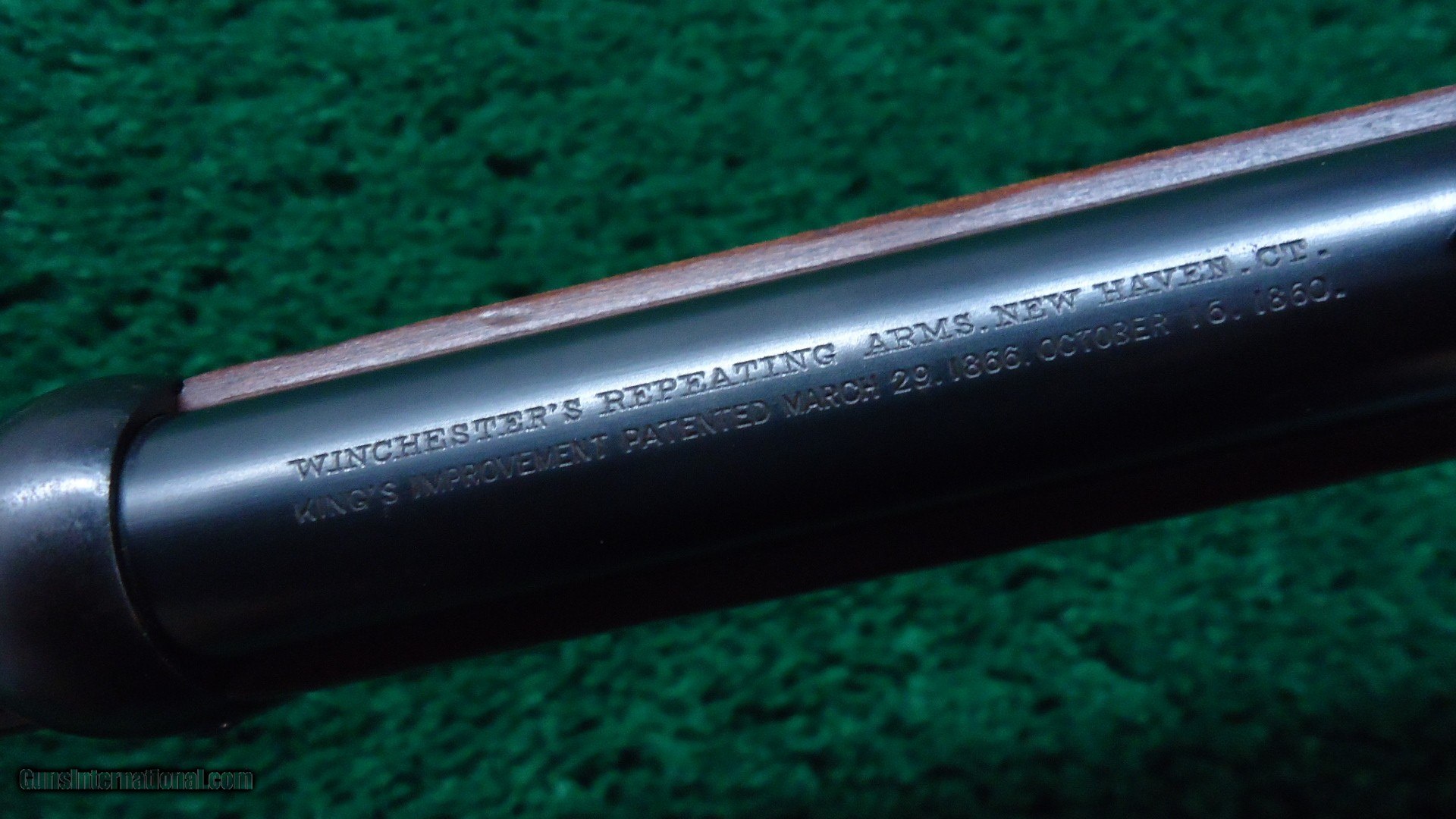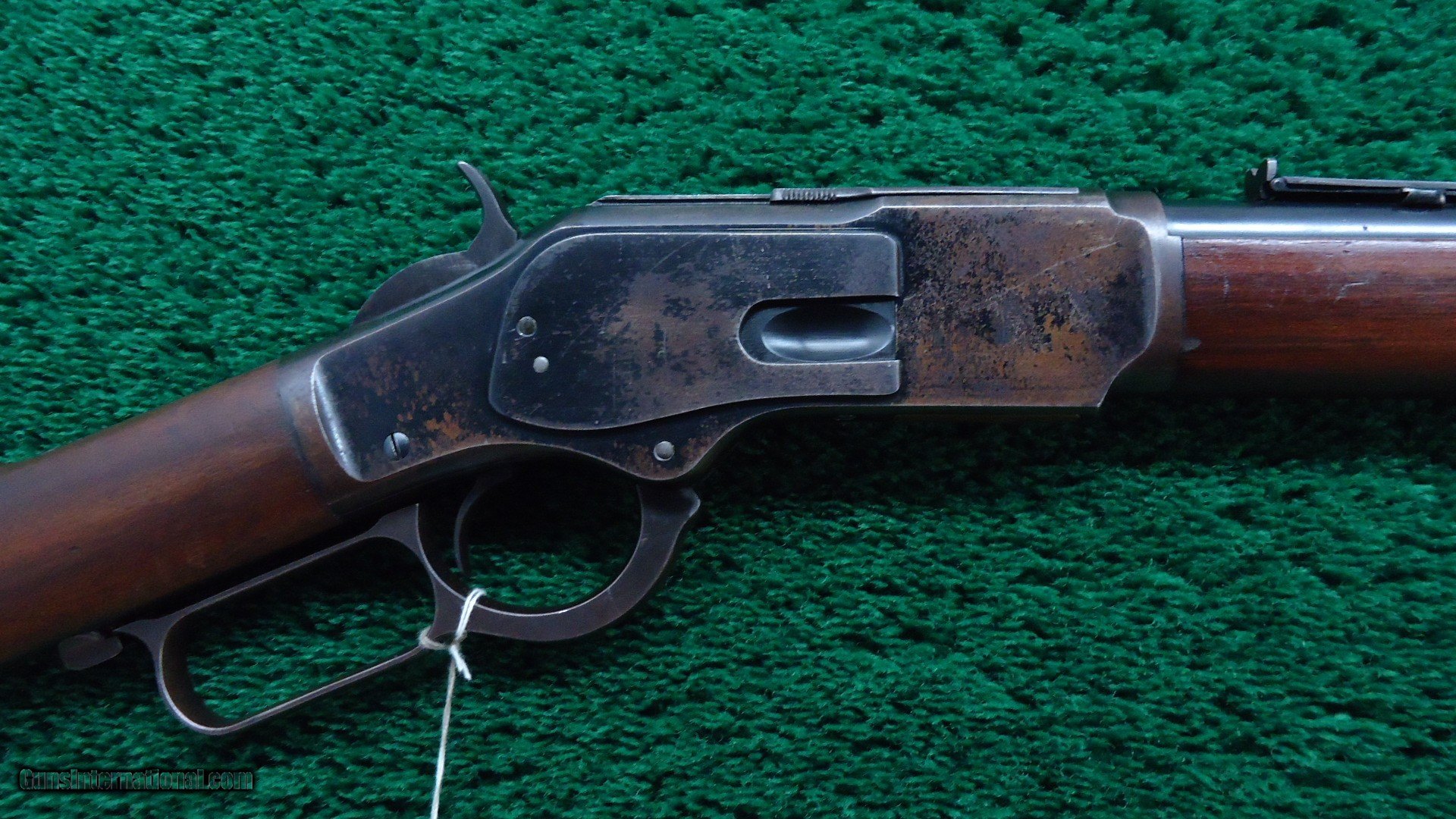 Description: Caliber 32 WCF. 20 inch round barrel, full length mag tube and carbine butt. Sights include blade front sight and folding ladder rear sight. Barrel and mag tube retain most blue that is starting to thin. Receiver has flaked and retains about half of the blue finish with some brown color in the flaked areas. Wood is quite good condition with just minor handling mars. VG+ bore and crisp action. Complete with Factory Letter. Leroy Merz Antique Firearms specializes in antique and vintage Winchesters and other fine American firearms. Since 1965 Mr. Merz has taken part in the world of firearms and has been a contributor to many well known reference books. We have hundreds of additional guns in every price range at our home online. Search for Merz Antiques in google. SOLD Antique: Yes |