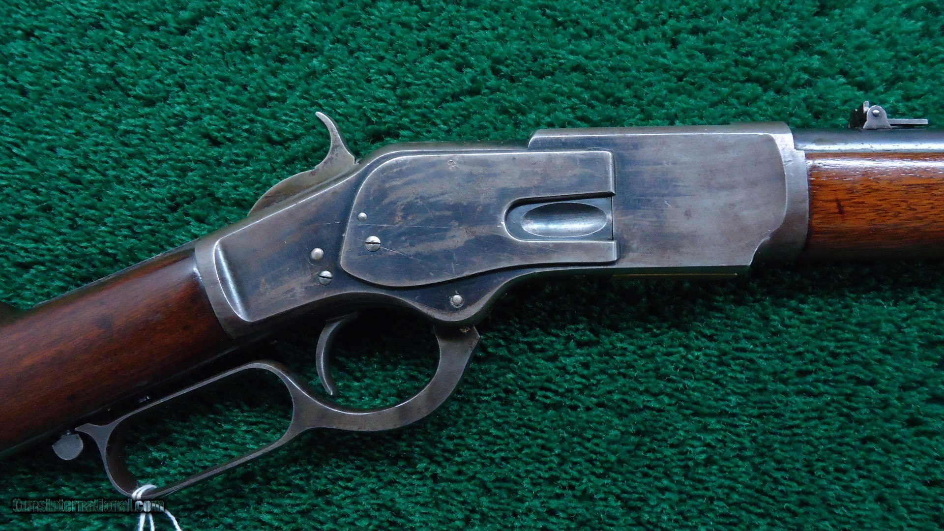 Description: Original sights. Excellent bore. Original thumbprint dust cover. Correct saddle ring. Barrel retains about 90% blue toning slightly. Receiver has about 75% blue on one side and 60% on the other. Wood has been sanded and refinished. It is somewhat oversized around the receiver and buttplate. Wood is sound. Gun is original except for the wood having been played with. Mechanical condition is excellent. Should make a great shooter. Leroy Merz Antique Firearms specializes in antique and vintage Winchesters and other fine American firearms. Since 1965 Mr. Merz has taken part in the world of firearms and has been a contributor to many well known reference books. We have hundreds of additional guns in every price range at our home online. Search for Merz Antiques in google. SOLD Antique: Yes |