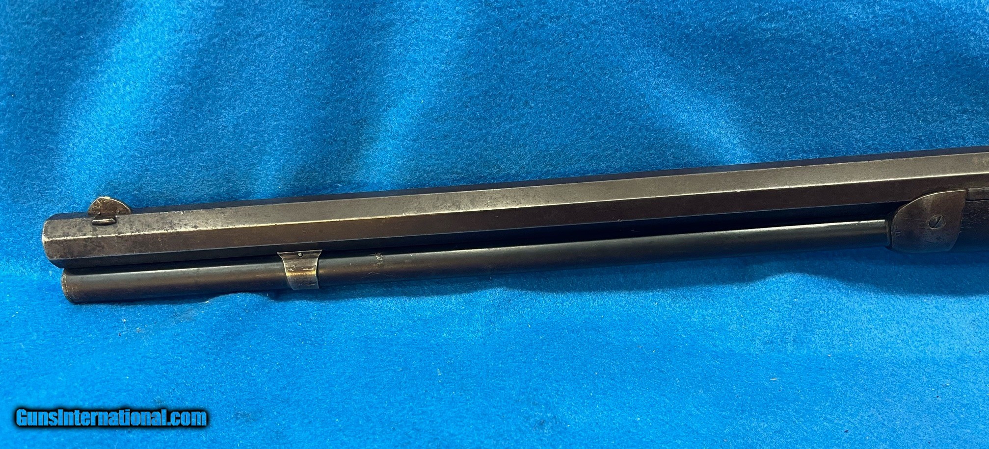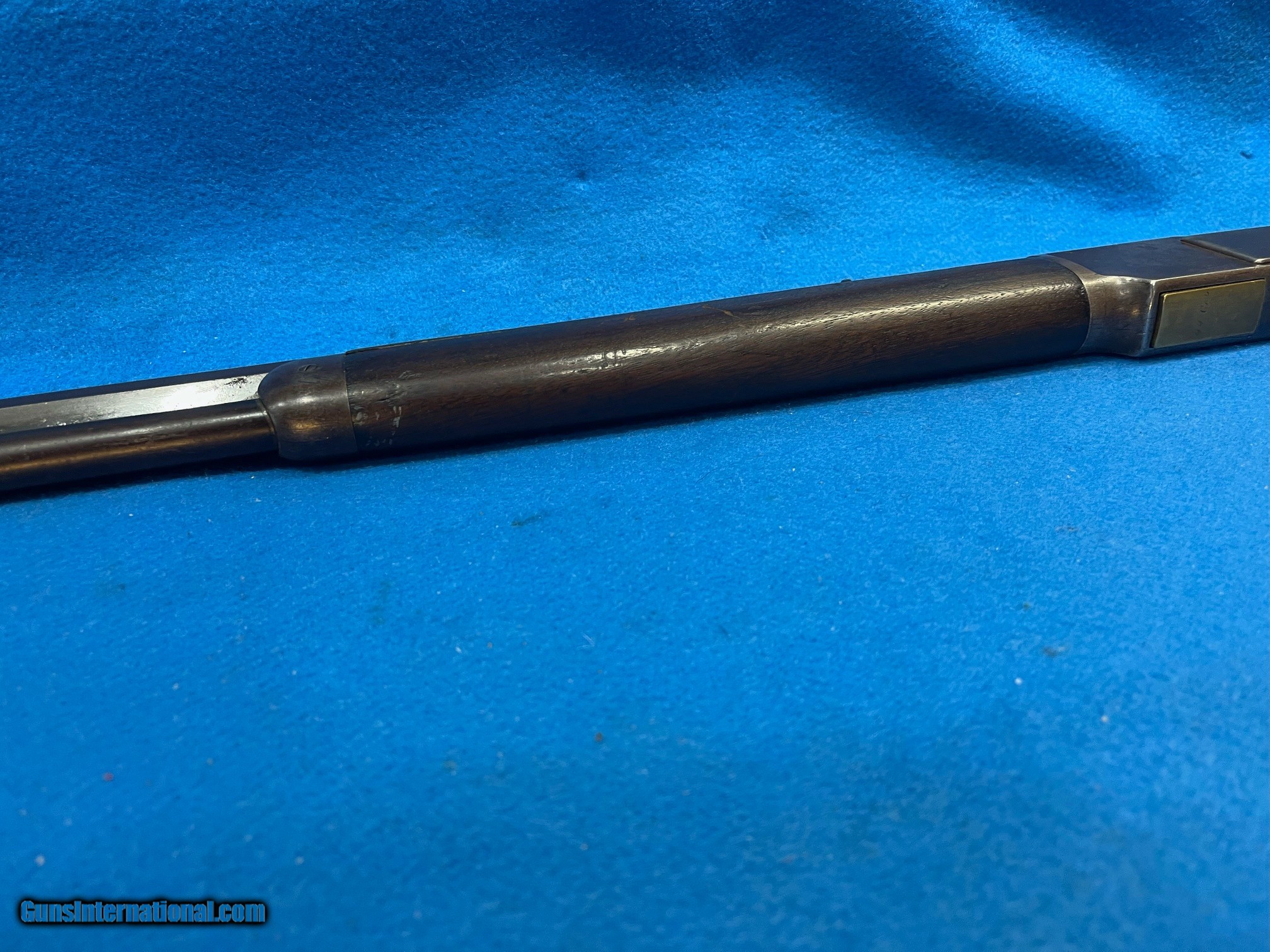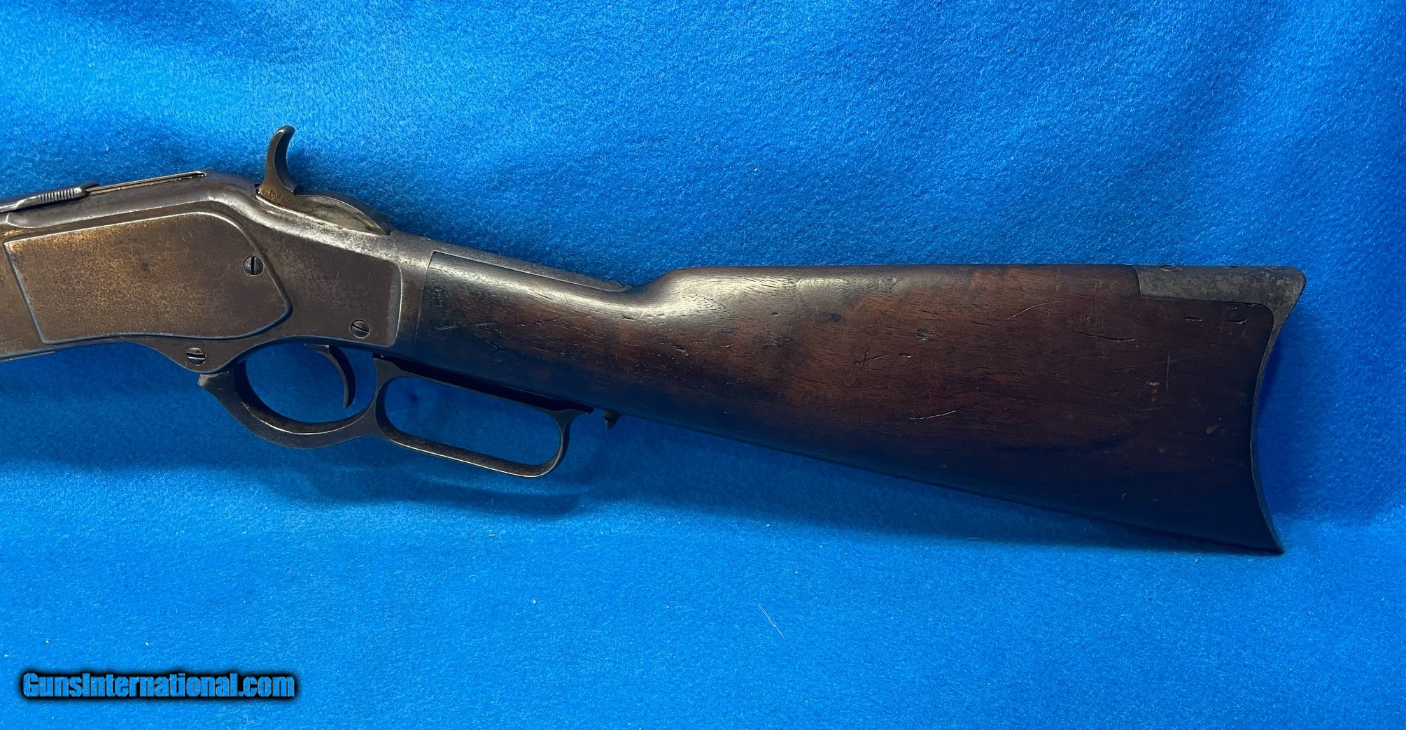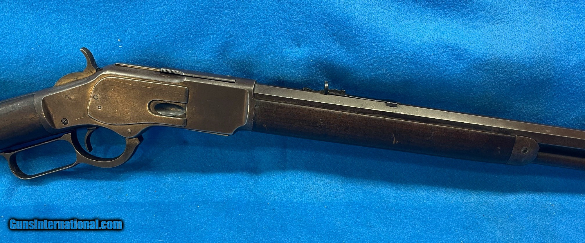 Description: WINCHESTER MDL. 1873, CAL 44 WCF, SER. 344077B. THIS IS A GREAT FIND FOR THE GUY THAT WANTS A HISTORIC WINCHESTER THAT'S "BEEN THERE AND DONE THAT". THE GUN HAS GAINED A DARK BLUE BROWN PATINA OVER THE SPECIAL ORDER 23.5" OCTAGONAL BARREL AND FRAME. THERE ARE ALSO SOME SMALL AREAS OF PIN PRICKS BUT NO REAL RUST PATCHES, DEEP SCRATCHES OR RUB MARKS. THE WALNUT STOCK AND FOREARM HAS RETAINED ABOUT 90-95% OF THE ORIGINAL LACQUER, HOWEVER THERE ARE SEVERAL SMALL NICKS AND DINGS AND A SLIGHT SPLIT IN THE FOREARM ON THE LEFT SIDE, ALL PARTS ARE ORIGINAL TO THE GUN, INCLUDING THE DUST COVER MANY TIMES MISSING IS PRESENT. IT ALSO SEEMS TO FUNCTION PROPERLY. THE BORE IS BRIGHT WITH WELL DEFINED RIFLING AND A MODEST FROST THROUGH OUT. THIS IS A REAL FIND FOR THE GUY THAT WANTS A FAMOUS HISTORIC FIREARM ICON AND DOESN'T WANT TO SELL HIS FIRST BORN TO GET IT. .....INVESTMENT PRICED AT .....$1995.*** ***100% OF THE GUN'S PRICE IS SATISFACTION GUARNTEED SOLD Rifle Caliber: .44-40 Winchester |