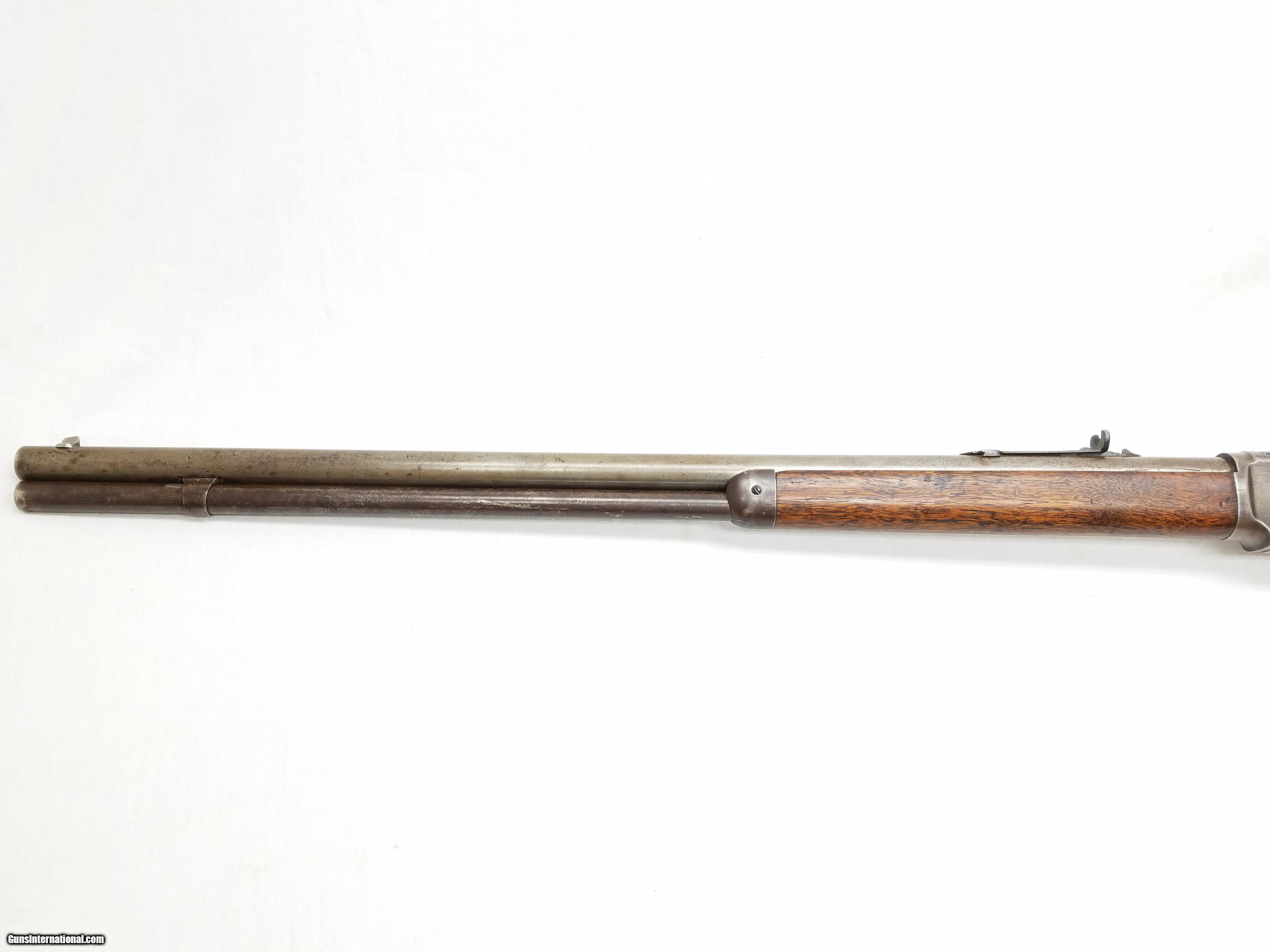 Description: This is a Winchester Model 1873 chambered for 38-40. The 26” tapered round barrel is patinated and uncorroded. The bore is rough but has maintained it’s rifling. The non original front sight is a fixed post and the non original rear sight is adjustable for elevation. The blued magazine tube is also patinated and undamaged. The receiver has developed a patina and has a few dings but there is no corrosion. The dust cover, hammer, trigger, and lever are also patinated and undamaged. The walnut forend and buttstock have a few scattered dings. The buttstock is mounted with a patinated crescent “trap” buttplate but does not have the cleaning rod. Length of pull is 12-¾”, overall length is 45-½”, and weight is 8.2 lbs. Our stock number is #A437. Willing to ship anywhere in the US, buyer pays freight and insurance. SOLD Manufacturer: Winchester Model: 1873 Caliber Info: 38-40 Metal Condition: fair Wood Condition: fair Bore Condition: rough Barrel Type: round Action: lever Stock: walnut LOP: 12-3/4 Finish: patina, blue Weight: 8.2 lbs |