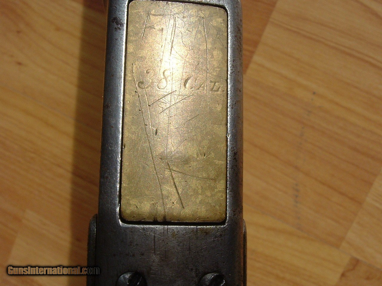 Description: Winchester Model 1873 Carbine, .38 WCF (Winchester Center Fire) caliber, very good bore with strong rifling, needs a scrubbing. Original full-length 20" barrel, with clear Winchester address and patent date markings, "38 W.C.F." at top of breech. Original sights. Metal overall is a dark aged grey patina finish. "MODEL 1873" marking on the top tang, with the bottom tang bearing the serial #464490B, 1893 manufacture. Brass loading block marked "38 CAL" as well, worn. The wood is very good, with age handling wear and a few dings. The buttstock is a rifle stock and could very well be a special order as it matches the entire gun. Mechanics are very good. Crescent-style buttplate, with cleaning rod compartment. Original dust cover present. SOLD Antique: Yes |