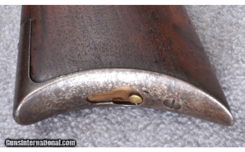Description: Wood has darkened with age with little to no remaining finish. Remains free of cracks. Metal shows no remaining finish with some brown patina. Bore is dark and pitted throughout with rifling still visible. Screws appear unturned. SOLD Manufacturer: S/N 346XXXB Caliber Info: .44-40 WCF Metal Condition: Fair Wood Condition: Fair Bore Condition: Poor Barrels: 24" Octagon Triggers: Original Stock: Uncheckered Walnut Stock Dimensions: 12 1/2" LOP Fore End: Uncheckered Walnut Butt Pad: Crescent Steel Weight: 8 1/2 LB Sights: Blade Front - Notch Rear Item Location: Wheeling, WV |