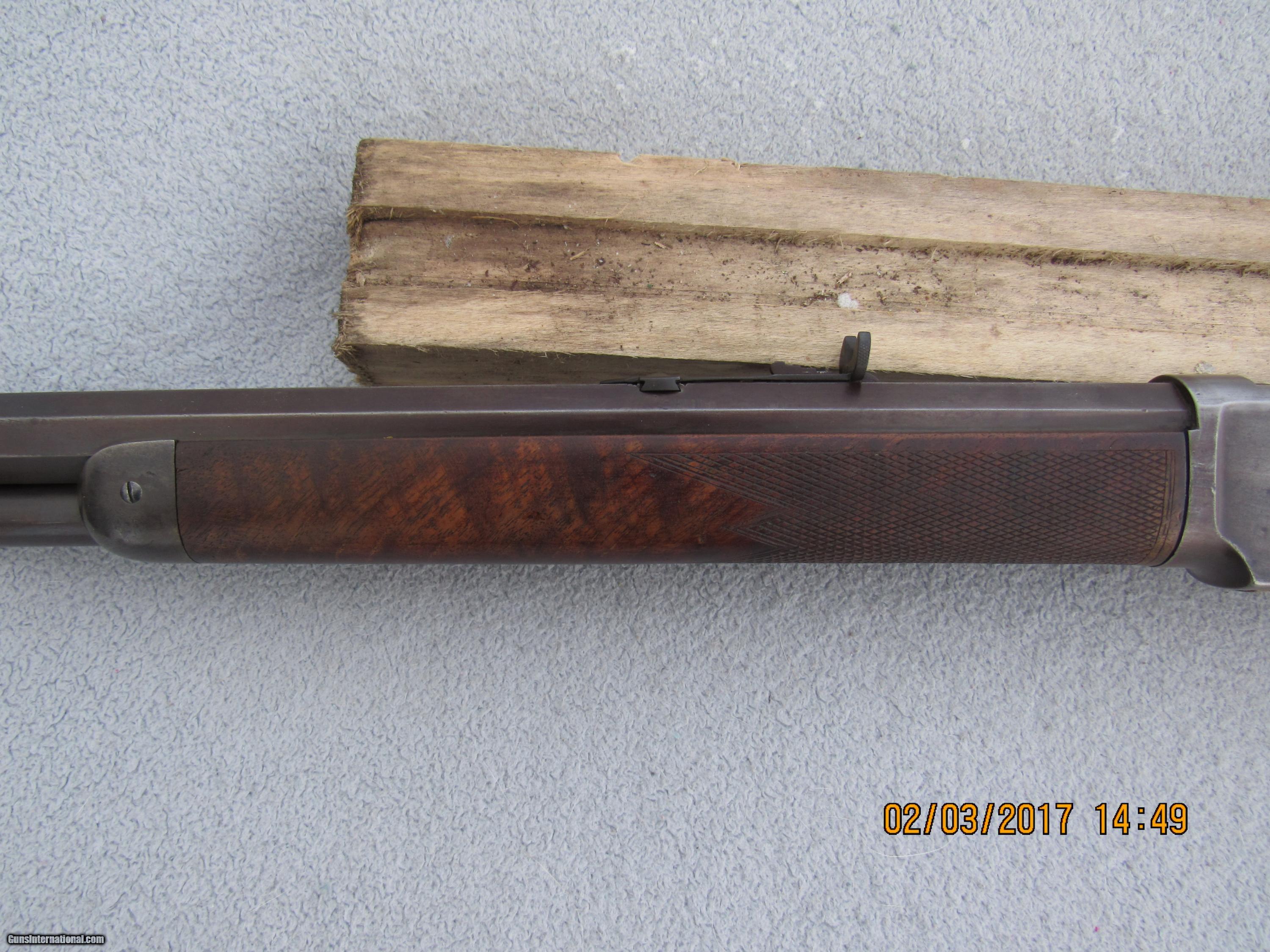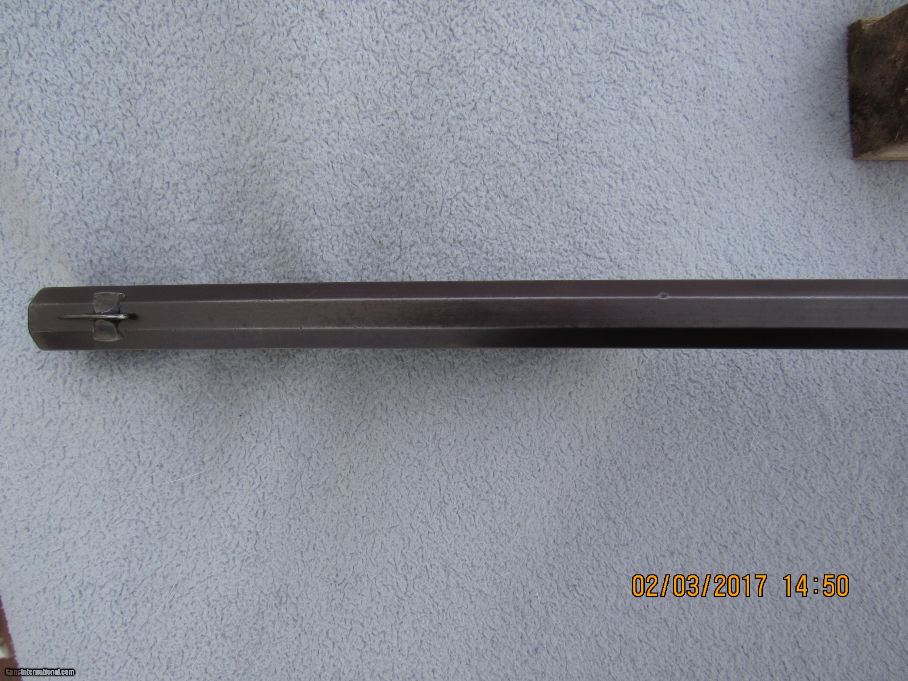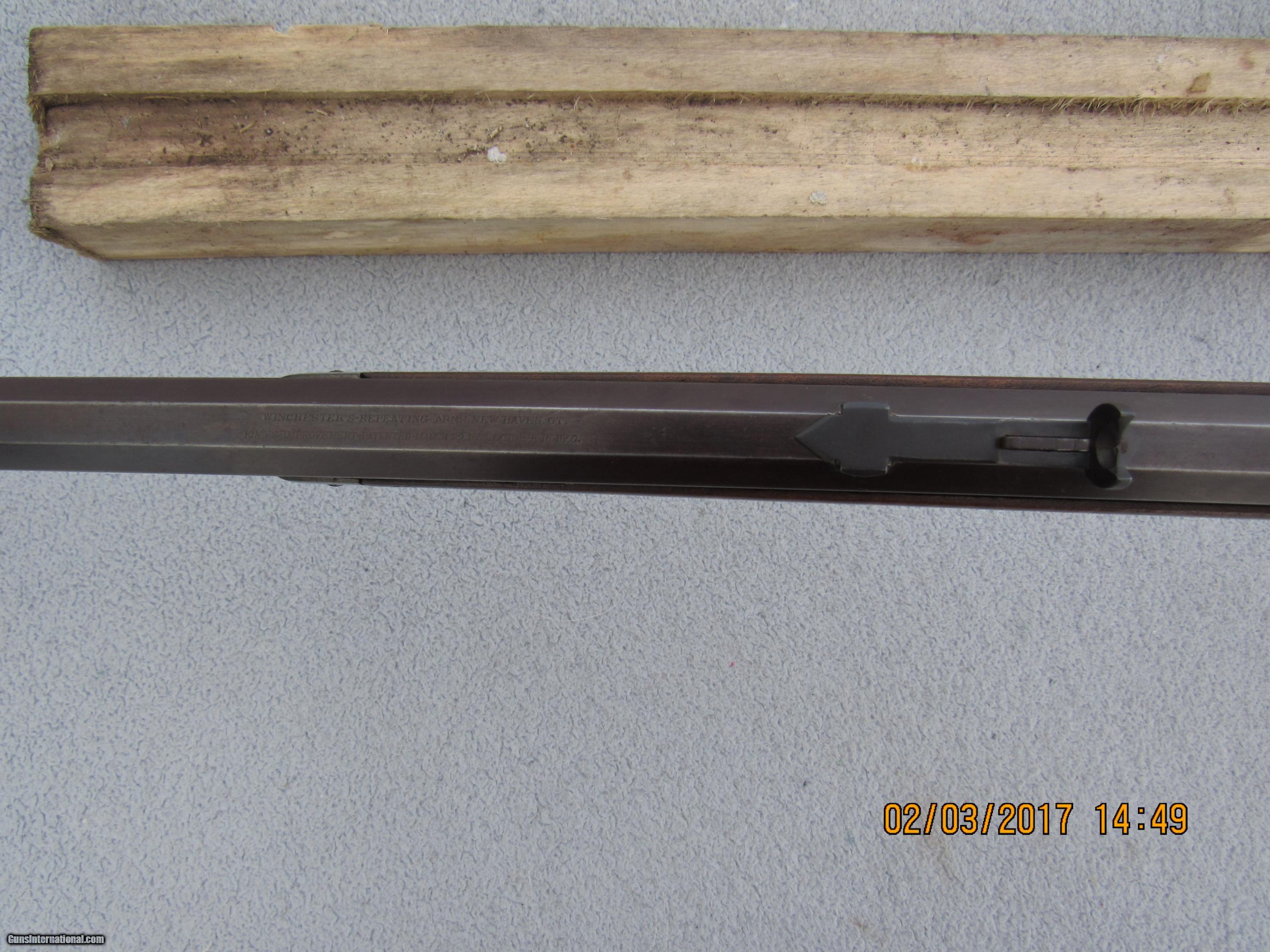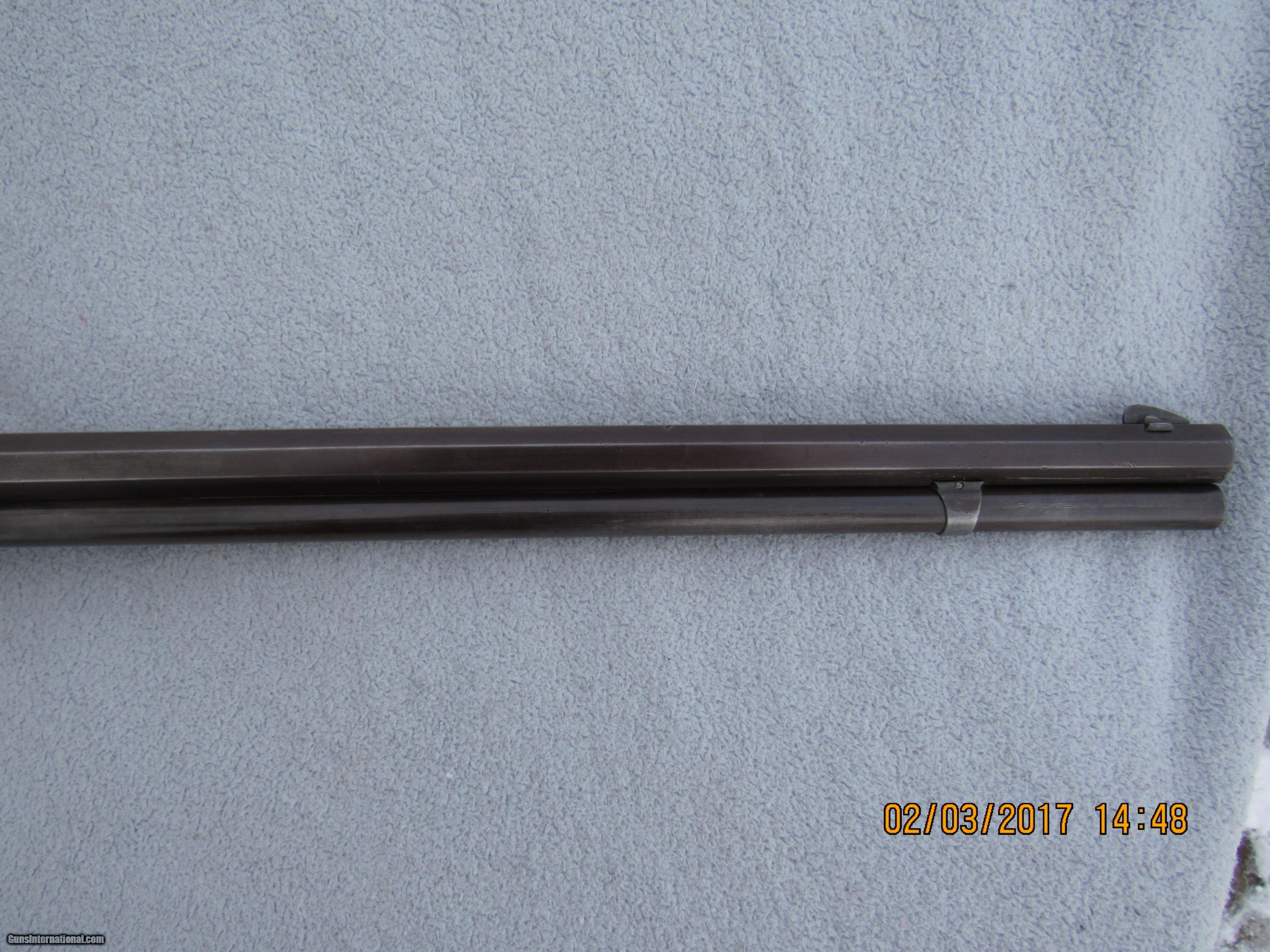 Description: Winchester Model 1873 Full Deluxe First Model rifle serial # 13566. Factory records in the letter from the Cody Museum state: Type: Rifle Barrel type: Octagon Barrel length: 28" Trigger: Set XXX Checkered stock Casehardened Received in the warehouse on December 31, 1874 Shipped from the warehouse on January 4, 1875, Order number 4987 Rifle remains completely original and untouched in its factory configuration. Of course it is caliber 44 as all the First Models were and has a full magazine since that fact is not stated in the records unless its a special length. Set trigger fuctions properly, as does the half-cock safety. Bore is very good. Original checkering in good condition with some wear and scratches but never recut. Original XXX stocks are also in very good condition, never sanded or refinished, no extra holes, no splits or cracks, just normal usage wear and slight shrinkage of forearm due to age (is a tad loose and has a very small gap due to drying out and shrinking; common on a rifle this old). Still has original lever latch, dust cover, and screw-in type magazine tube end cap, as well as the short sporting rear sight common to the First Model and early Second Model 1873s. Has a Rocky Mountain front sight that's been there forever as finish matches rifle but no mention in factory records. Traces of silvery mottled case colors in the protected areas around the sideplates and part of the receiver, otherwise case colors have grayed out over time. Removal of the sideplates shows the number "566" stamped on the inside of each, indicating the last 3 digits of the serial number and matching the case colored sideplates to the rifle. Barrel and mag tube are a deep patina with lots of coverage and normal wear to the octagon edges. Trap door for buttplate and brass carrier block remain uncleaned and that nice mustard color you want to see on these old rifles. Naturally no caliber marking on barrel or carrier block. Assembly numbers match on lower tang and upper inletting of buttstock. No wobble to mag tube. Action is still quite crisp with no hang-up. Fully functional and highly collectible First Model 1873 rifle with many special features that is sure to appreciate in value over time. Antique so no FFL required. Factory letter will be included with rifle. For the past 30 years I have specialized in antique and vintage Winchester firearms, parts, sights, accessories and collectible ammunition. Combined from various internet sites, I have over 650 positive transaction feedbacks, so you can feel confident that my items are presented and described honestly. I am a member of the Winchester Arms Collectors Association, the Buffalo Bill Historical Society/Cody Firearms Museum, and a Life Member of the NRA. I am always looking to purchase single pieces or collections. SOLD Antique: Yes Manufacturer: Winchester Model: 1873 Serial Number: 13566 Caliber Info: 44 WCF Barrels: 28 Action: Lever Triggers: Set Manufacture Date: 1874 |