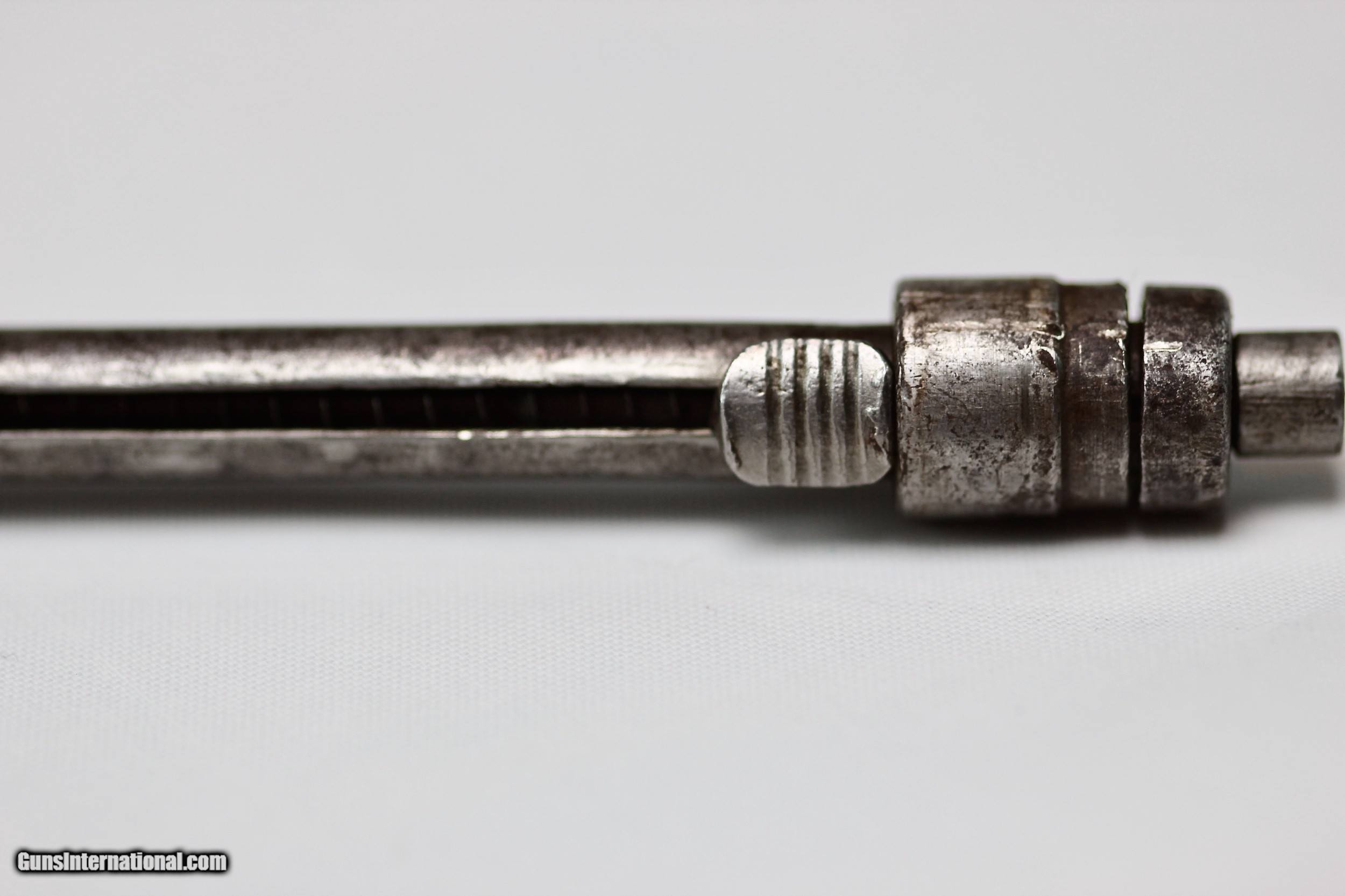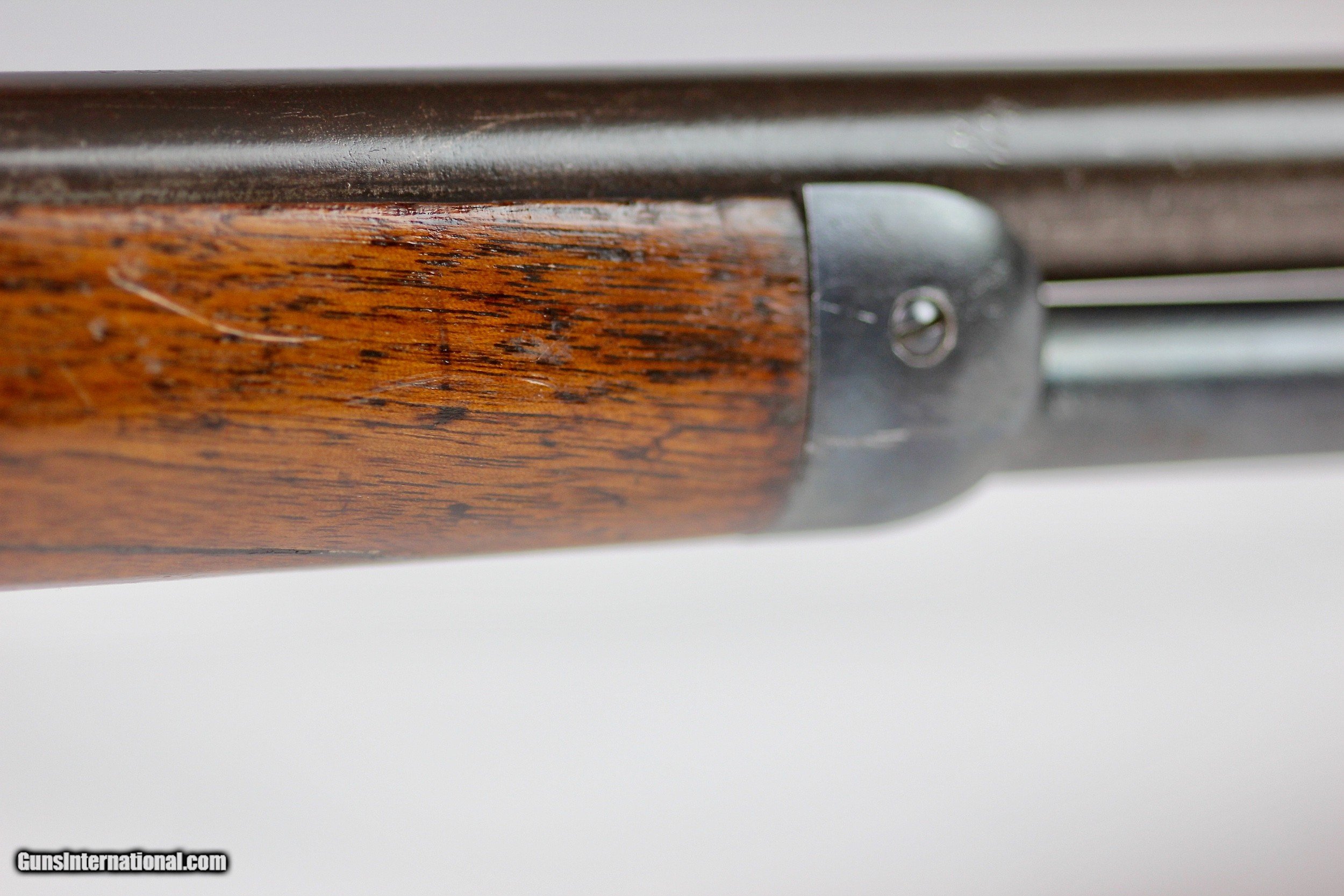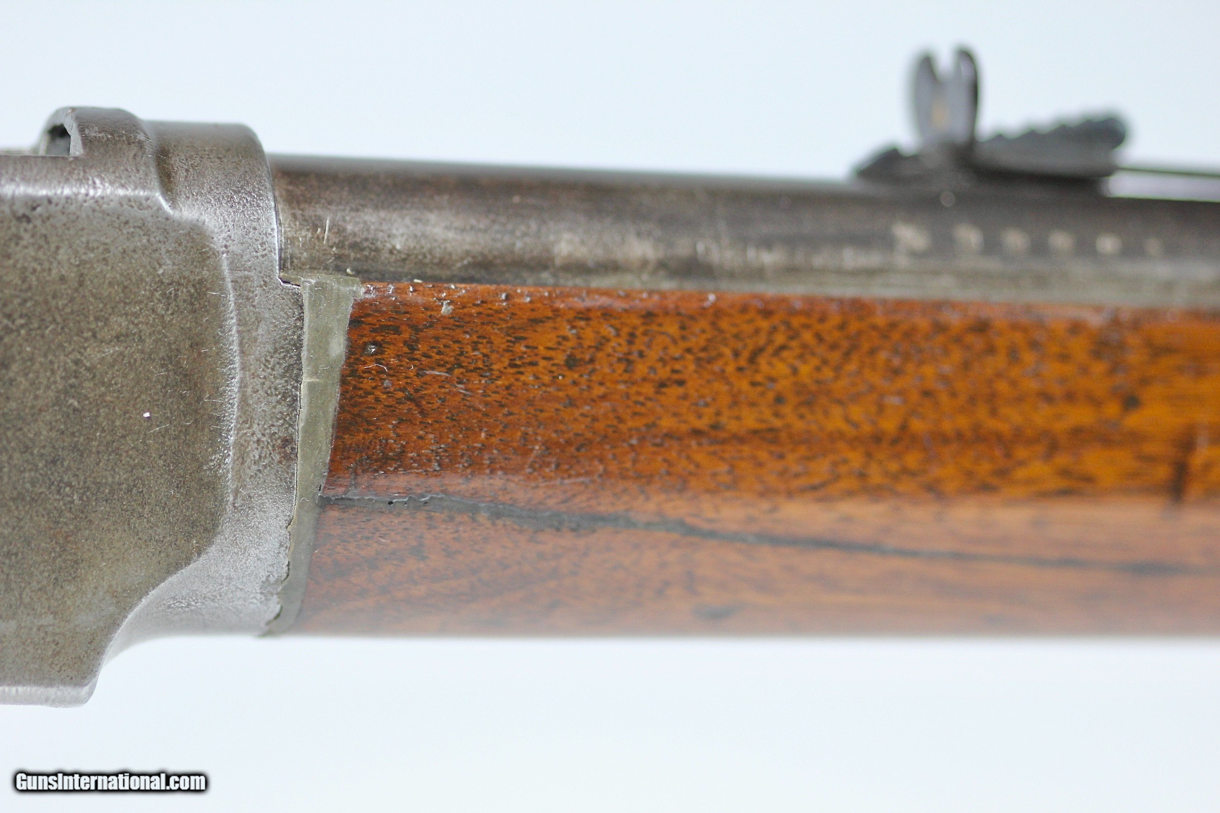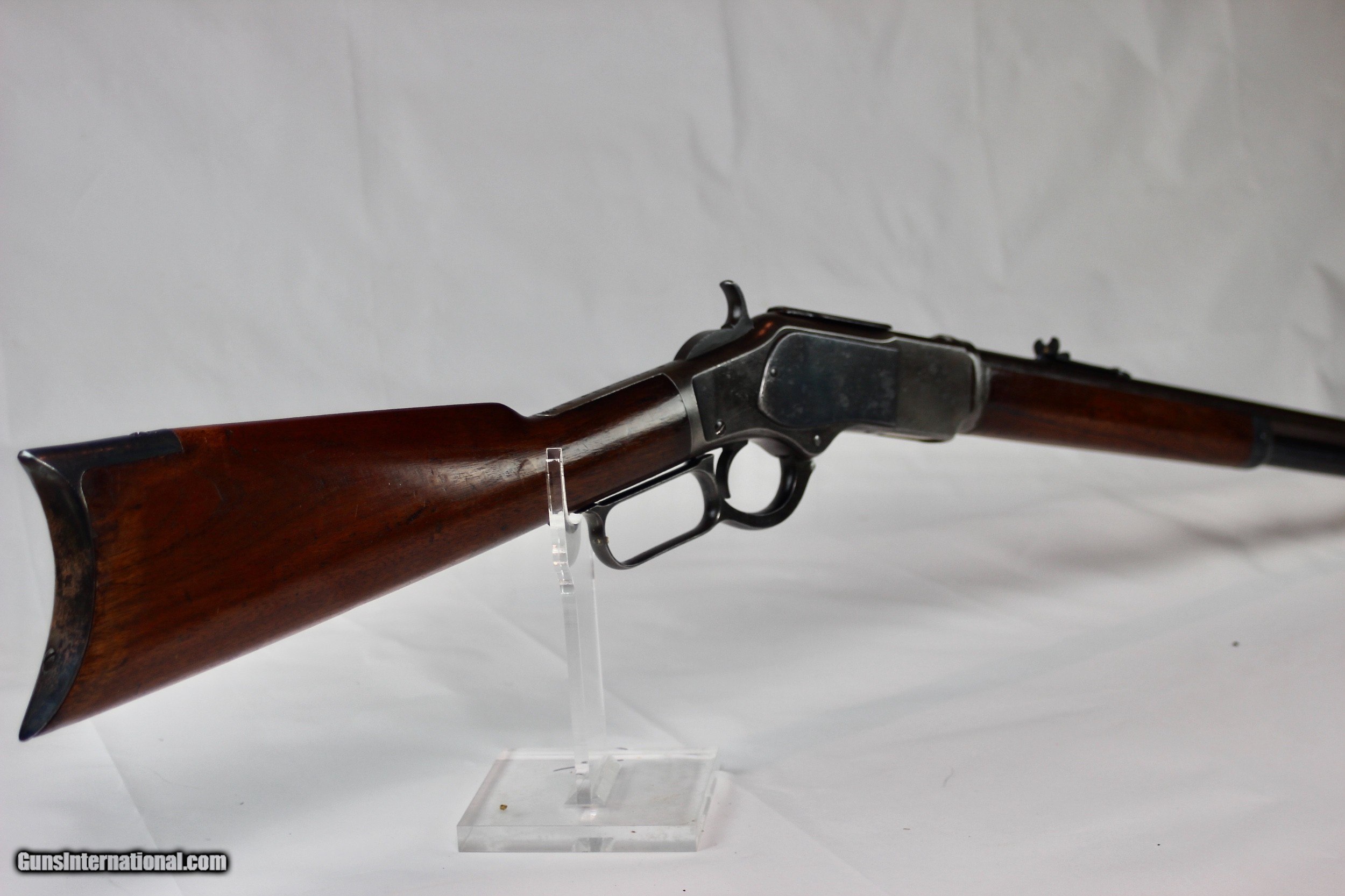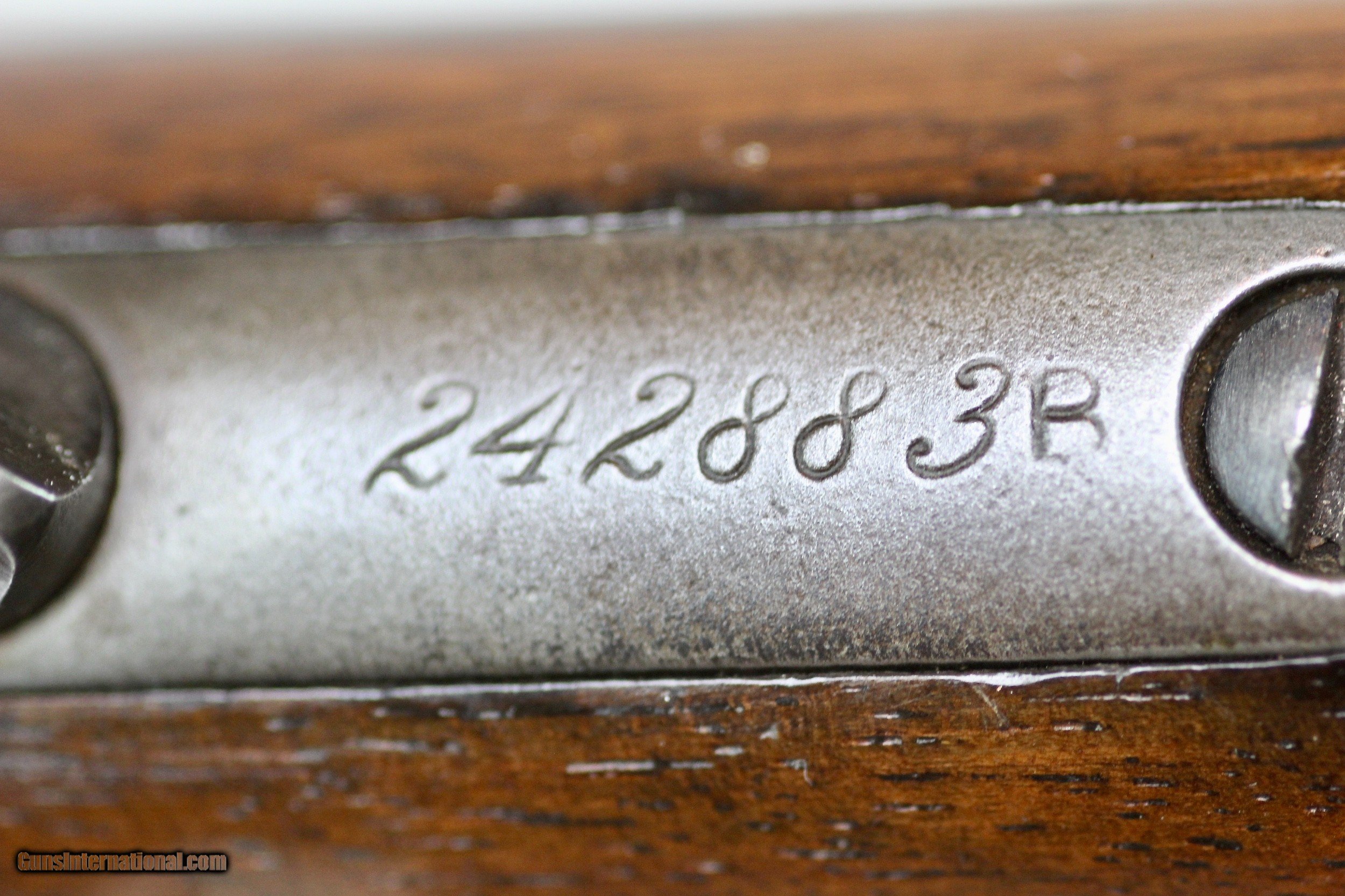 Description: Offered is a very nice little Winchester Model 1873 Rinfire. This rifle is chambered in 22 Short caliber. Unlike most 1873 models this rimfire design uses a magazine carrier to load the shells through the end of the magazine. The carrier is in place and functions fully. the gun is in excellent condition retaining aproximately 50-55% of its original blue finish on the receiver parts and aproximately 60% on the barrel and magazine surfaces. there is some light pitting on the left side of the receiver. The wood stock and forend appear to be original with a full original Winchester finish. There is a fully repaired crack running down the right side of the forend, but is is sound and does not move. The bore retains full rifling with only some very small areas of corrosion. This nice little Winchester should make a great shooter or a very nice addition to any Winchester collection. SOLD Rifle Caliber: .22 Short Manufacturer: Winchester Repeating Arms Co. Model: 1873 Rimfire Serial Number: 242883B Barrel Length: 24 Chambers: 22 short Ejectors: Lever Condition: Very good Metal Condition: Very Good Wood Condition: Very good Bore Condition: Full function rifling with light corrosion Barrel Type: Round Nickel Steel Action: Lever Action Triggers: Single Stock: Walnut Carbine style Butt Pad: Steel curved butt plate LOP: 13 Finish: Standard Winchester Sights: Open - Marbles rear sight Manufacture Date: 1888 Item Location: Coweta, Ok |