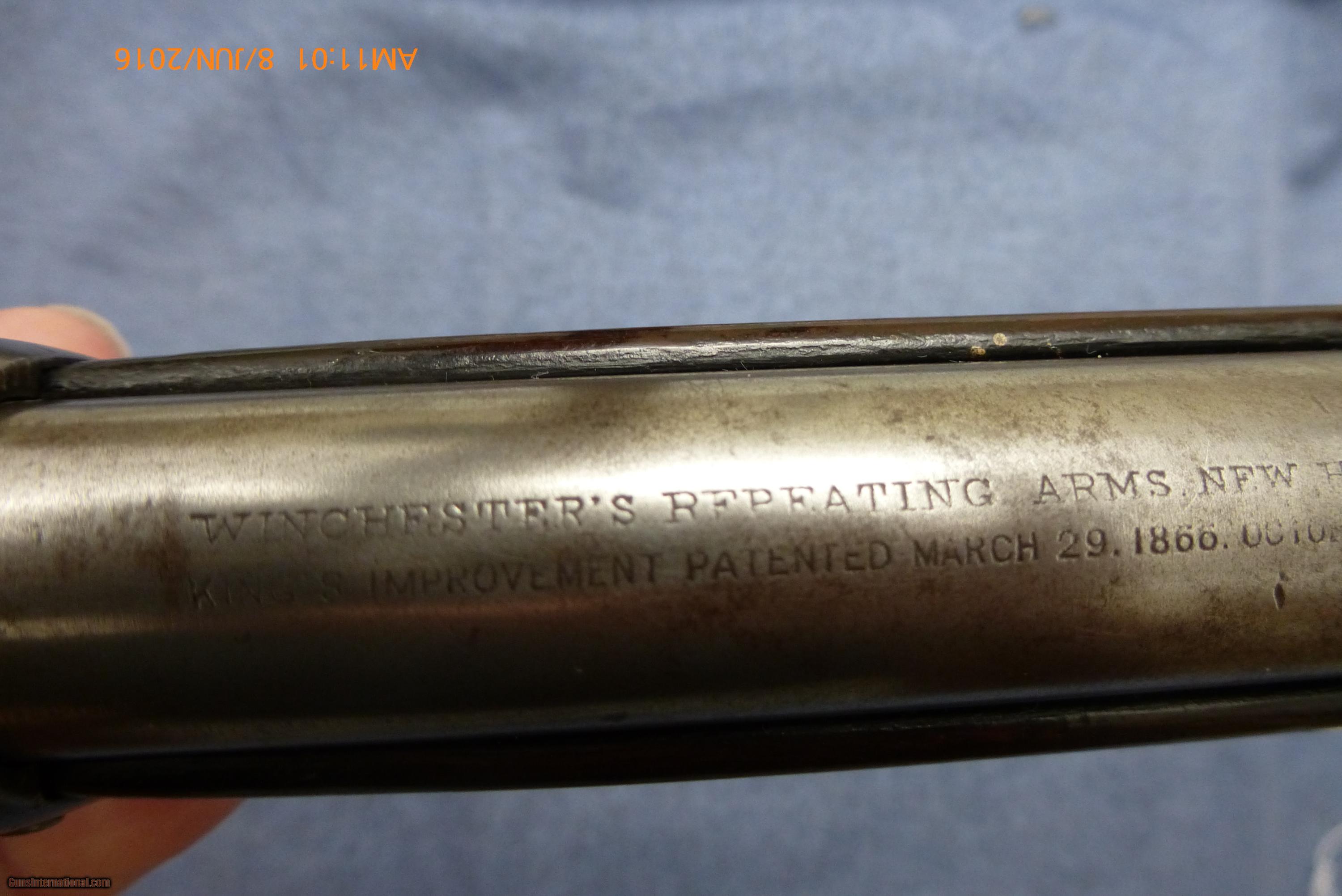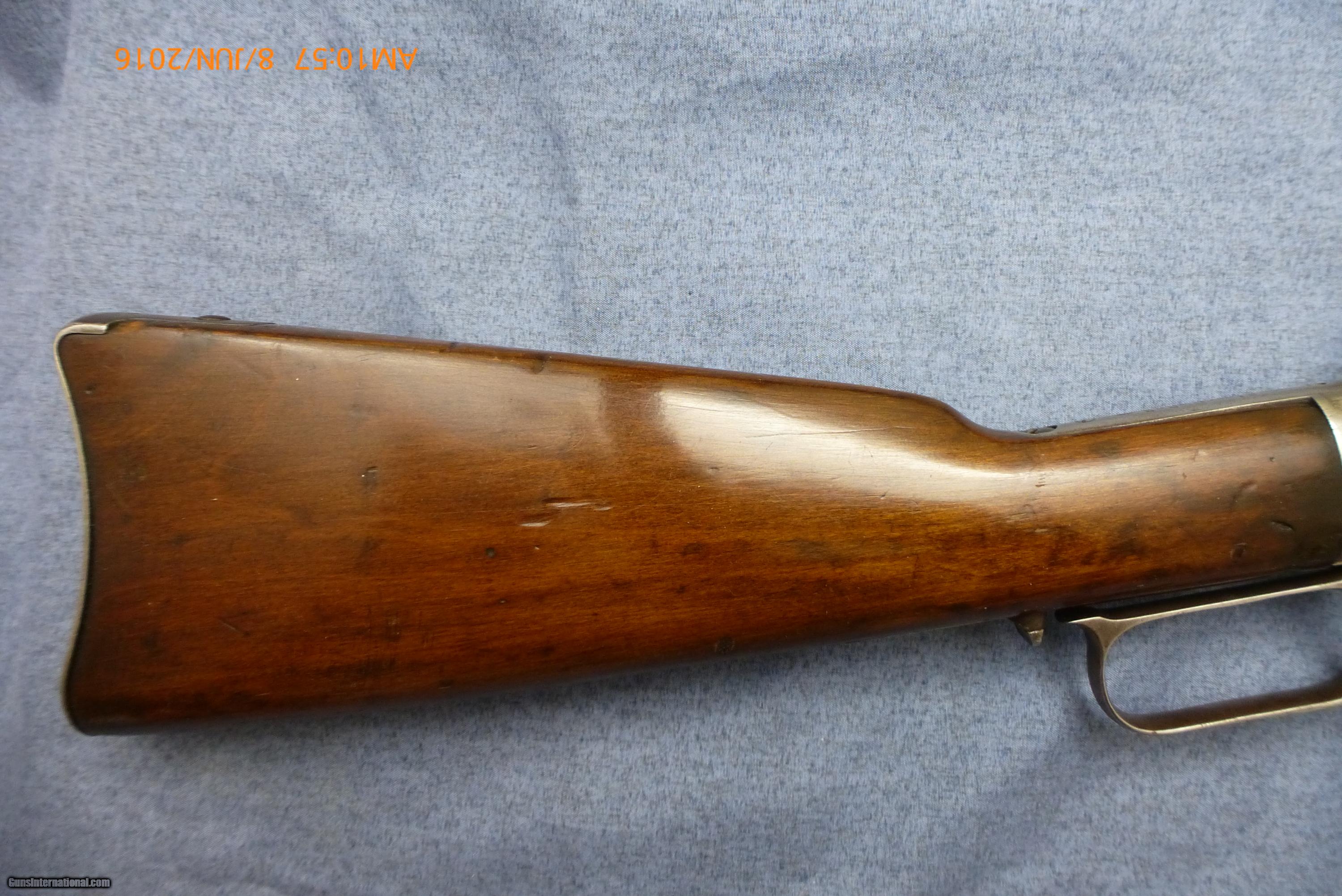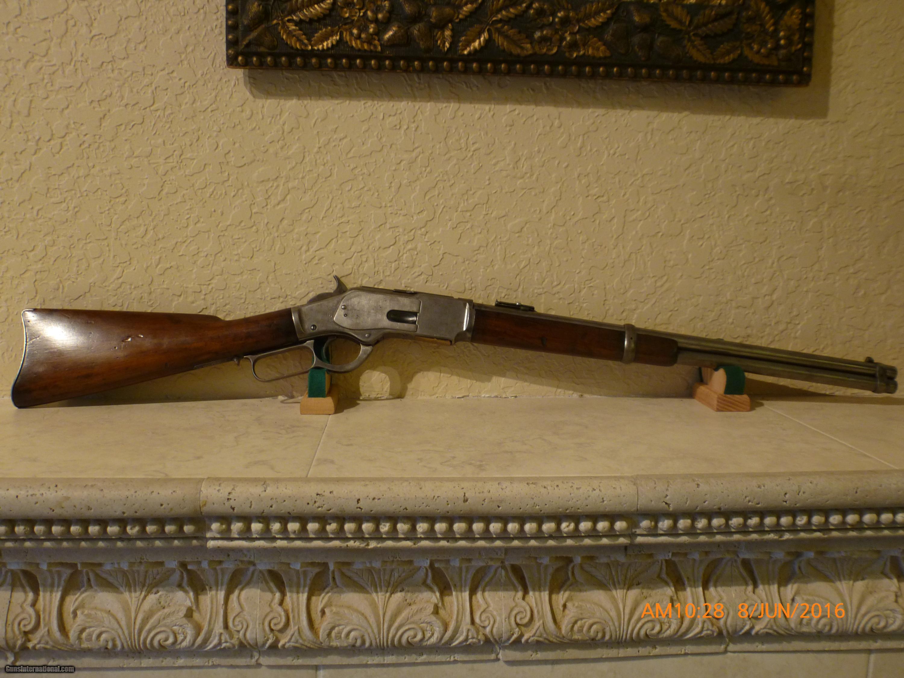 Description: Winchester Model 1873 Saddle Ring Carbine .44 cal. (44-40) 20” bbl 37 1/2” overall, standard full magazine, distinct curved butt plate. Serial #487581B made in 1895. Very clean metal, with nice sharp markings & lines. Standard markings on bbl. Varnished wood finish, looks great, usual small dings and dents; and a cleaning rod compartment. Bore has maybe 50% of the rifling, and some corrosion. Overall clean and very good. (16-48) $2250.00 I take Visa/MasterCard, add 3%. Allow two weeks for all checks, whether bank, personal or certified to clear. It is also possible to wire funds to my account for instant credit for a $20.00 wire charge. 3 day- no questions asked return period for refund of price paid for gun. (Not including shipping or credit card charges.) All sales subject to prior sale at other sites or from shop. Call or email with any questions or for more pictures. Guns are antique and should not be fired without examination by gunsmith. $50 shipping for long guns, $30 for hand guns to lower 48 states, about $50-$75 to most European countries and $70-$80 to Australia for antique handguns, carbines $75-$125. We can generally get insurance if you want through shipper but coverage is very limited. Notify me if you want it. You can send 20% down- balance in 90 days for installment payment plan. No refunds on installment plans. I have shipped to Norway (long gun w/fragile stock) see feedback, England (Winchester1876, Rem. Dbl. Derr.), Northern Ireland, Austria, France, Netherlands ,(Holland), Australia, Denmark, and Sweden. Email if you are not U.S. for estimated shipping costs, payment methods, etc. I am always buying and trading for antique and collectible guns, Indian items, rare ammo, etc. Email what you have got for sale or trade. SOLD Antique: Yes |