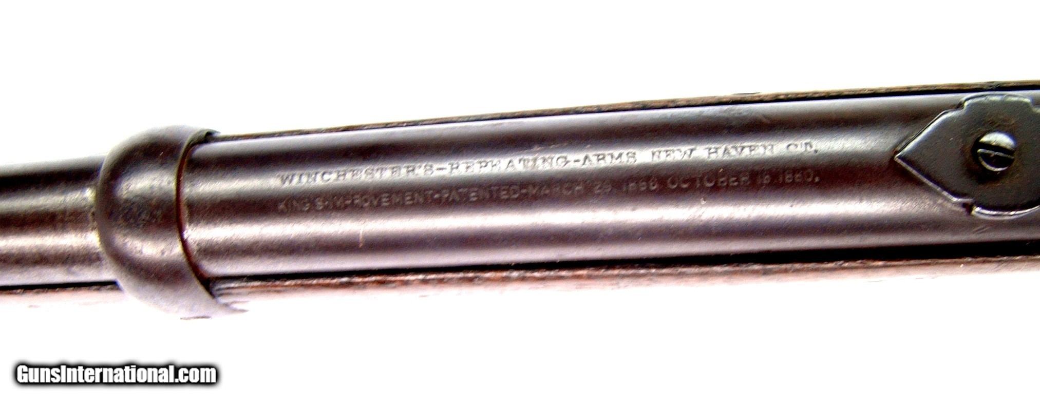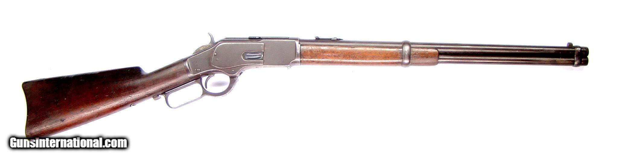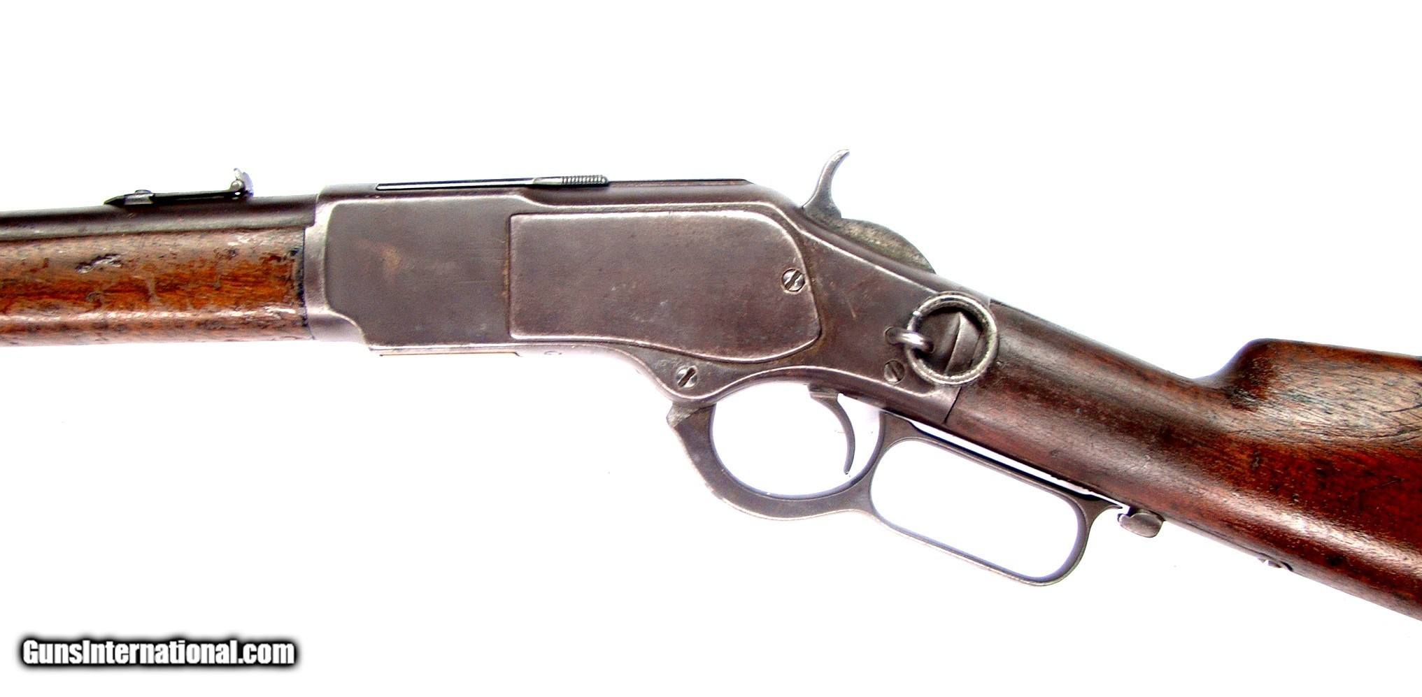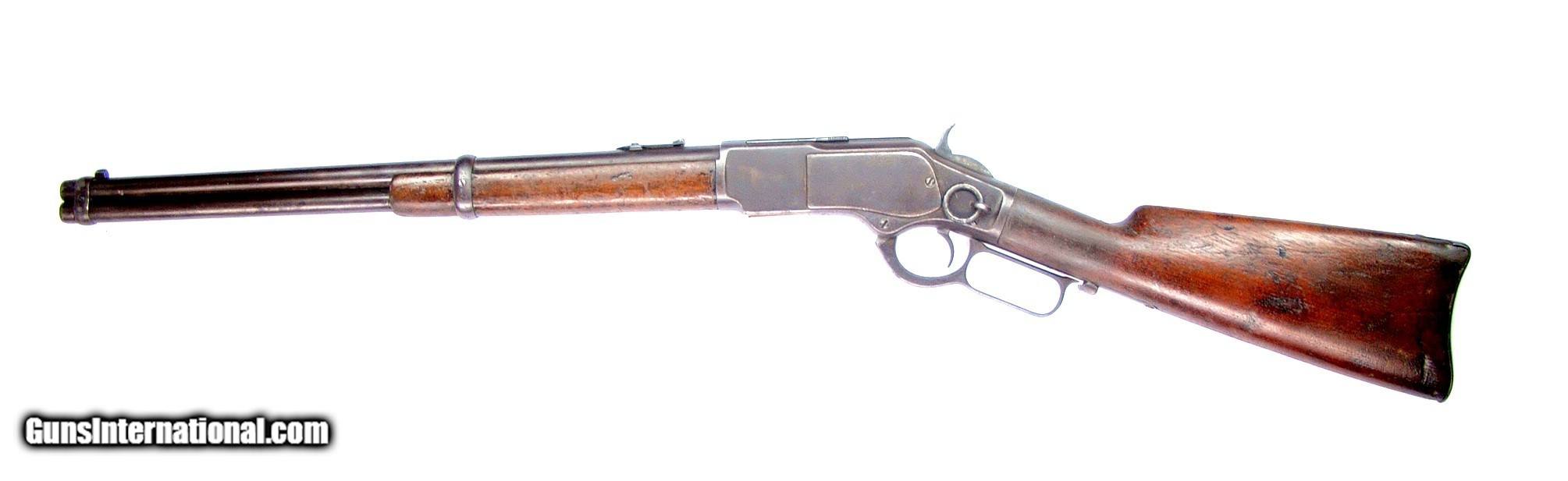 Description: Winchester Model 1873 Saddle Ring Carbine 44-40 cal Bore VG, Mech VG, Wood Original VG, Has an original 20” Rd barrel with original sights, rear sight with elevator missing. Has Excellent Winchester address and patent dates and 44 wcf cal markings. The reciever has a repro dust cover and the top tang has the Winchester model 1873 Marking on the top tang and the lower tang has the serial number #312275B Mfg’d 1889. Metal overall has a dark brown patina finish with traces of some fine pitting. Has original buttplate with compartment. Removed safety catch in lower tang. SOLD Antique: Yes Rifle Caliber: .44-40 Winchester |
