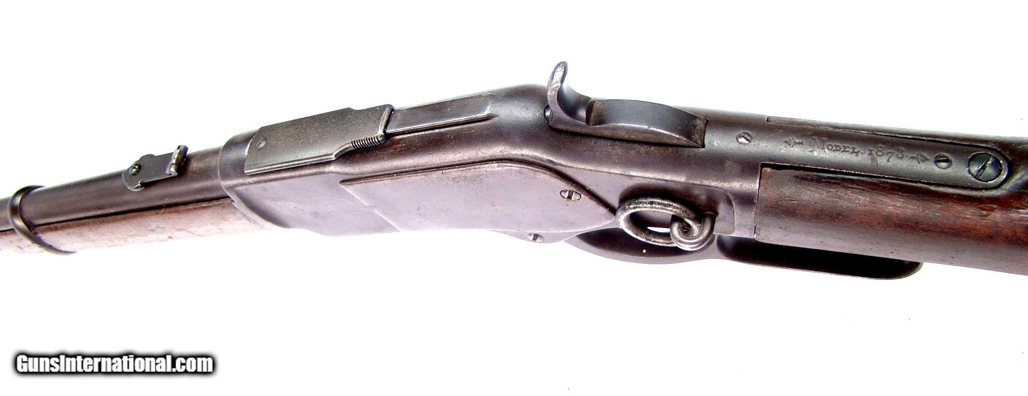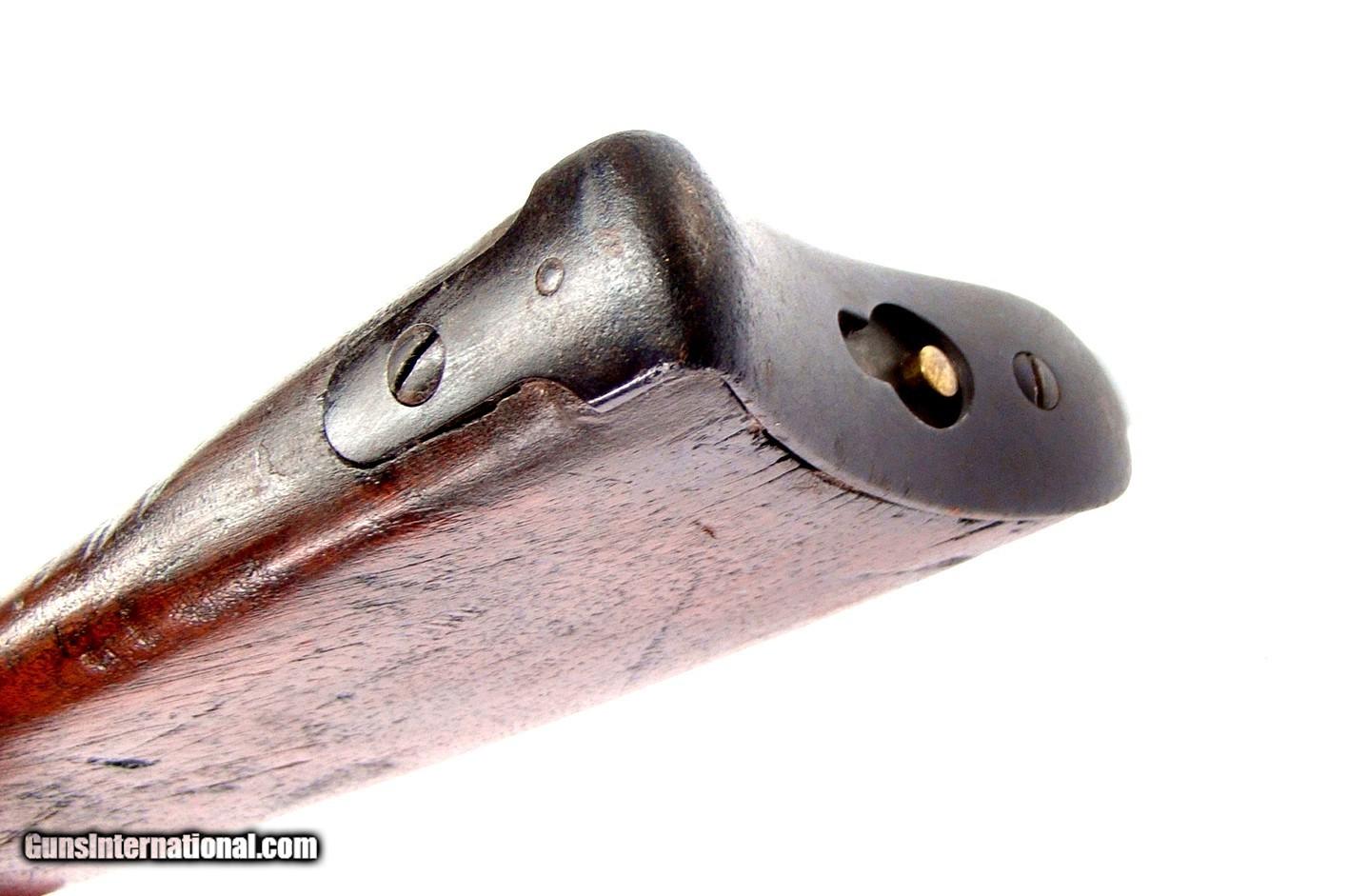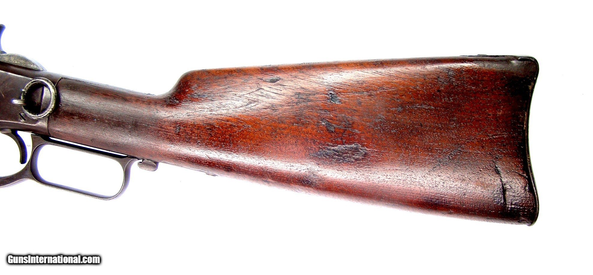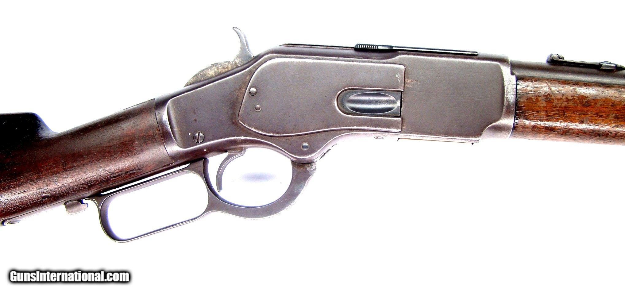 Description: Winchester Model 1873 Saddle Ring Carbine 44-40 cal Bore VG, Mech VG, Wood Original VG, Has an original 20” Rd barrel with original sights, rear sight with elevator missing. Has Excellent Winchester address and patent dates and 44 wcf cal markings. The reciever has a repro dust cover and the top tang has the Winchester model 1873 Marking on the top tang and the lower tang has the serial number #312275B Mfg’d 1889. Metal overall has a dark brown patina finish with traces of some fine pitting. Has original buttplate with compartment. Removed safety catch in lower tang. SOLD Antique: Yes Rifle Caliber: .44-40 Winchester |