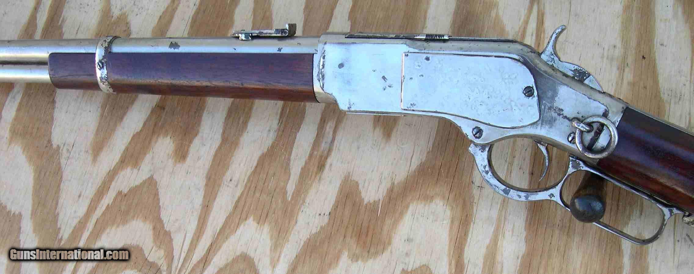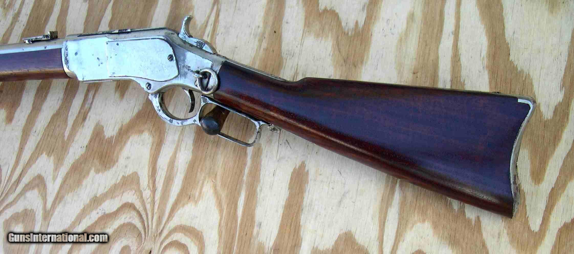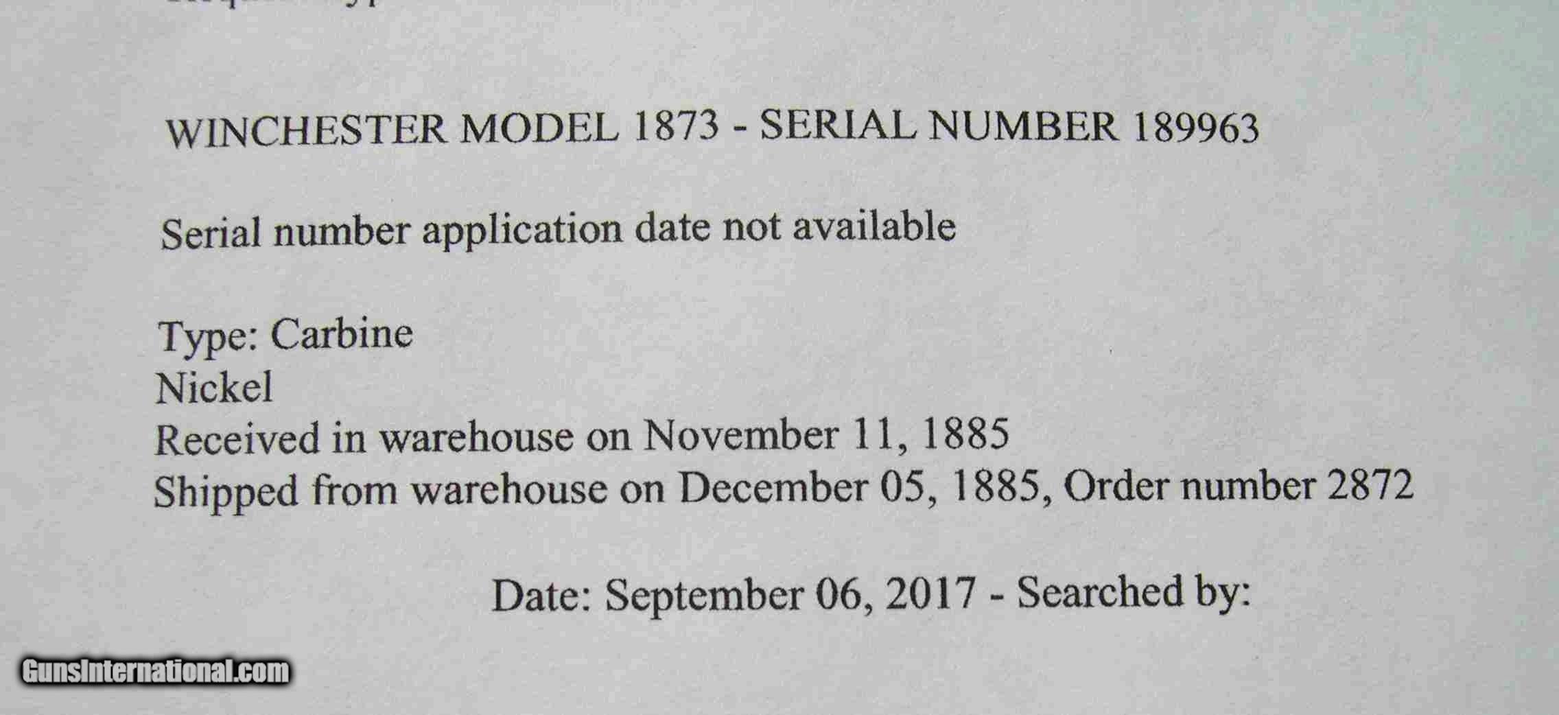 Description: **** Price Reduced **** For Sale is a Winchester 3rd Model 1873 Saddle Ring Carbine chambered in .44 W.C.F. This carbine features a nickel finish, was received in the warehouse on November 11, 1885 and was shipped on December 05, 1885. The nickel finish is mostly remaining and the wood is smooth, has a nice straight grain with no breaks, checks or deep scratches present. The action is good as well. A letter will accompany this rifle and more photos are available upon request. SOLD Antique: Yes |