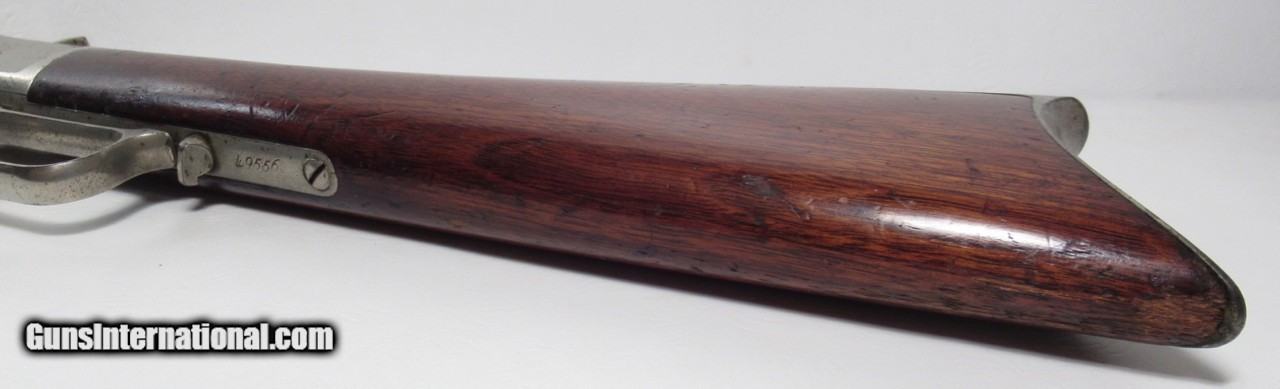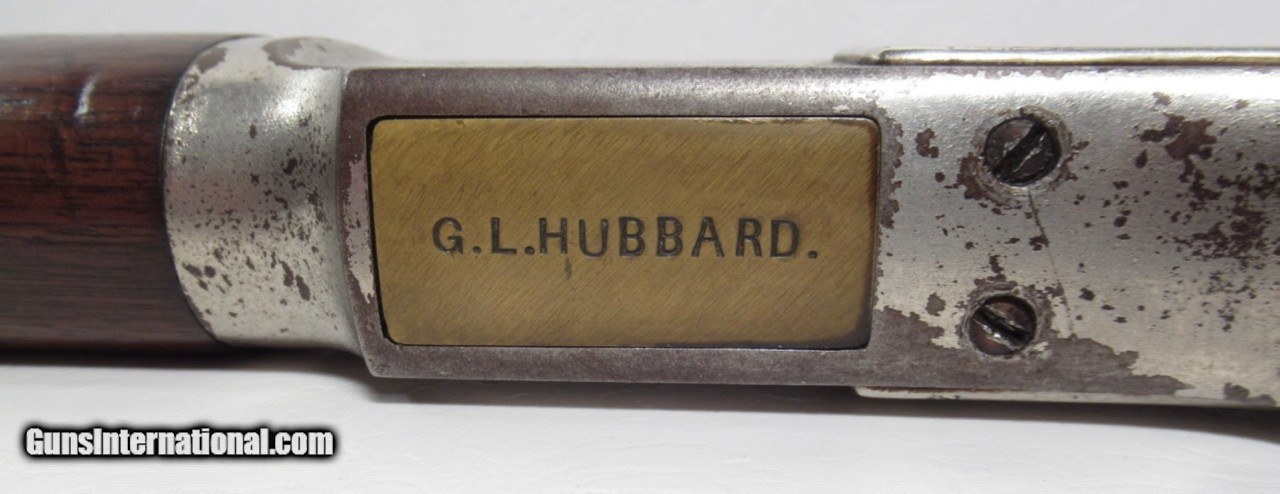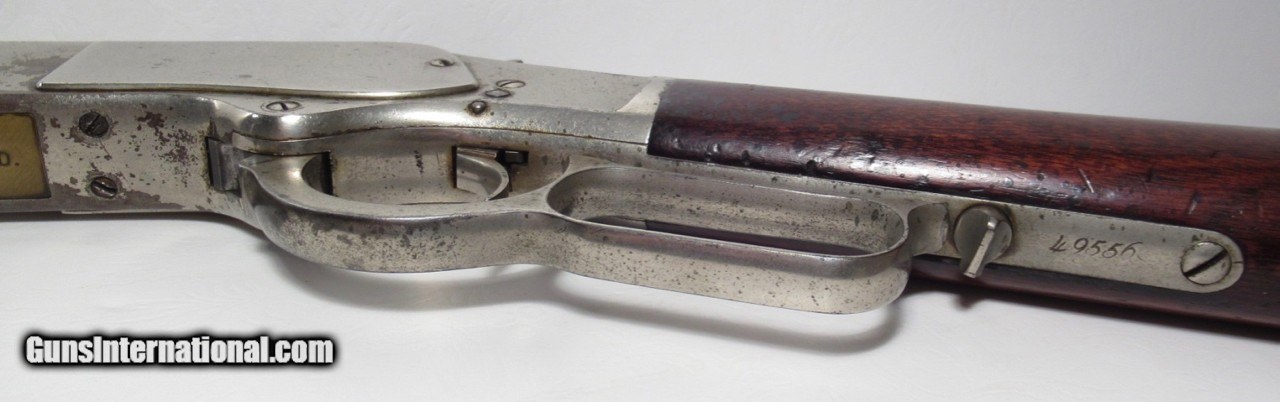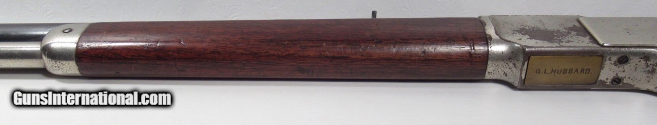 Description: Winchester Model 1873; Serial No. 49556; Made in 1880; Caliber 44-40; ½ Nickel Plated; does not letter as such but I believe it is the Original Finish; Good Action & Bore; “G.L. Hubbard” Stamped on lifter; G.L. Hubbard was an early Sheriff in Coos County, Littleton, New Hampshire; RARE HISTORIC 140 Year-Old Winchester Rifle; PERSONAL PROPERTY of Harold Wieser; Price: $3,975 + $60 S&H; Price includes insured shipping; return policy: three days inspection from the date the item is received; full refund of shipping both ways ONLY IF THE ITEM IS MISREPRESENTED. SOLD Antique: Yes Manufacturer: Winchester Model: 1873 Serial Number: 49556 |