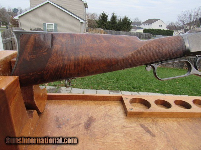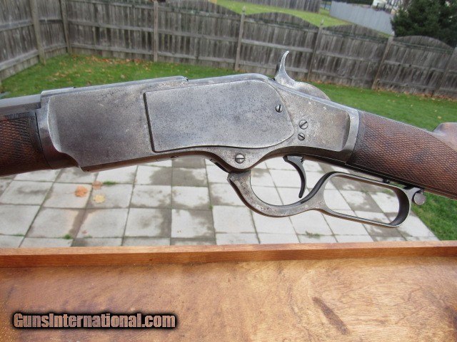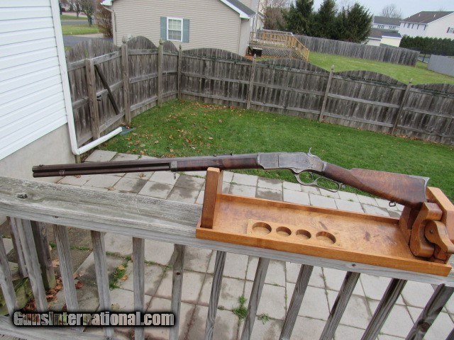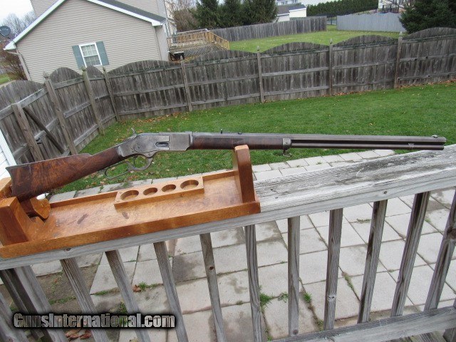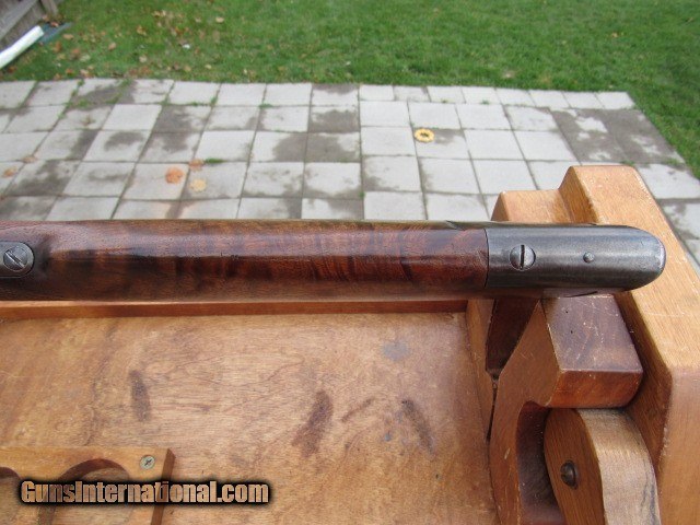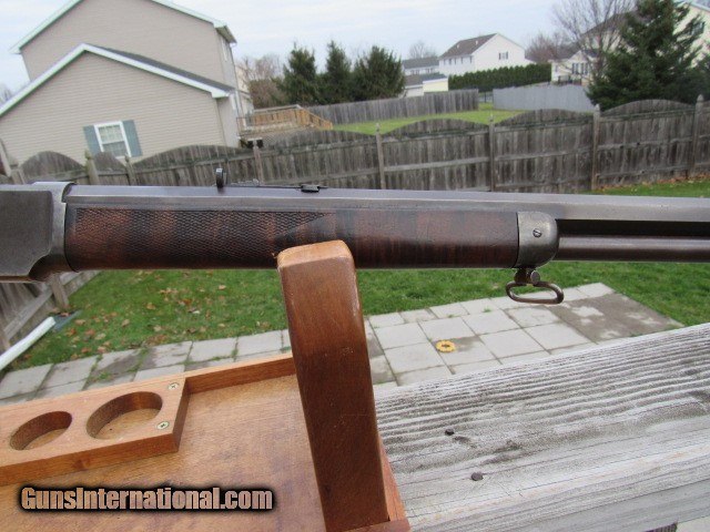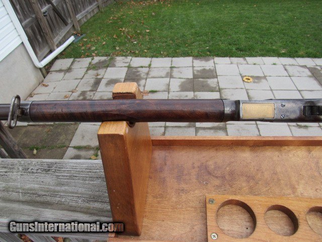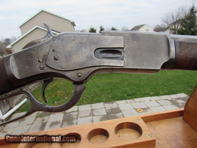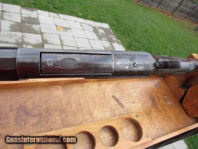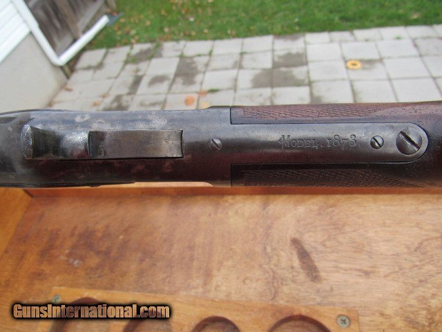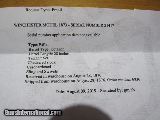 Description: DESCRIPTION: 1st Model Deluxe Winchester Model 1873 rifle, caliber 44 WCF of course, with all of the following features confirmed by Cody Museum email sheet: Rifle, 28 inch octagon barrel (4" longer than standard), full magazine, set trigger, checkered stock, casehardened receiver, sling and swivels, received in warehouse on August 28, 1876 and shipped the same day on order number 6836. Copy of Cody info sheet is pictured and will be included with the rifle. All of the correct 1st model features are present: thumbprint dust cover that slides in integral frame rails, round lever latch, screw-in magazine tube end plug, thicker butt plate with longer top leg and with sliding trap door, short cloverleaf style rear sight, and as far as caliber goes, unmarked barrel and brass carrier block. Also sports a Rocky Mountain front sight typical to the extra long rifles. Correct 1st style checkering and correct early sling swivels. Extreme care was used in removing the butt stock and butt plate, revealing XXX on the lower tang for the grade of fancy walnut, as well as the number 6 for the assembly number, which matches in the upper inletting of the butt stock and at the toe of the butt plate. This rifle is 100% original and correct!! CONDITION: Case hardened frame has the typical mottled nickel-silver appearance with traces of case color present. Barrel and mag tube have 70% coverage of an even plum patina. Barrel edges are still sharp and magazine tube is still tight with no wobble. Butt stock has a deep gouge about 1" long on the right side and light wear to the checkering, slight wear loss at toe, otherwise in excellent condition with no other real issues and no other dings/dents or scratches. Fore arm shows a few dings and scratches, with some loss due to wear by the receiver from carry, as noted by the total wear to the checkering on the bottom from carry or saddle use. Action is tight and crisp. Half cock safety functions as it should. Set trigger also works as it should, a bonus as many are worn and inoperative. Bore is good, a 7 of 10, with minor scattered light black powder pitting, consistent rifling breech to muzzle, some shine but some grayness, should still shoot great if you want to with light loads after a checkup by a competent gunsmith. Dust cover spring screw has been ground flat so no groove remains, and the dust cover is very tight when attempting to push it forward, yet it moves freely to the rear when the action is cycled. No cleaning rods present in trap of butt stock. Overall Grades NRA Antique Fine and quite a great old 1st model to add to your Winchester collection!! TERMS: No international sales. Antique so it can ship directly to you assuming your local laws allow it. Payment by bank check, money order, personal check, or all major credit cards with 3% convenience fee. 3 day non-firing inspection. Buyer pays return shipping. Layaway available with 25% down and equal payments over 90 days. Offers considered. Thanks for looking. Interested in buying single pieces and collections of old firearms, especially Winchester, Colt, S&W, Marlin, Savage and Remington. 315.251.4799 with questions or concerns. SOLD Antique: Yes Manufacturer: Winchester Model: 1873 Serial Number: 21417 Caliber Info: 44 WCF Condition: Very good Metal Condition: Very Good Wood Condition: Very good Bore Condition: Very good Barrels: 28" Octagon Action: Lever Triggers: Single Set Stock: Fancy Walnut Manufacture Date: 1876 Extras: Case hardened, sling swivels, checkering Item Location: New York |