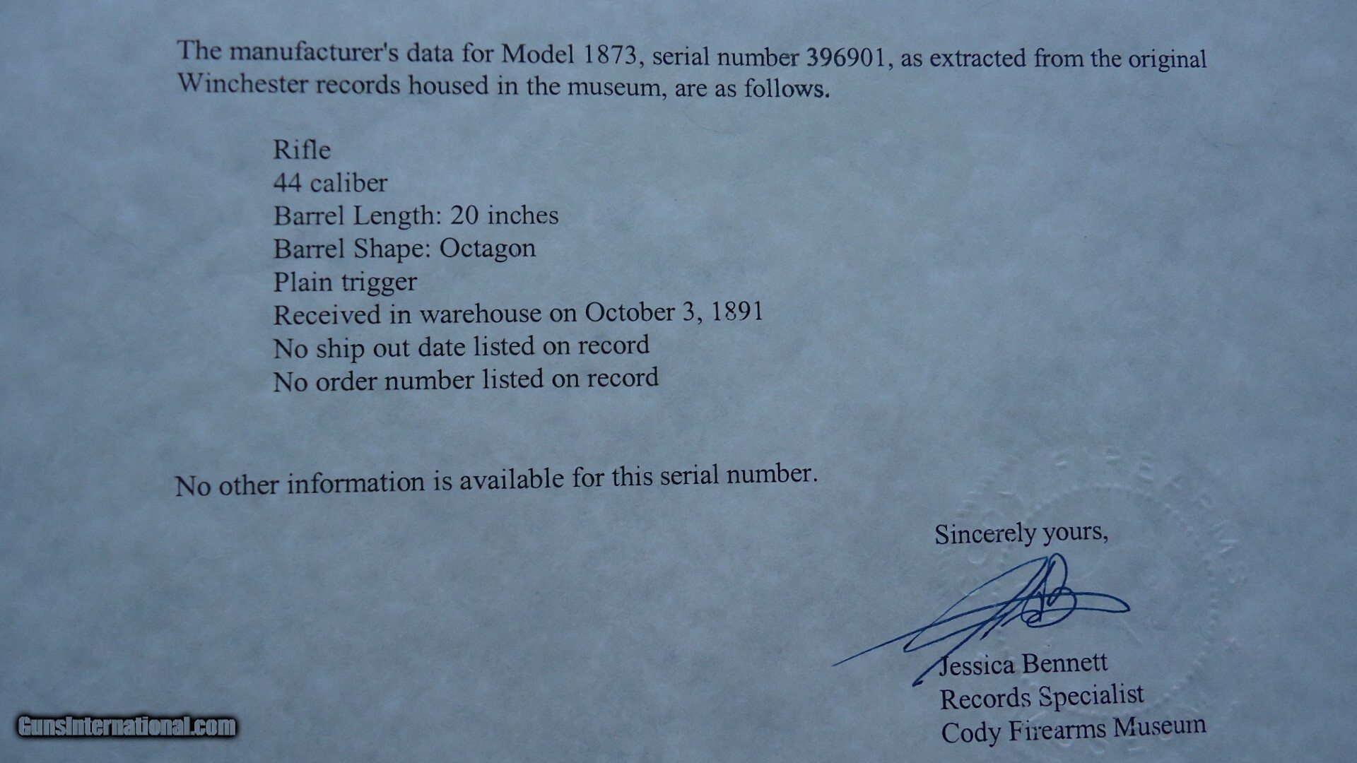 SCARCE WINCHESTER MODEL 1873 SHORT RIFLE IN 44 WCF
