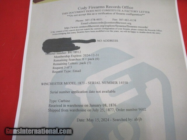Ser no 14550, Mfg 1876, Thumb print dust cover, Take a look at pictures rifle has condition for being 150 years old, Has a shiney bore with rifling, Buyer pays 100.00 shipping Pa residents add 6% sales tax, Price is for check or money order, cc add 3%