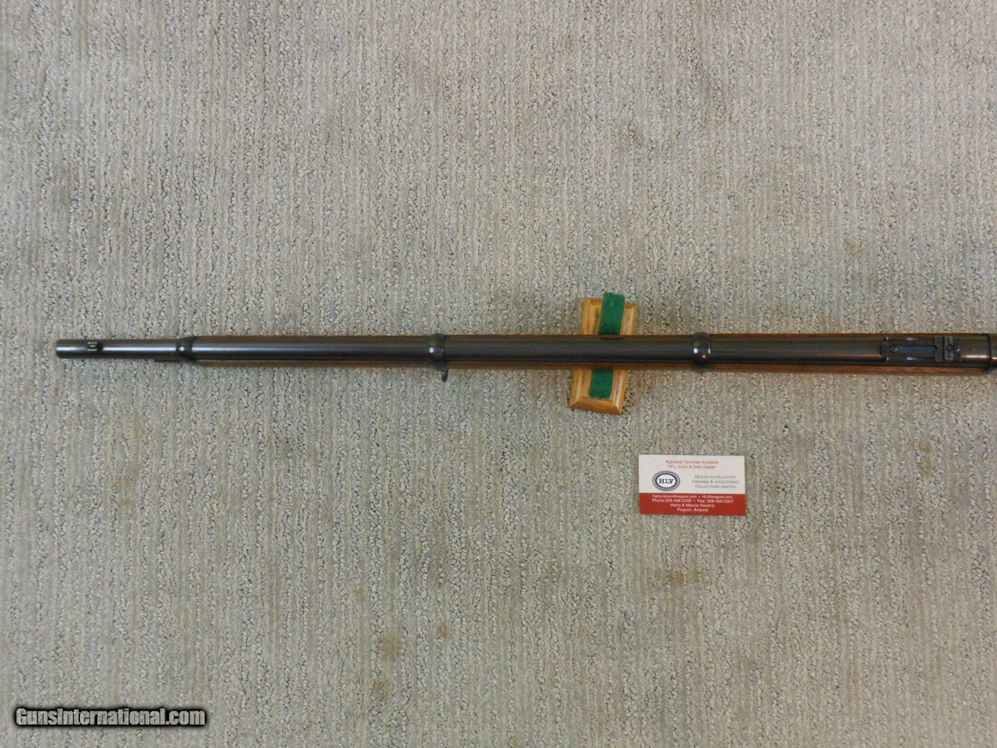 This Winchester was produced in 1903. The musket's serial number is 571032 B. This Musket has the 30 inch barrel chambered for the 44 W.C.F [44-40]. This barrel is in minty condition with a bright bore. The sights are original to this musket. This Musket shows no sign of being fired. The original bluing would rate a 98% or better condition. There is one or so light speckles of blue loss on the right side of the receiver by the hammer area. The color cased lever, trigger and hammer show strong vivid color finish. The stock and hand guard retain all of the original finish. The wood is in fine condition with no issues. There is no cleaning rod in the stock compartment. The barrel bands are in fine new condition. This is a really stunning musket! The color cased finish really stands out! This gun would be a real show case for any fine collection!