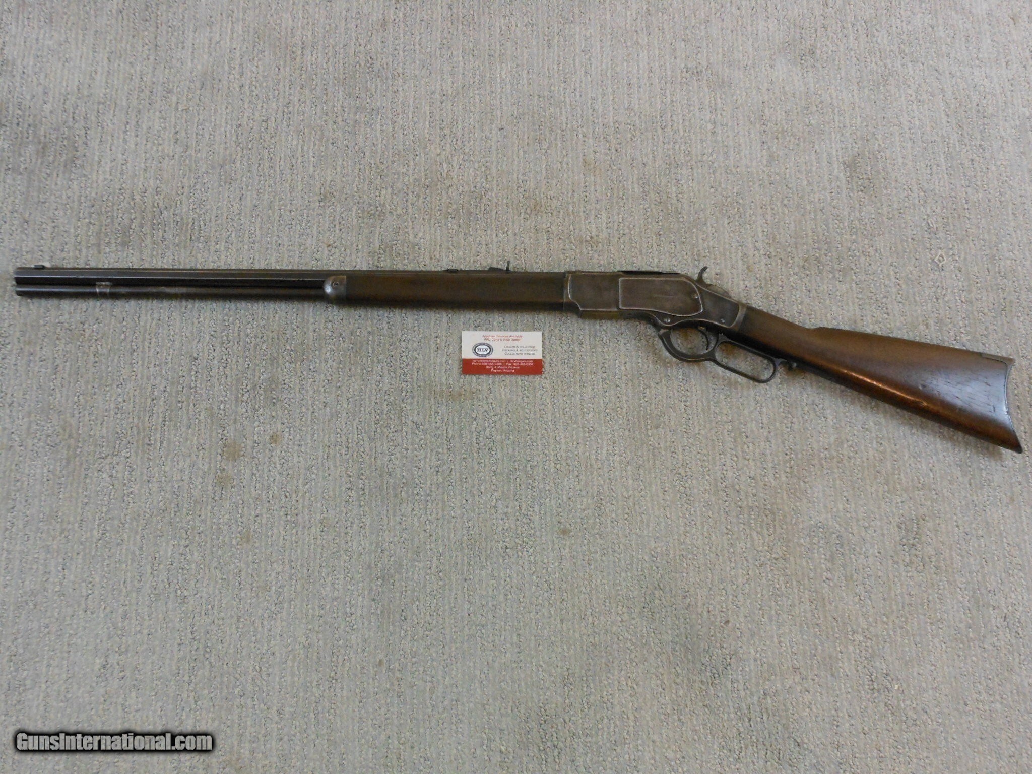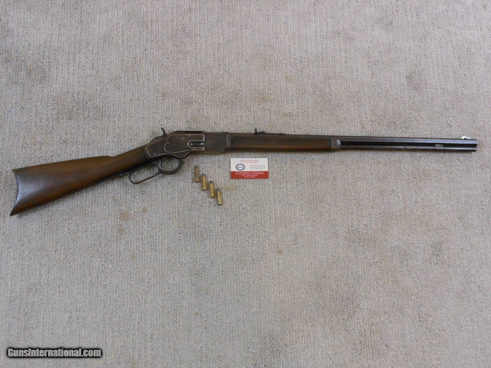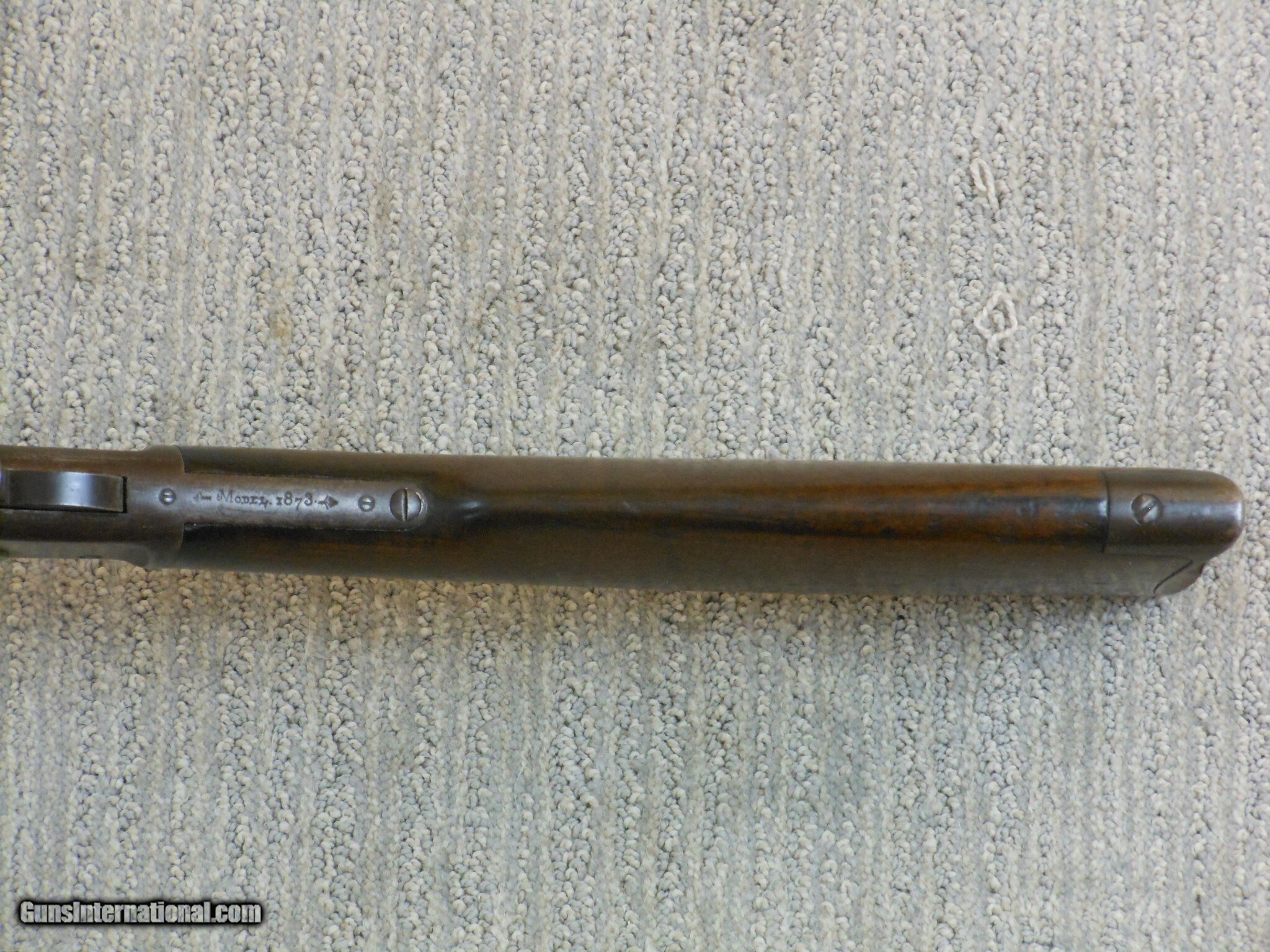This Winchester was produced in 1898. The rifle's serial number is 525804. This rifle is fitted with an octagonal 24 inch barrel chambered to shoot the 32 W.C.F [32-20] cartridge. The caliber markings is on the top barrel flat. The bore today, is in fair to poor condition. This Winchester is in mostly patina condition. This rifle is in well used condition. The stock and forend have no cracks or major damage to the wood. The wood surface is in fine condition with a nice aged look. The action works fine with no broken parts. This Winchester has seen much use and wear. These Winchester Model 1873's were tough rifles to wear out! This rifle can still shoot today! Here is a well used Winchester that will still appeal to some collectors today!