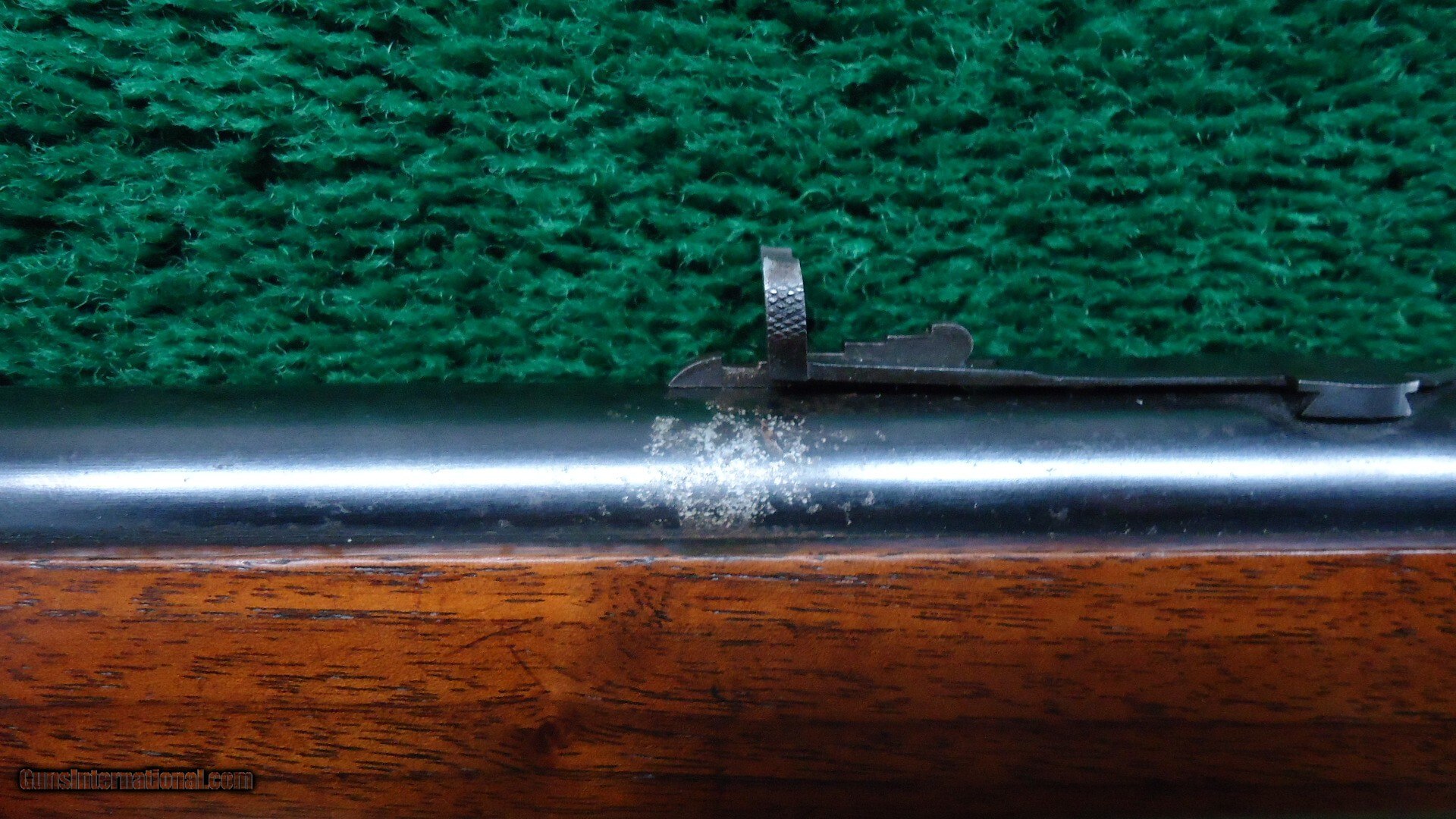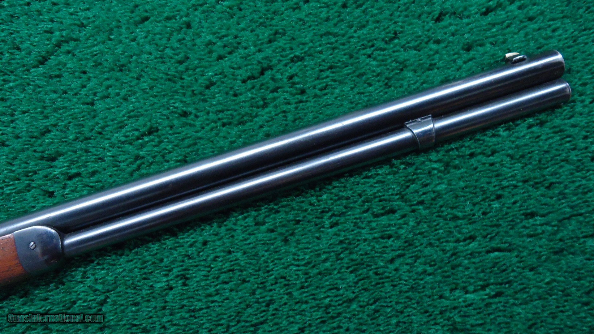 24 inch round barrel chambered in 38 WCF caliber with a bright shiny excellent bore. Sights include a German silver blade front and sporting rear. Barrel and full length magazine tube retain most original blue with some light scratches and a spot of pitting by the rear sight. Receiver has about 98% bright blue with vivid case colors on the hammer and lever. Strong blue on the loading gate. Walnut stock set is in VG condition with most original varnish. Towards the end of the buttstock there is some minor cracking and oil soaking at the buttplate. Complete with Factory Letter stating mentioned features and 1892 manufacture date. The early 3rd Model's in 38-40 had a standard shotgun butt so that is not listed.