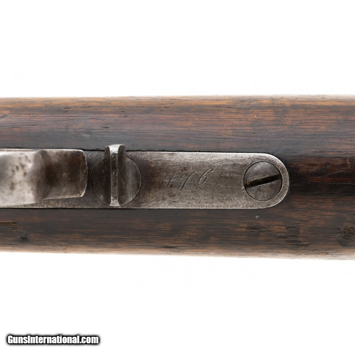 Description: "Serial number 476. Made in 1876. 45-75 caliber with a 28" barrel. Nice sharp gun with blue in protected areas. Early gun with the open top frame. Wood is very good. Nice example of an early gun! SOLD Antique: Yes |