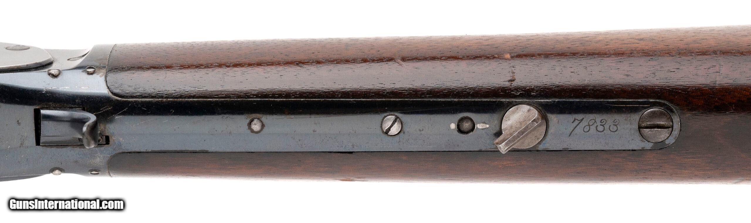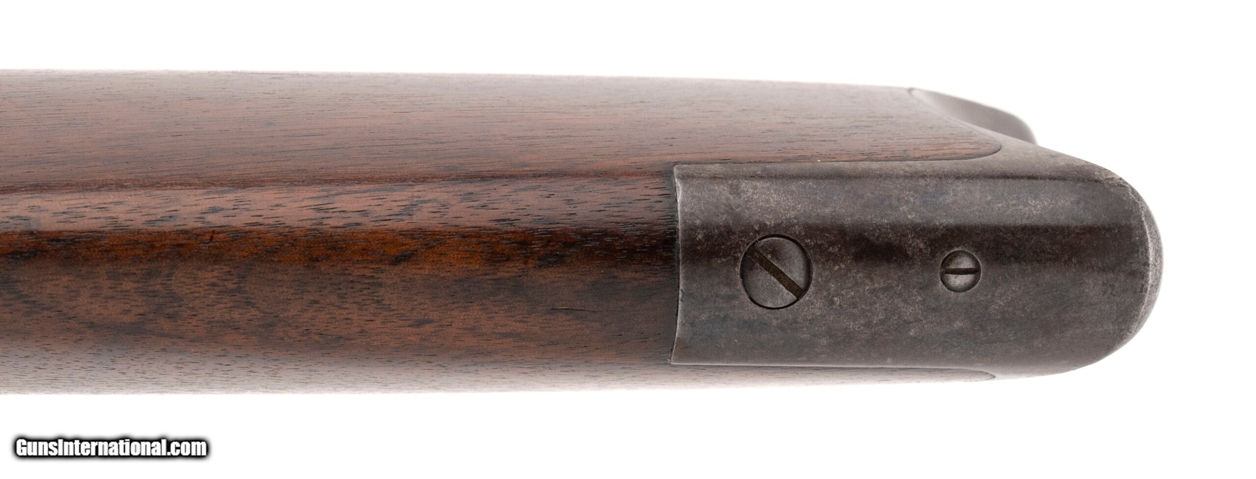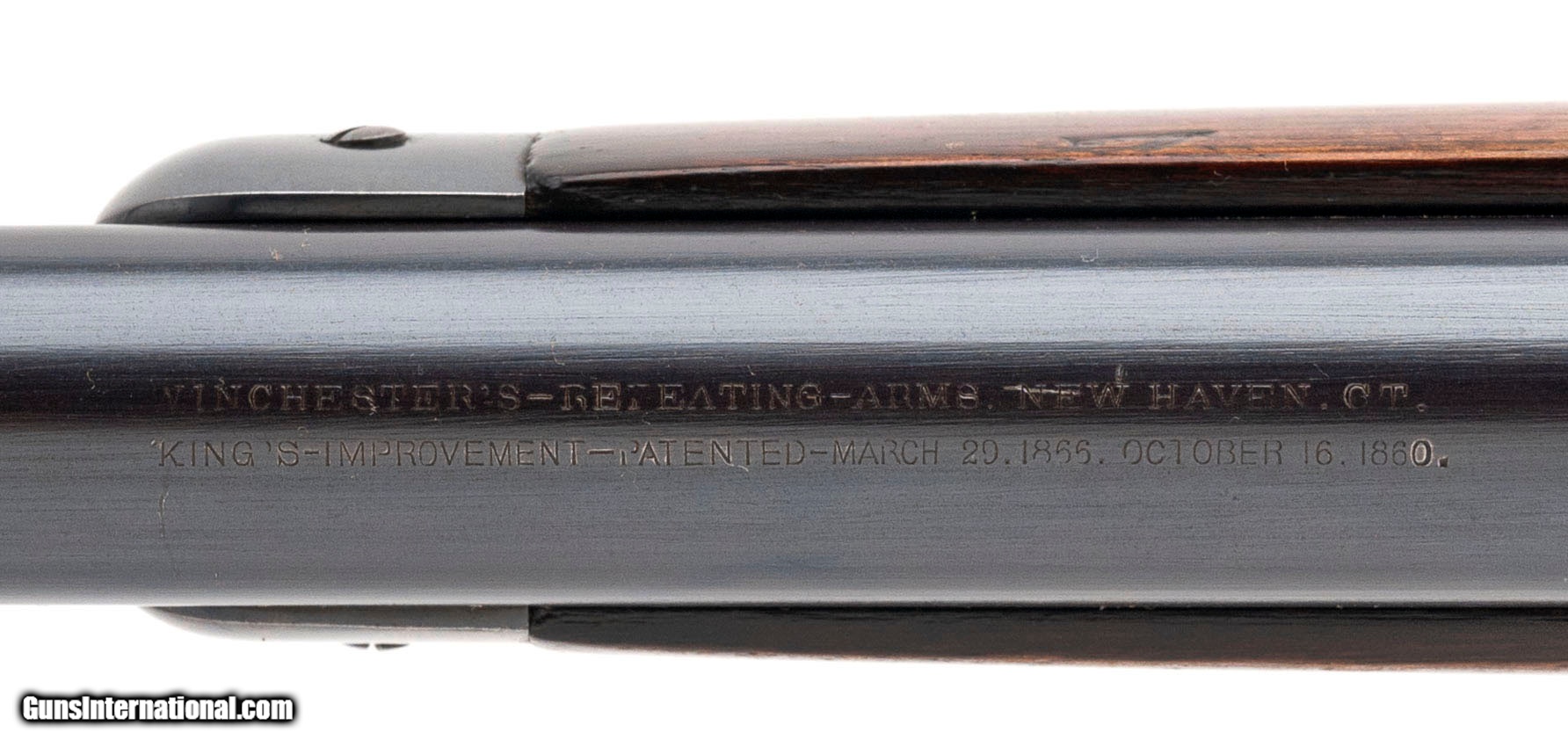 Description: "Serial number 7833. Made in 1878. 45-75 caliber with a 28" barrel. This gun is in excellent condition with 92% - 93% of the original finish. The wood is very good and has been lightly cleaned. The top of the butt plate is slightly proud, but does not show any signs of sanding. This is a 2nd Model Rifle with a screwed on the top rail. It is an early gun without a caliber marking because Winchester was only making this rifle in 45-75. This gun also has a set trigger. There is a record sheet that accompanies this gun that confirm all features. Under remarks it says “LID" which means it has a dust cover. SOLD Antique: Yes |