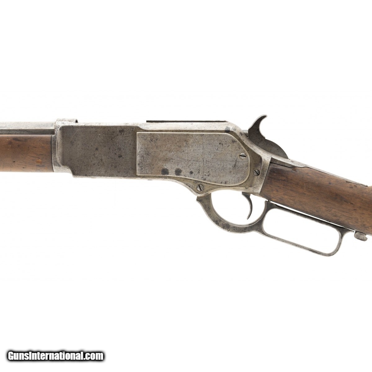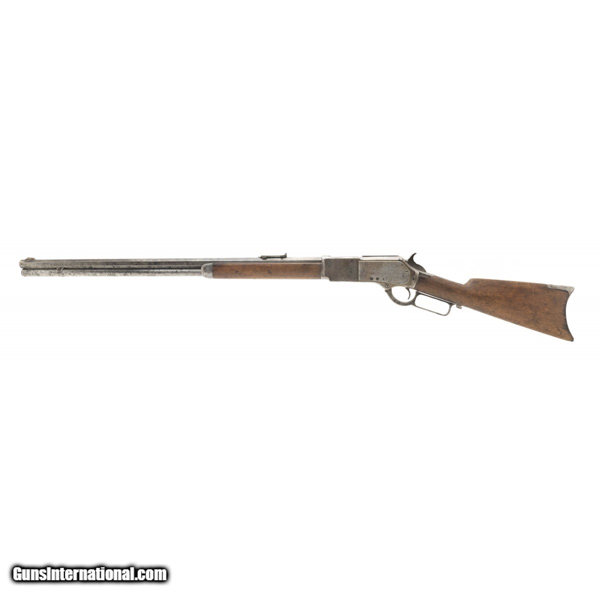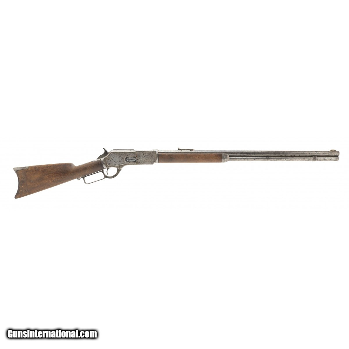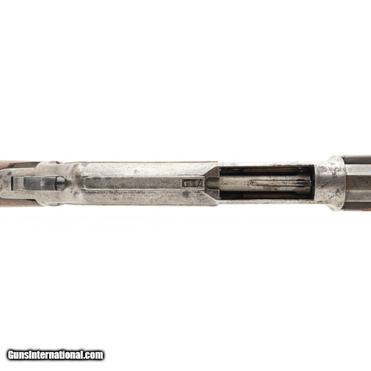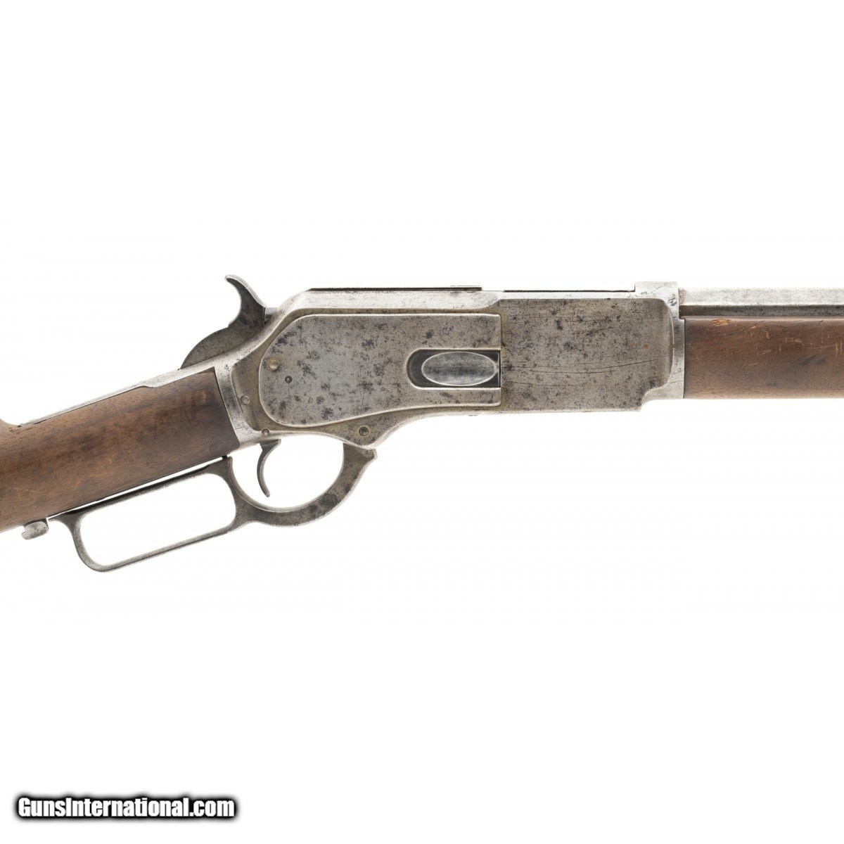 Description: "Serial Number 47164. Made in 1884. 45-60 caliber with a 28" barrel. This gun has a mottled gray patina with a spots of pitting. Wood has been refinished long ago. Action works. Dust cover is missing. Bore is dark with pitting and some visible rifling. SOLD Antique: Yes |
