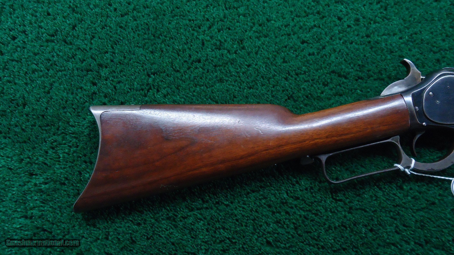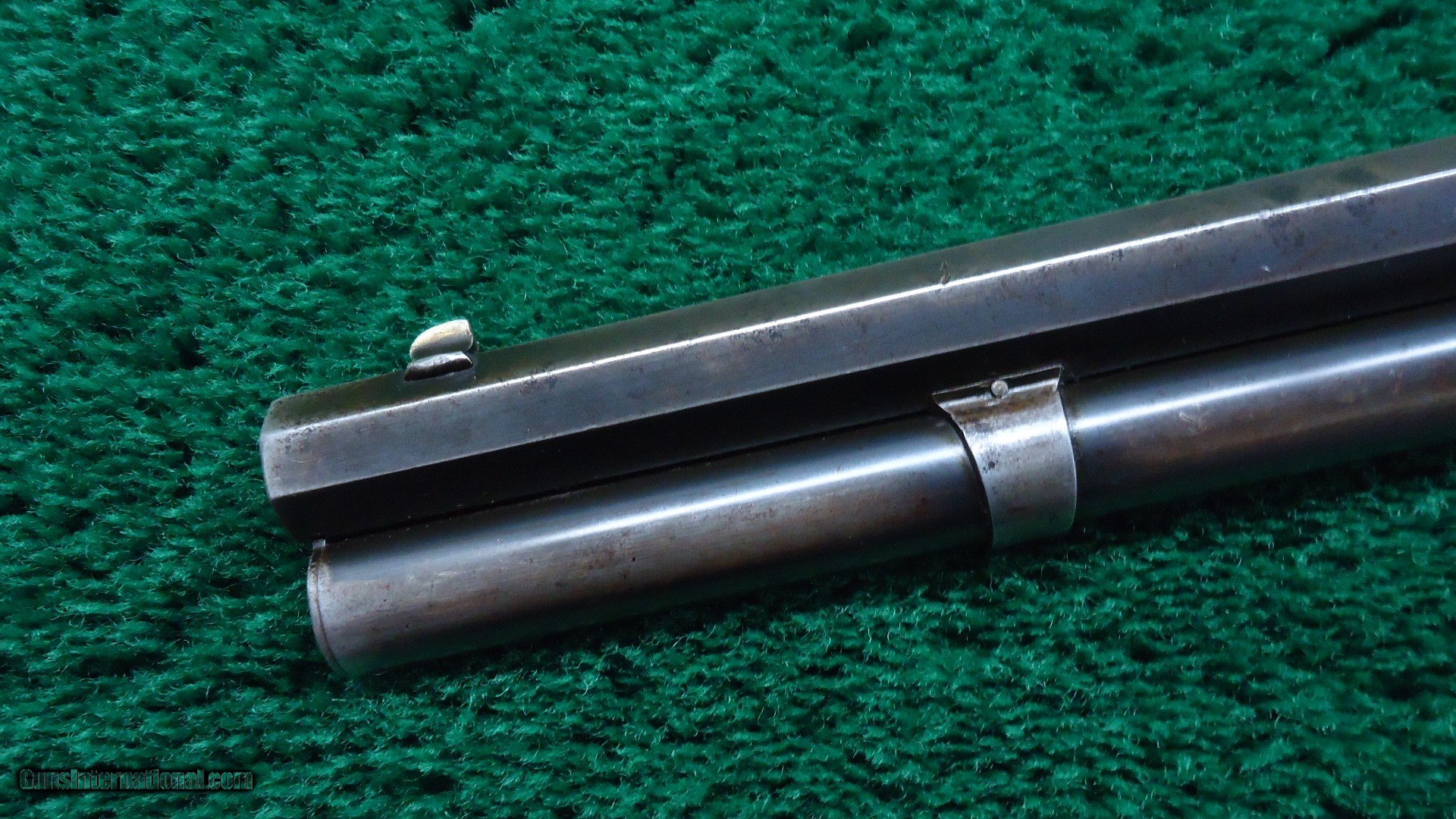 Description: 28 inch octagon barrel with full length magazine tube. Chambered in the original 45-75 WCF caliber with a fine bore. "1876" marked folding ladder rear sight and a German silver blade front sight. Wood is good with just minor usage evident. No splits or cracks. Wood is generally better than you usually would encounter and may have a coat of linseed oil added. Rifle style buttplate. Crisp tight action. Original dust cover. Overall metal is very good with about 75% original blue remaining. Generous amount of case color on the hammer and lever. This is a fine 1876 made in 1887. Leroy Merz Antique Firearms specializes in antique and vintage Winchesters and other fine American firearms. Since 1965 Mr. Merz has taken part in the world of firearms and has been a contributor to many well known reference books. We have hundreds of additional guns in every price range at our home online. Search for Merz Antiques in google. SOLD Antique: Yes Rifle Caliber: .45-75 Winchester |