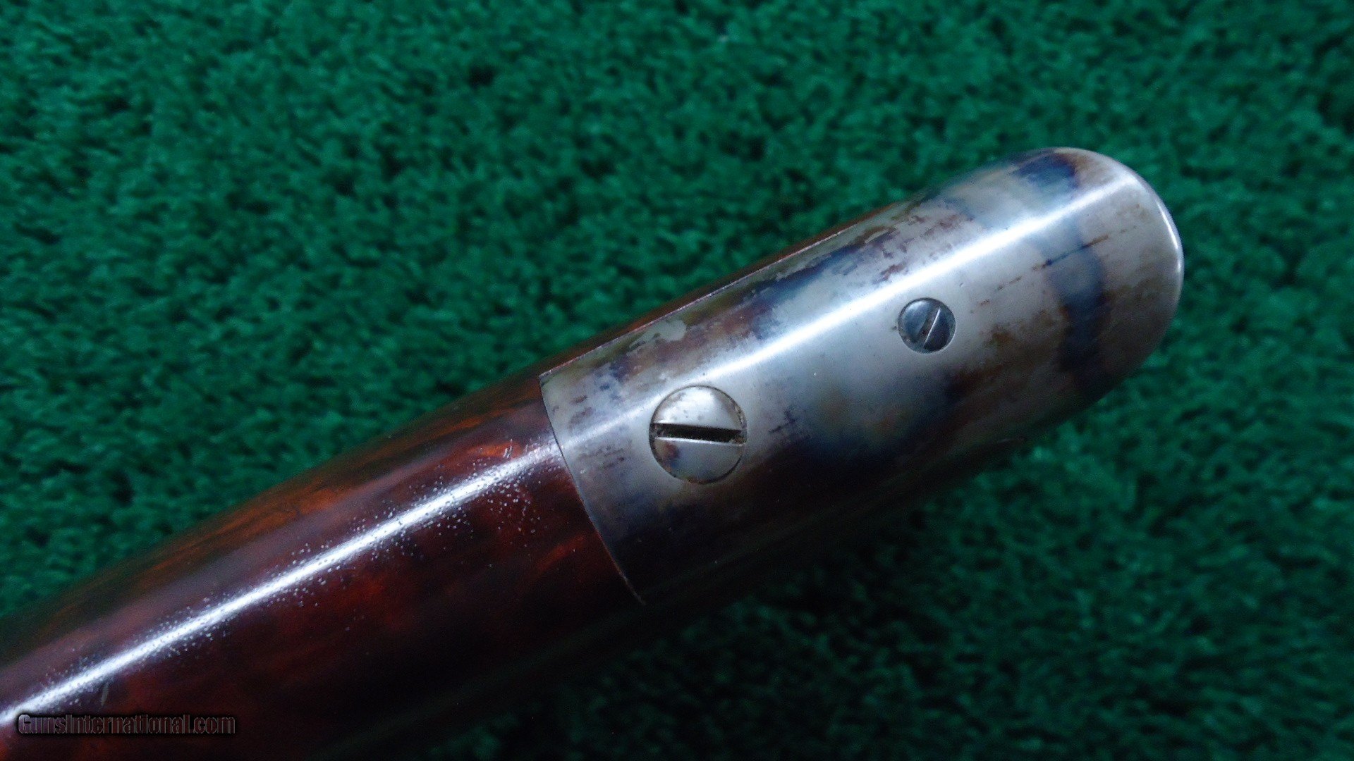 Description: Special order 30 inch extra heavy full octagon barrel chambered in 45-60 caliber with a full length mag tube. Original sights include folding ladder rear and a blade front sight. Fine bore. Original deluxe checkered 3x grade wood is in excellent condition with a rifle style butt plate. Overall gun is in excellent condition having been restored sometime ago. Retains about 95% plus bright blue on the barrel and mag as well as 95% nice visible re-cased case colors showing some very minor wear. Bright case colors on the butt plate. Correct dust cover with a special order set trigger. Gun comes complete with a factory letter stating all of the special order options that I just previously mentioned. This gun is very scarce and you will hardly come across another one. Leroy Merz Antique Firearms specializes in antique and vintage Winchesters and other fine American firearms. Since 1965 Mr. Merz has taken part in the world of firearms and has been a contributor to many well known reference books. We have hundreds of additional guns in every price range at our home online. Search for Merz Antiques in google. SOLD Antique: Yes Rifle Caliber: .45-60 Winchester |