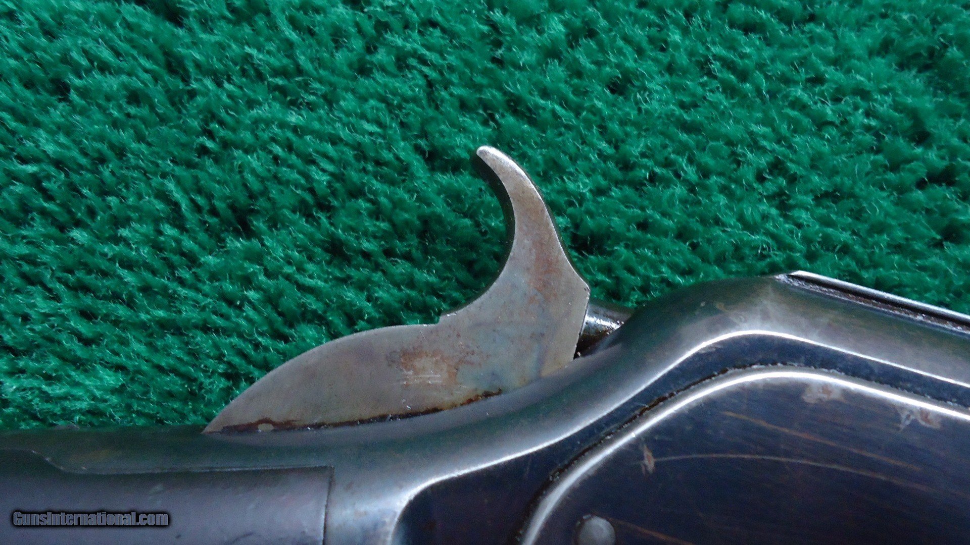 Description: There were only 6,612 of the Model 1876 rifles chambered in 40-60 caliber with a 28 inch octagon barrel. Full length mag tube. Gold gilded Beachs front sight and "1876" marked folding ladder rear sight missing the slider. Wood shows a few handling mars and dings but no splits or cracks. Most original varnish remains. Rifle style buttplate. Mechanics are excellent with crisp and tight action and the correct dust cover. Bright shiny bore. Receiver retains about 75% original blue as does the barrel. Mag tube has about half the blue remaining. Good case color on the hammer and lever. Leroy Merz Antique Firearms specializes in antique and vintage Winchesters and other fine American firearms. Since 1965 Mr. Merz has taken part in the world of firearms and has been a contributor to many well known reference books. We have hundreds of additional guns in every price range at our home online. Search for Merz Antiques in google. SOLD Antique: Yes |
