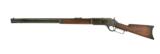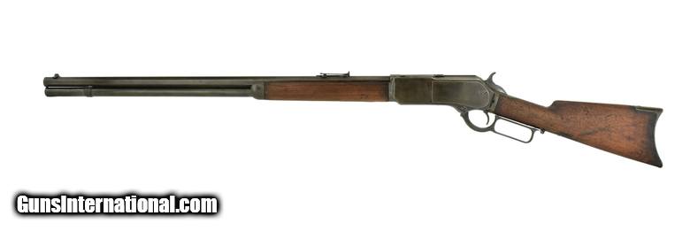 Winchester 1876 in .45-60 caliber rifle. Made in 1885. Nice sharp gun with blue still remaining on the barrel. Frame is mostly patina. Stock has been refinished.