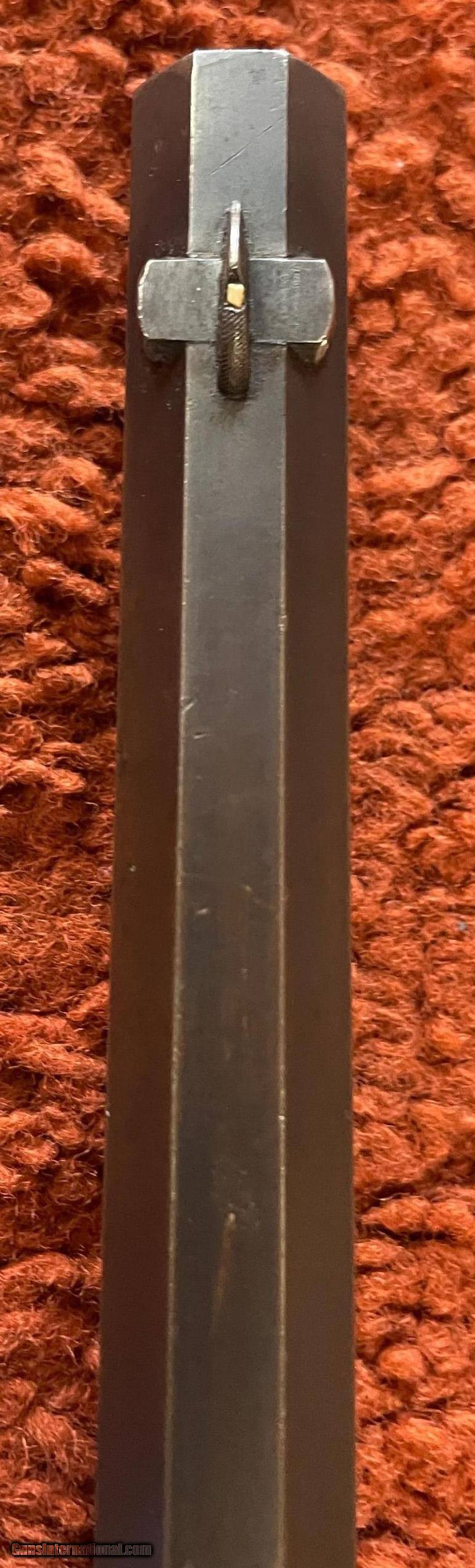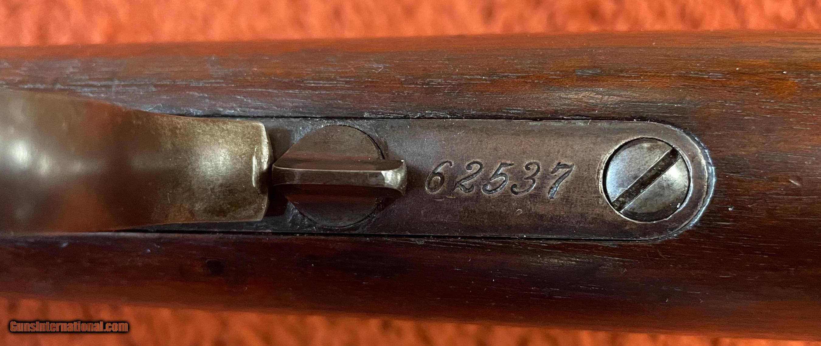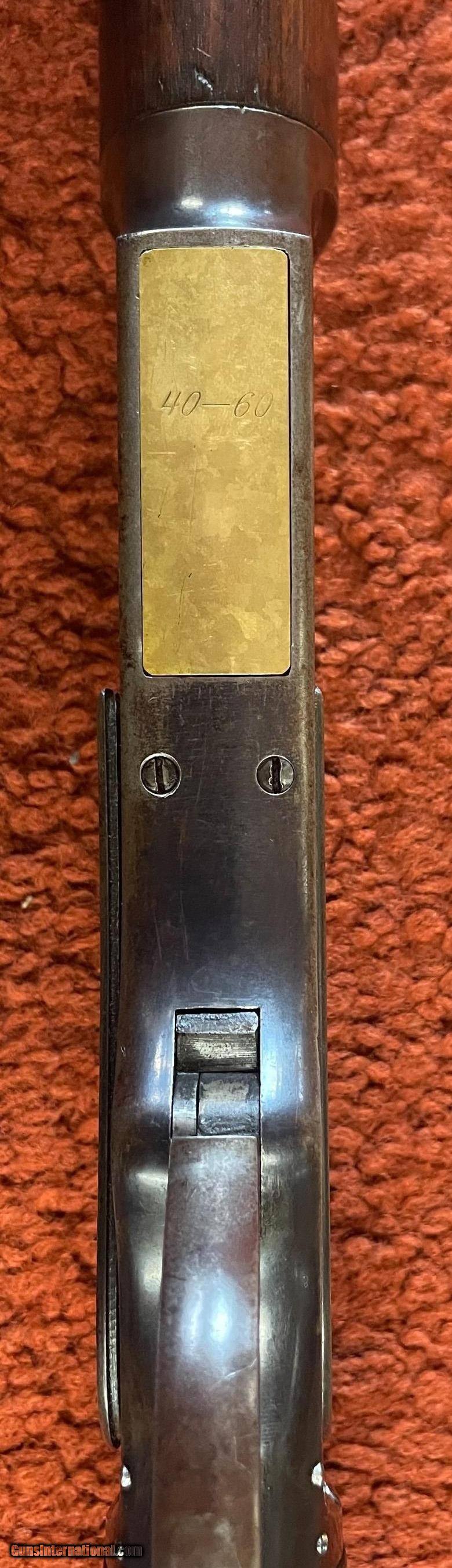 Description: This is a high condition example with much original blue remaining with the balance turning brown. The bore and mechanics are excellent. SOLD Antique: Yes Rifle Caliber: .40-60 Winchester Manufacturer: Winchester Model: 1876 Serial Number: 62537 Barrel Length: 30 |