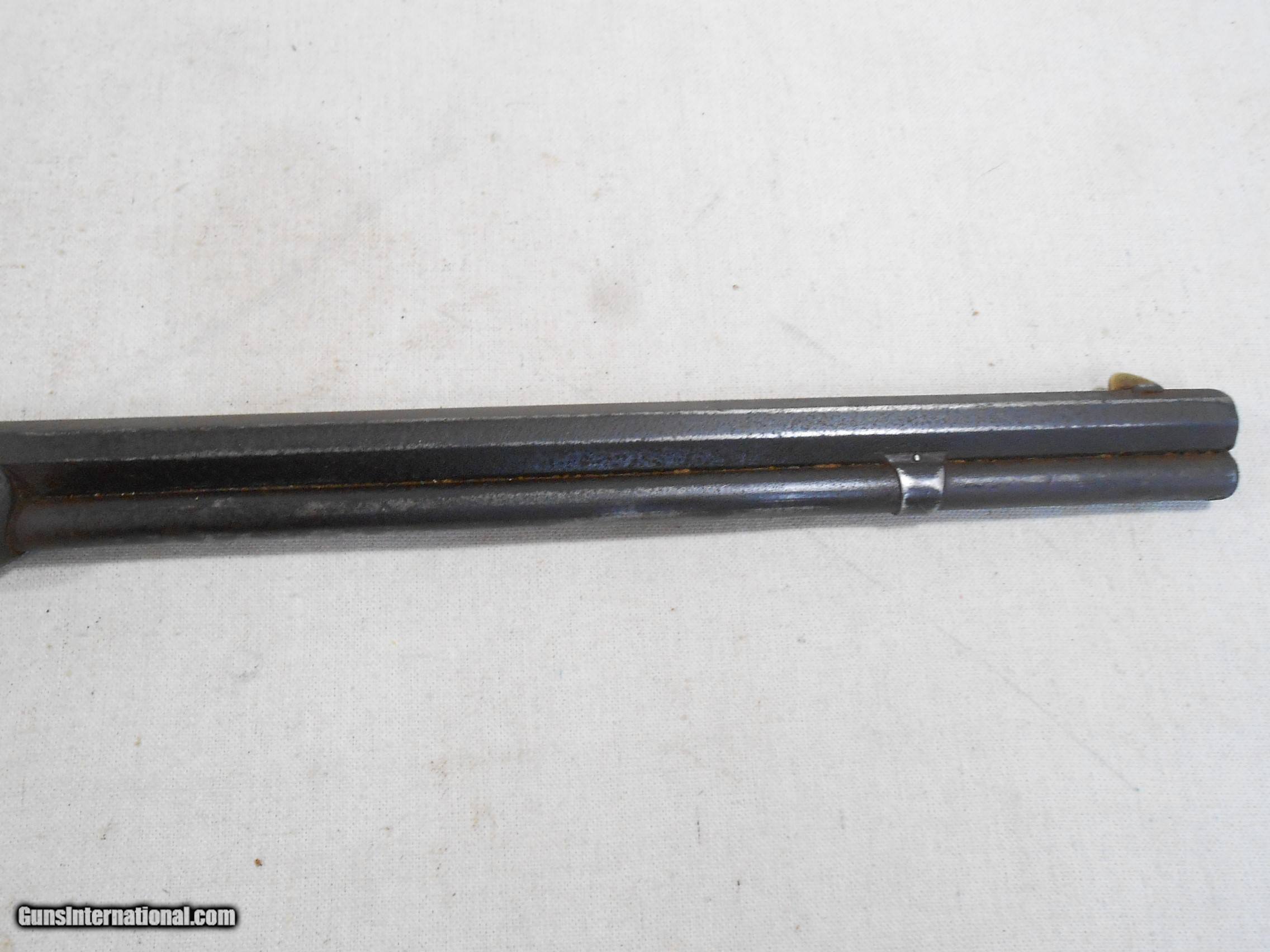 Description: *MAKE: Winchester *MODEL: 1873 Second Model Sporting Rifle, made in 1891 *CALIBER: .32-20wcf *BARREL: 24" Octagon, full magazine *ACTION: Lever *SIGHTS: Buckhorn rear STOCK: Straight-grip Walnut stock with plain forearm, and metal cresent butt plate. FINISH: Bluing has turned brownish gray with some white showing on top of the barrel. Metal shows corrosion on barrel and receiver. WOOD: Stock has turned a dark brown due to age with some scratches and dings from handling. No signs of cracks. BORE: Frost with worn lands MECHANICS: Lever action works as designed. Missing dust cover. SOLD Manufacturer: winchester Model: 1873 Sporting Rifle Serial Number: 392409 Caliber Info: .32-20 |
