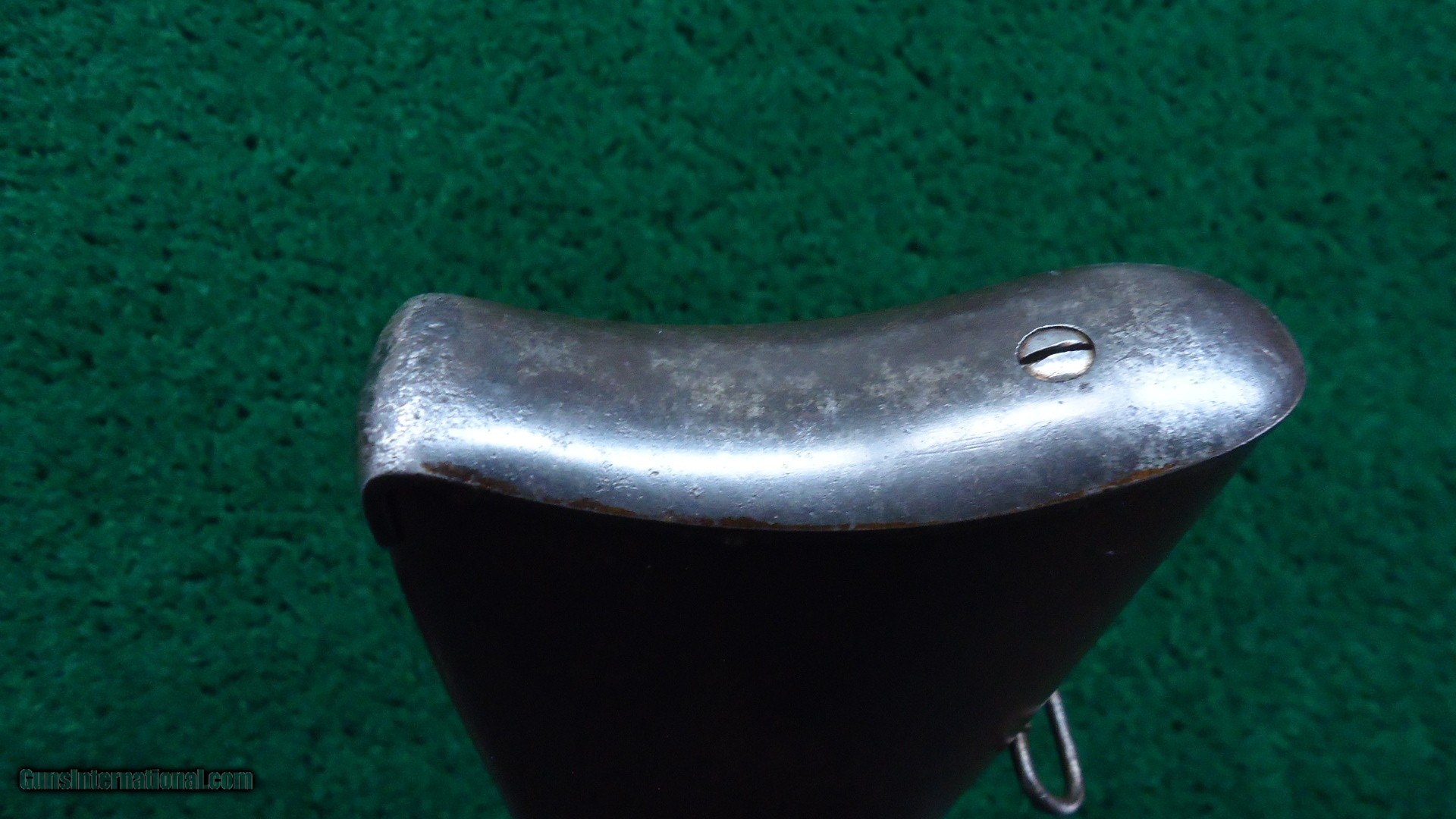 Description: 32 inch round barrel chambered in .45-75 caliber with a good bore that has visible shine and rifling with scattered light roughness throughout. Blade front and musket folding ladder rear sight graduated to 800 yards. Barrel is a mottled brown patina. Nose cap holds a cleaning rod on the left side and a saber bayonet lug on the right side. Receiver is a plum/brown patina with good traces of original blue in the protected areas. Wood has been slightly cleaned but looks very good. Buttstock has the correct sling swivel. No front sling swivel. Good mechanical condition. Includes a correct 20 inch blade saber bayonet with fish scale pattern brass grip. These bayonets were supplied to Winchester by Ames. This example was shipped November 22, 1882 as part of order 35449 with 298 muskets and 81 carbines destined for Hawaii. Comes complete with a Research Form. The Citizens' Guard of Hawaii was a militia used against royalists forces who opposed the overthrow of the Kingdom of Hawaii. These Winchesters were used to arm the loyalist Citizens' Guard who led a brief conflict that occurred from January 6 to January 9, 1895, Three years later Hawaii was annexed to the United States. A neat piece of history. Leroy Merz Antique Firearms specializes in antique and vintage Winchesters and other fine American firearms. Since 1965 Mr. Merz has taken part in the world of firearms and has been a contributor to many well known reference books. We have hundreds of additional guns in every price range at our home online. Search for Merz Antiques in google. SOLD Antique: Yes Rifle Caliber: .45-75 Winchester |