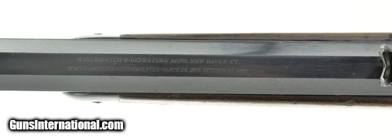 Description: Winchester 1876 .45-60 caliber rifle. Made in 1878. Early gun in production and it is a second model. This gun has 97% of the refinish. Wood is very good. All of the markings are nice and sharp. Bore is excellent!
