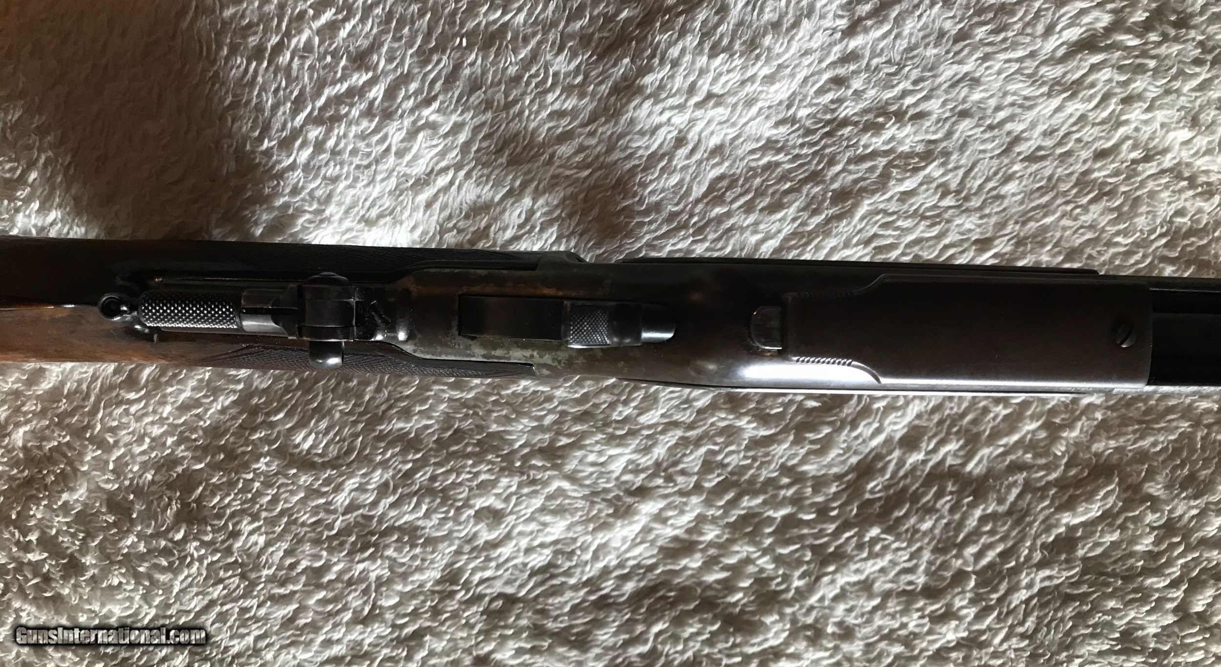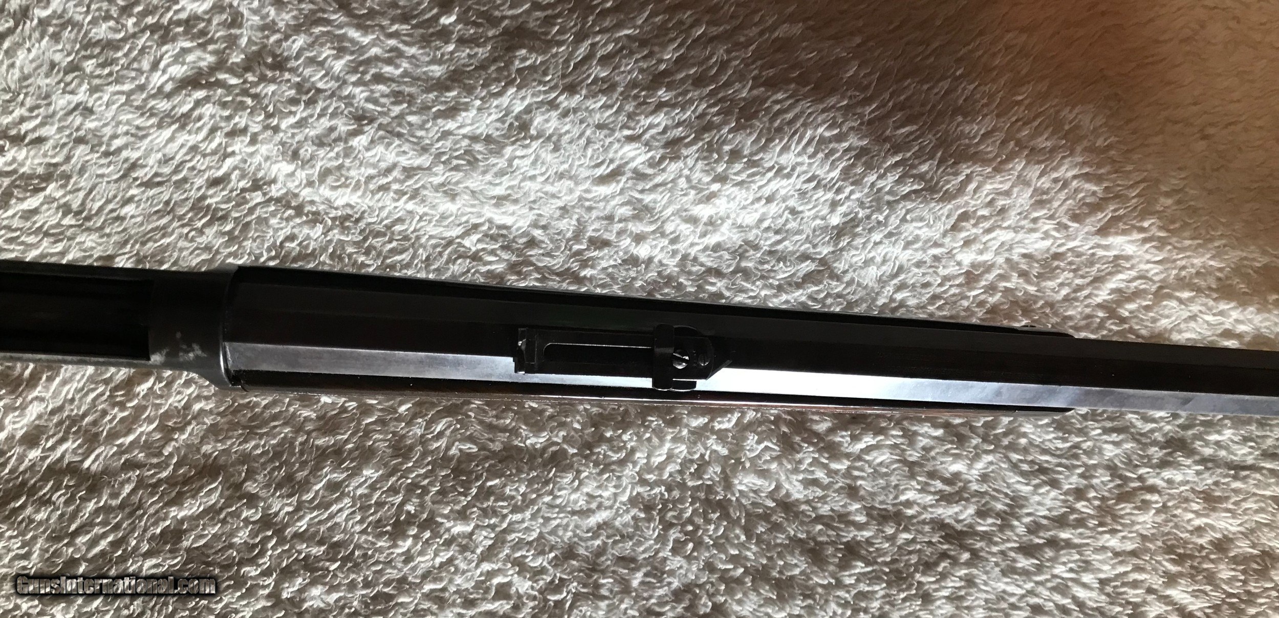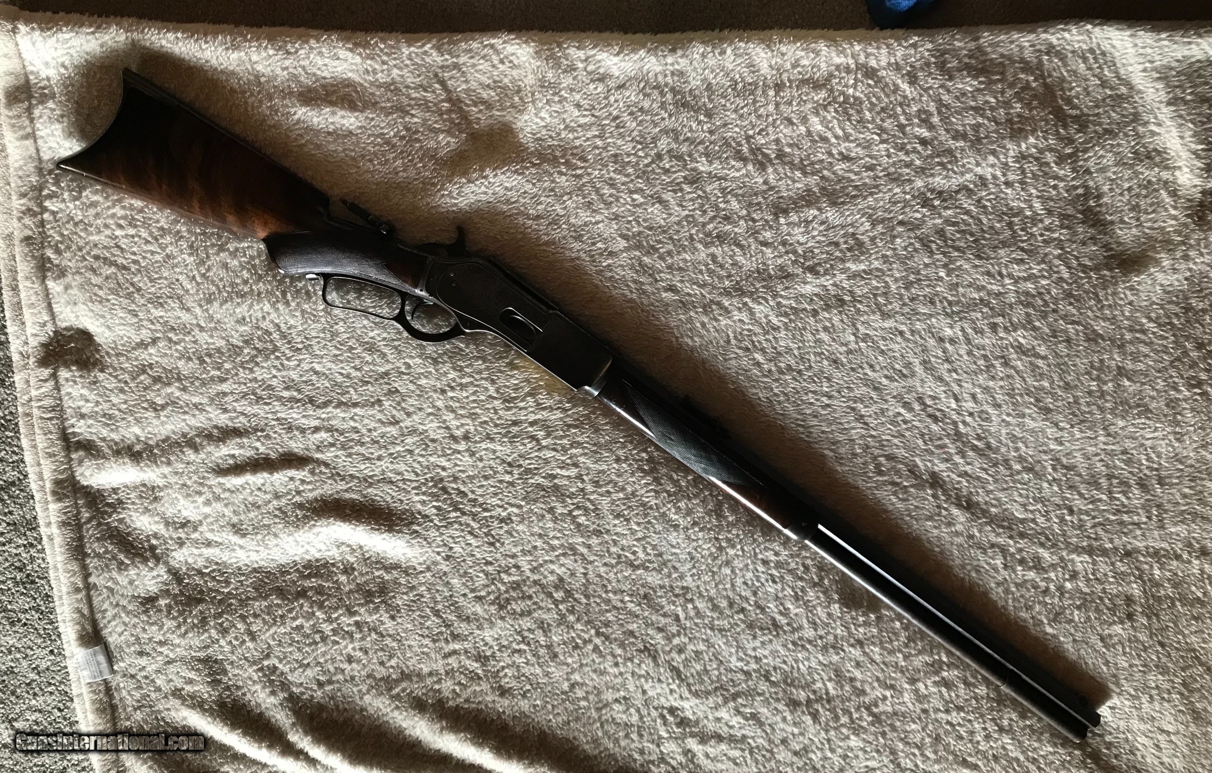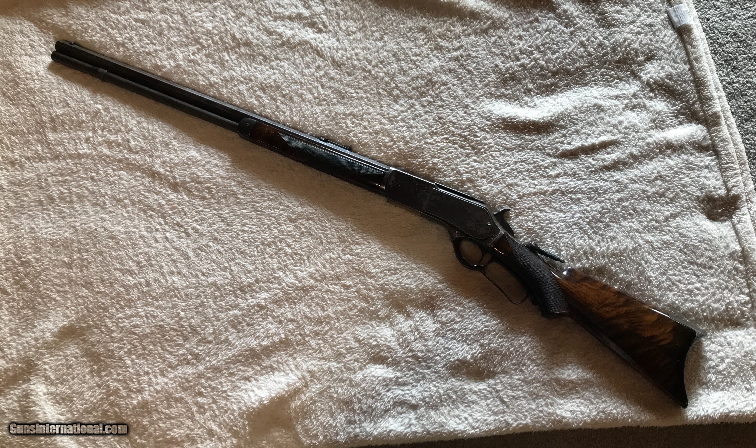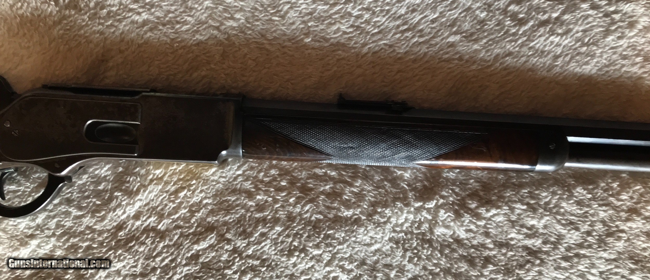 Description: Winchester model 1876 45/60 deluxe short barrell serial # 24651, dark bore, deluxe wood, finish patina and Cody letter, very good condition. Madis Winchester Hand Book states there were 79 with shorter than standard barrells. This would make a great addition to any ones collection. SOLD Antique: Yes Rifle Caliber: .45-60 Winchester Manufacturer: Winchester Model: 1876 |