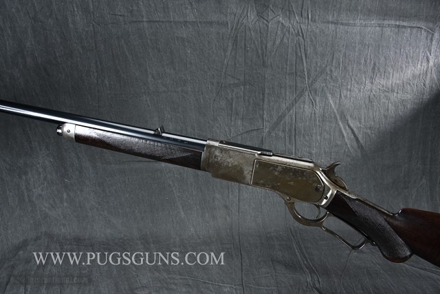 Description: Was $35000.00. This 22 inch barreled rifle shows most all of the barrel blue, and about 25% original case color that is mostly faded. Features deluxe checkered wood, button magazine, and a nice, mustard-colored floor plate. The bores are in good condition. The unusual caliber and shorter barrel make this a unique and interesting rifle. Includes factory letter. SOLD Manufacturer: Winchester Model: 1876 Deluxe Serial Number: 15XXX Caliber Info: .50-95 cal Ejectors: Yes Barrels: 22 in Action: Lever Action Triggers: Single Trigger Stock: Nicely Figured Wood Fore End: Checkered Forend LOP: 13 1/16 in Weight: 8 lbs 12 ozs |