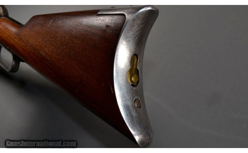 Description: Introduced as the "Centennial Rifle" in 1876, the Model 1876 was a larger-framed, more powerful version of the Model 1873. Chambered in multiple big bore cartridges. This barrel was reblued at one time and the stamping is not visible for the cartridge. Possibly a 45-60 or 45-75. The action is tight and strong, has a ladder sight instead of open buckhorn sights. None SOLD Item Location: Lacey, WA |