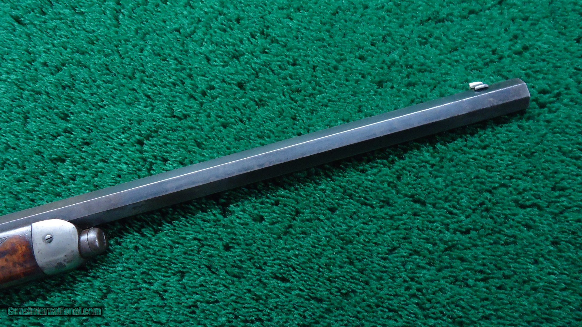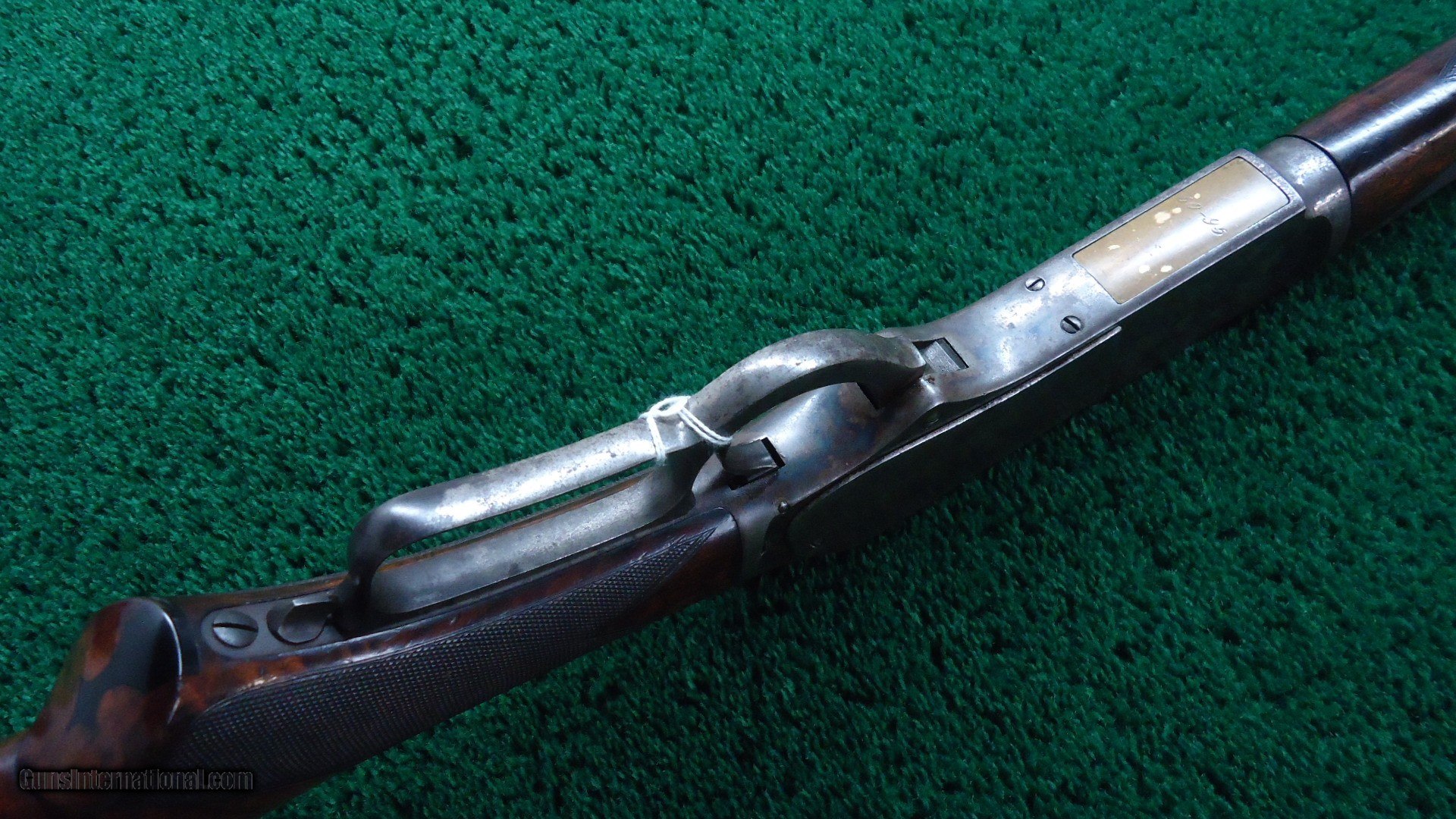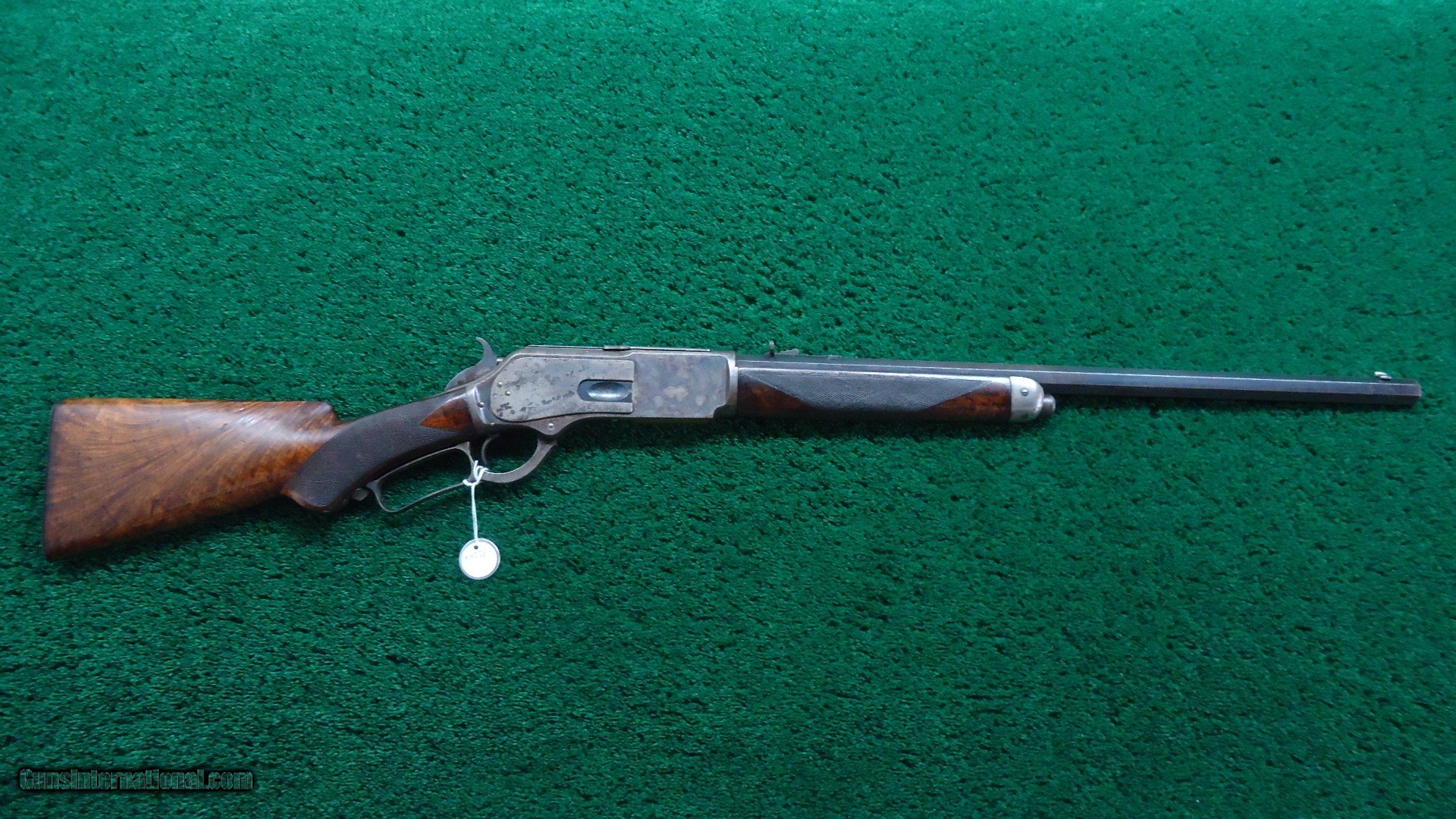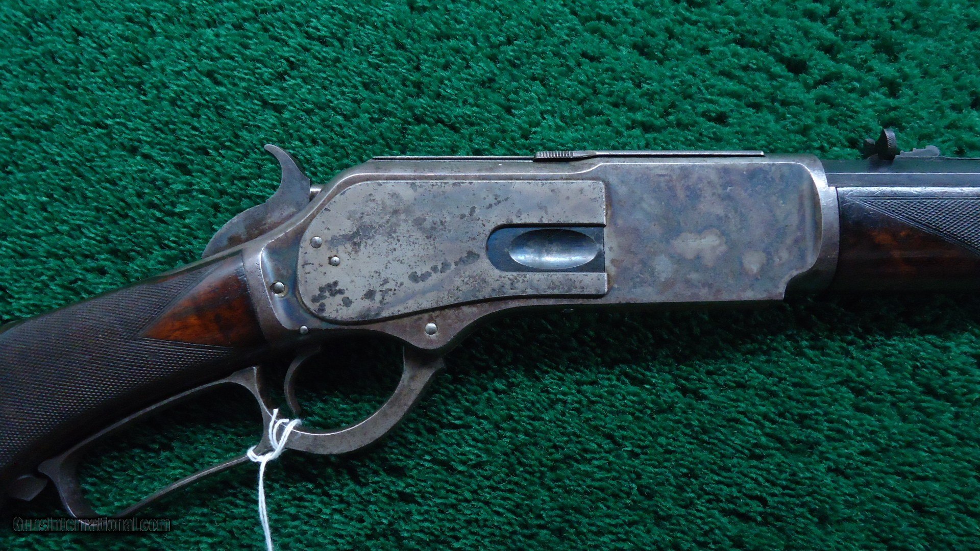 Description: 22 inch octagon barrel chambered in 50-95 (Express) caliber with a very good bore. Sights include a nickel-silver blade front and a sporting rear with checkered edges. About 30% original barrel blue with the balance a plum/blue. Good markings. Special order half magazine and shotgun butt are not mentioned on the factory letter. The 22 inch barrel length is not mentioned either but it does have the shorter than standard forearm that would be correct for this length barrel. Casehardened receiver has faded slightly but retains strong case colors in the protected areas with some discoloration and light pitting. Hammer and lever have good amounts of color as well while the forend cap has traces of color. Forearm and pistol grip stock are fancy grain walnut with "Style H" checkering and a high polish "piano" finish. Stock and forearm are both in fine condition overall with sharp checkering and most of the high polish piano finish is intact. The stock and forearm have some minor handling marks. The pistol grip has an ebony inlay. Shotgun buttplate has a dark patina with some light pitting. Nice functioning action. There were only 61 of the 22 inch octagon barrels made in this caliber. This scarce and desirable Winchester Model 1876 deluxe .50 Express rifle was made in 1883 and comes with a factory letter. Leroy Merz Antique Firearms specializes in antique and vintage Winchesters and other fine American firearms. Since 1965 Mr. Merz has taken part in the world of firearms and has been a contributor to many well known reference books. We have hundreds of additional guns in every price range at our home online. Search for Merz Antiques in google. SOLD Antique: Yes Rifle Caliber: .50-95 Winchester |