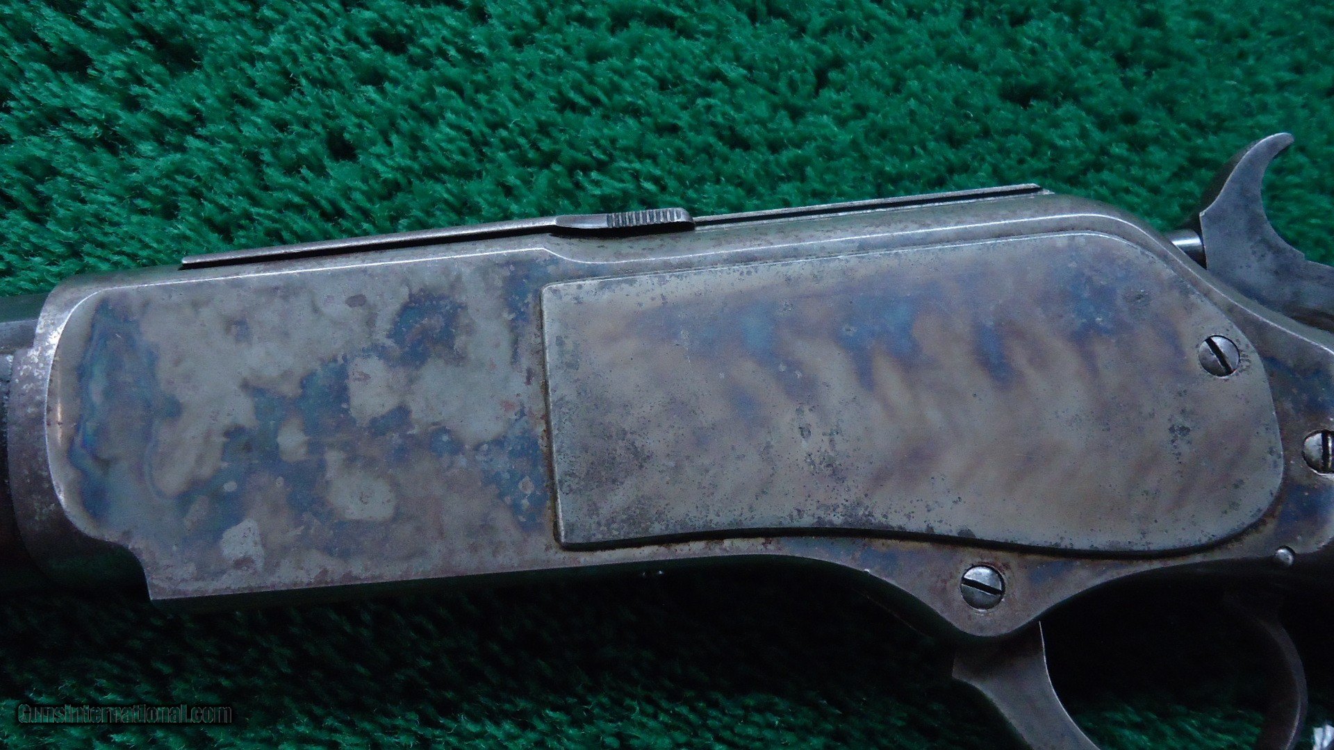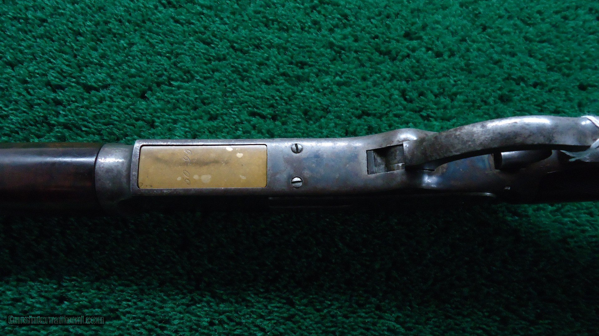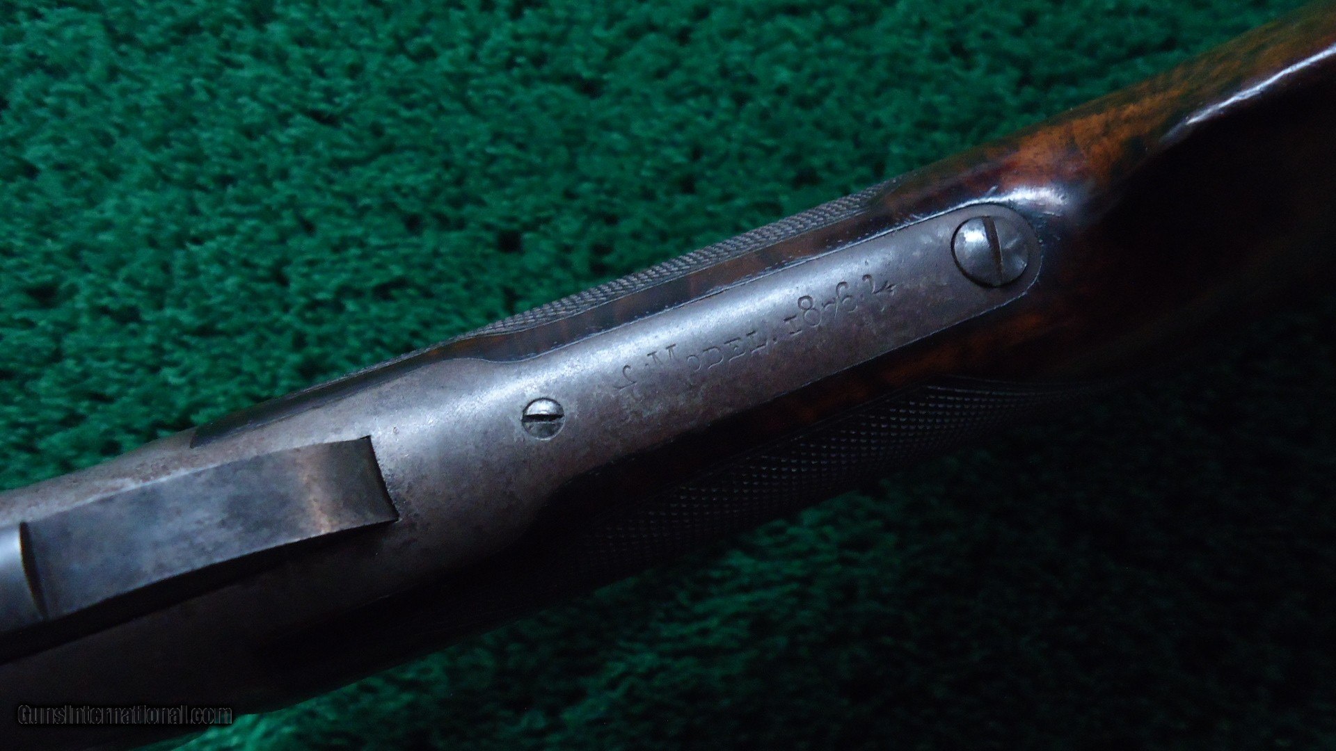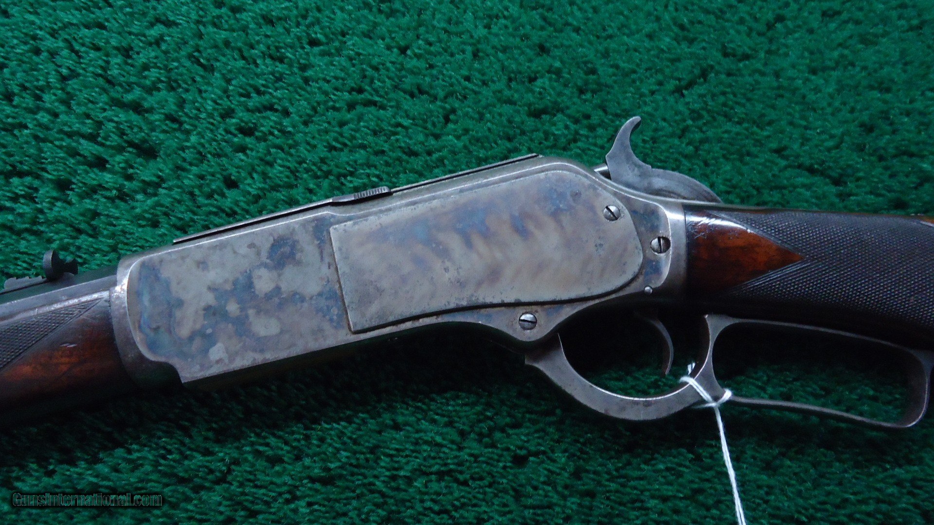 Description: 22 inch octagon barrel chambered in 50-95 (Express) caliber with a very good bore. Sights include a nickel-silver blade front and a sporting rear with checkered edges. About 30% original barrel blue with the balance a plum/blue. Good markings. Special order half magazine and shotgun butt are not mentioned on the factory letter. The 22 inch barrel length is not mentioned either but it does have the shorter than standard forearm that would be correct for this length barrel. Casehardened receiver has faded slightly but retains strong case colors in the protected areas with some discoloration and light pitting. Hammer and lever have good amounts of color as well while the forend cap has traces of color. Forearm and pistol grip stock are fancy grain walnut with "Style H" checkering and a high polish "piano" finish. Stock and forearm are both in fine condition overall with sharp checkering and most of the high polish piano finish is intact. The stock and forearm have some minor handling marks. The pistol grip has an ebony inlay. Shotgun buttplate has a dark patina with some light pitting. Nice functioning action. There were only 61 of the 22 inch octagon barrels made in this caliber. This scarce and desirable Winchester Model 1876 deluxe .50 Express rifle was made in 1883 and comes with a factory letter. Leroy Merz Antique Firearms specializes in antique and vintage Winchesters and other fine American firearms. Since 1965 Mr. Merz has taken part in the world of firearms and has been a contributor to many well known reference books. We have hundreds of additional guns in every price range at our home online. Search for Merz Antiques in google. SOLD Antique: Yes Rifle Caliber: .50-95 Winchester |