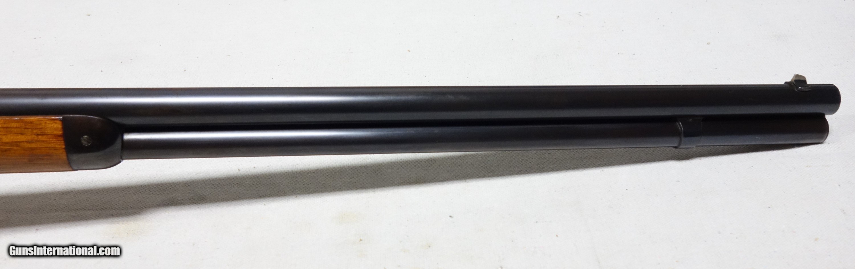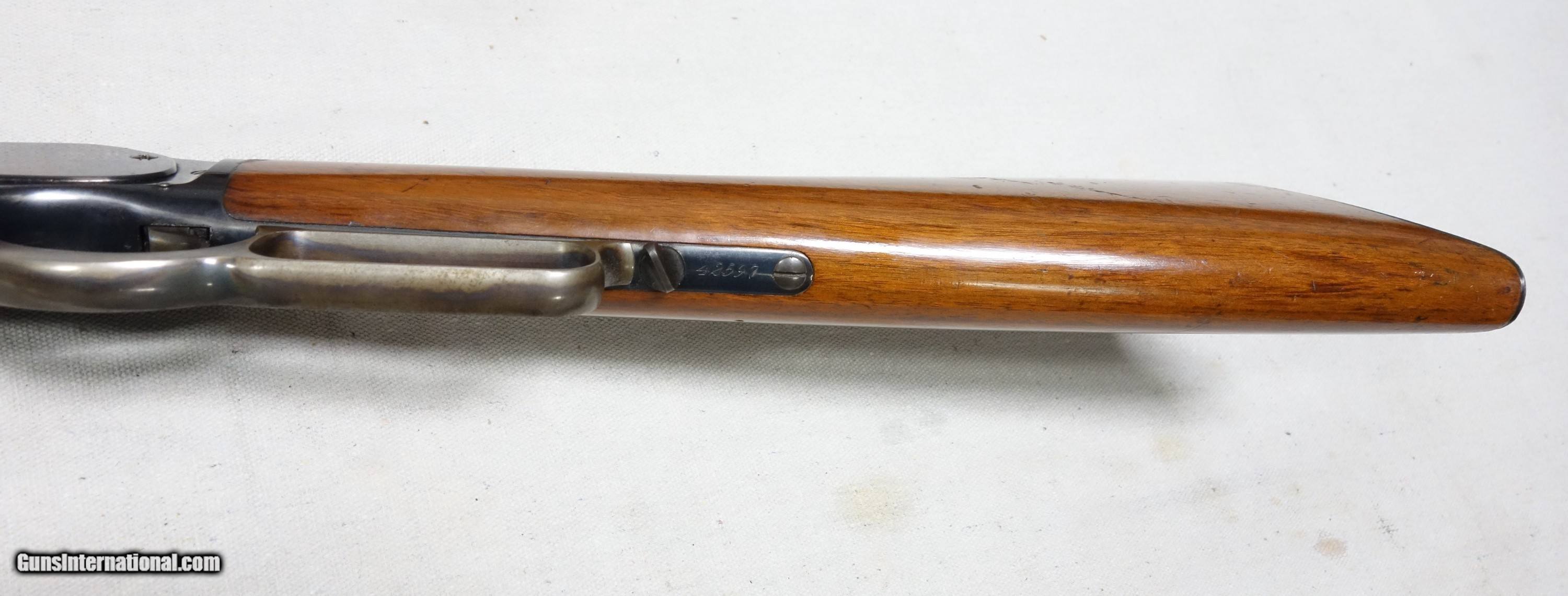 Description: ***SOLD*** Exceptional example of the rare Model 1876 with a 28" round barrel, full length magazine, and chambered in 40-60 Caliber. S/N 42597 made in 1884. Overall condition is outstanding, showing very strong and consistent bluing throughout with some nice case colors remaining on the hammer, lever, and trigger. The loading gate shows vivid fire blue. There are a few light rubs on the receiver walls and high edges. The wood is nearly as fine, having never been sanded or repaired, showing only typical light handling marks/scrapes and a couple of isolated mars. There are no cracks anywhere, nor any other notable detractors. Original sights include a german silver front and standard issue ladder type rear which is graduated to 1000 yards and correctly stamped 1876. The action's dust cover is tight and smooth with strong bluing. The steel crescent buttplate is in excellent shape as well and has a smooth sliding trap door with a 5 section steel cleaning rod present. The excellent bore is bright and shiny throughout its length. The mechanical functions are all working flawlessly, tight and crisp throughout. Comes complete with a Winchester Gun Museum curator letter dated 1963 confirming production and current configuration. With less than 64K Model 1876s ever produced, nearly all are highly collectible. To find one in this fine of condition can be a real challenge. Please add $100 for expedited and fully insured shipping from Alaska in a custom cut foam lined box. SOLD Antique: Yes Rifle Caliber: .40-60 Winchester |