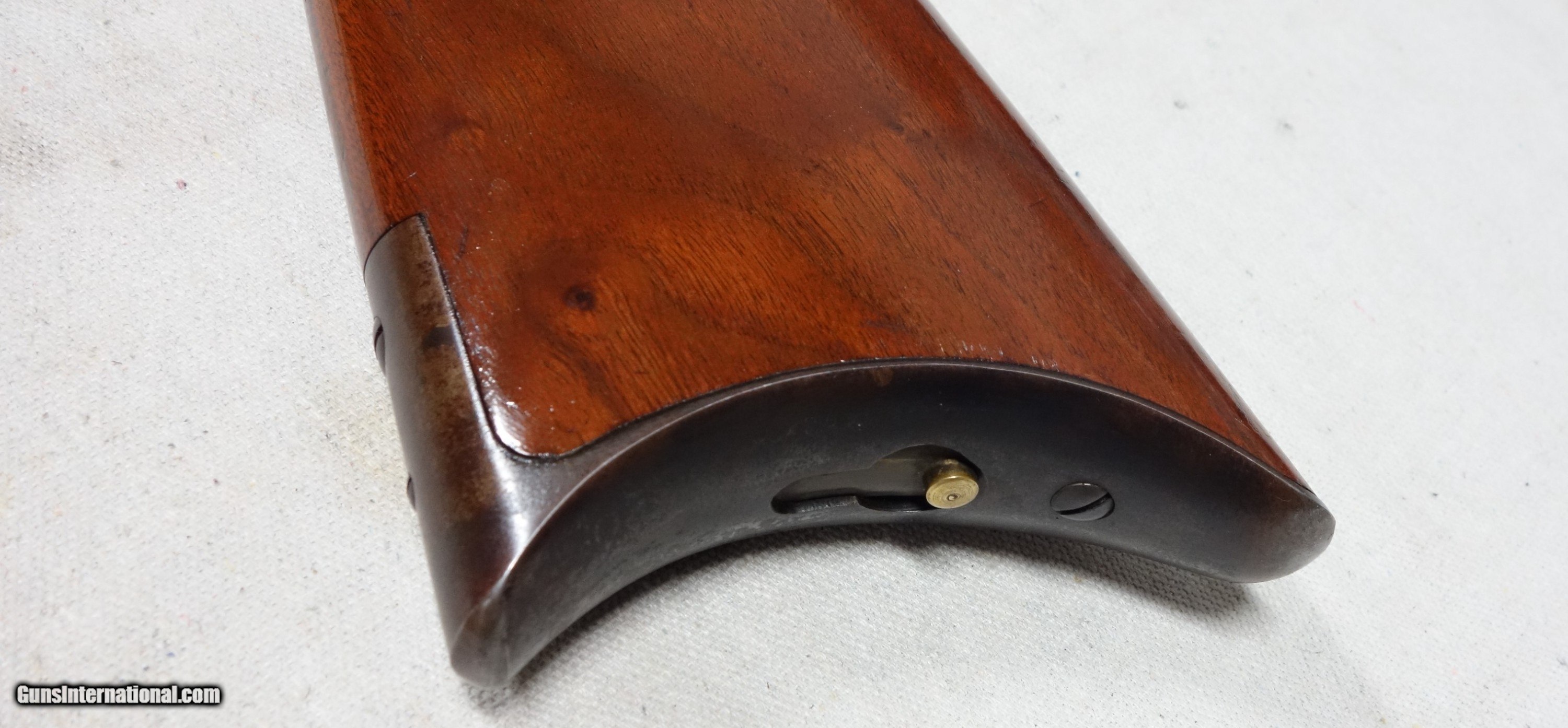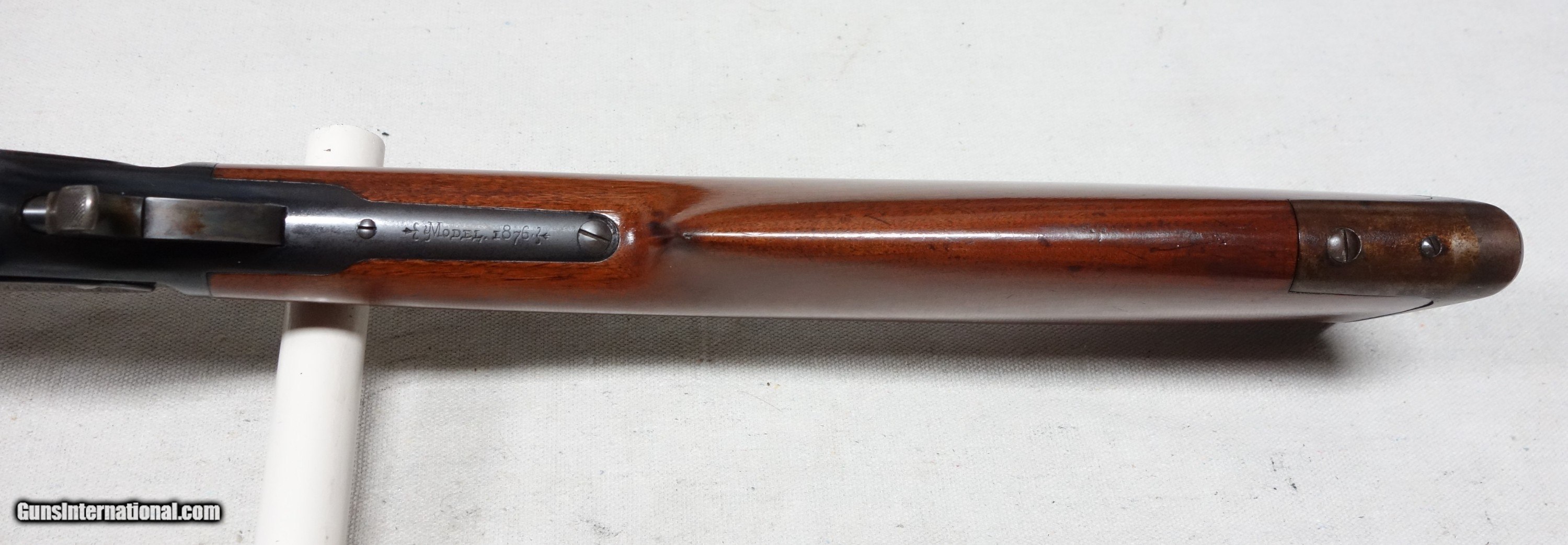Description: ***SOLD*** Fabulous example of this rare and highly desirable lever gun. Winchester 1876 Rifle in 45-60 caliber. S/N 50179 made in 1884 28" round barrel with minty bore Excellent original finishes throughout with only minor handling marks Case colored hammer, lever, and crescent butt Original sights are German silver front, 1000 yd. ladder rear stamped 1876 Crisp and proper mechanical functions Among the finest you will see offered Expedited and fully insured shipping from Alaska is $100 SOLD |