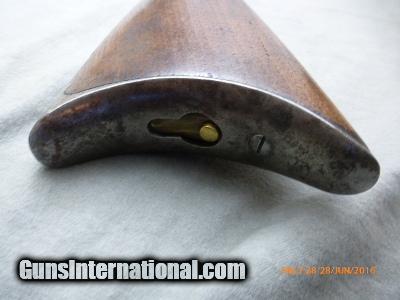 Description: Winchester Model 1876 Rifle 45-75 Cal. 16-51 Winchester Model 1876 Rifle Gun Serial #26878, 45-75 cal. 28” round bbl 48” overall, standard markings, full magazine, crescent butt plate. VG/Fine condition. Rifle metal has a nice age patina, with nice sharp markings & lines. Virtually no corrosion any place 10-15% original bluing on frame; Bore has 60-65% rifling, some wear and corrosion in grooves. Works fine mechanically. Overall very good/fine. (16-51) $3650.00 I take Visa/MasterCard, add 3%. Allow two weeks for all checks, whether bank, personal or certified to clear. It is also possible to wire funds to my account for instant credit for a $20.00 wire charge. 3 day- no questions asked return period for refund of price paid for gun. (Not including shipping or credit card charges.) All sales subject to prior sale at other sites or from shop. Call or email with any questions or for more pictures. Guns are antique and should not be fired without examination by gunsmith. $50 shipping for long guns, $30 for hand guns to lower 48 states, about $50-$75 to most European countries and $70-$80 to Australia for antique handguns, carbines $75-$125. We can generally get insurance if you want through shipper but coverage is very limited. Notify me if you want it. You can send 20% down- balance in 90 days for installment payment plan. No refunds on installment plans. I have shipped to Norway (long gun w/fragile stock) see feedback, England (Winchester1876, Rem. Dbl. Derr.), Northern Ireland, Austria, France, Netherlands ,(Holland), Australia, Denmark, and Sweden. Email if you are not U.S. for estimated shipping costs, payment methods, etc. I am always buying and trading for antique and collectible guns, Indian items, rare ammo, etc. Email what you have got for sale or trade. SOLD Antique: Yes Serial Number: 26878 |