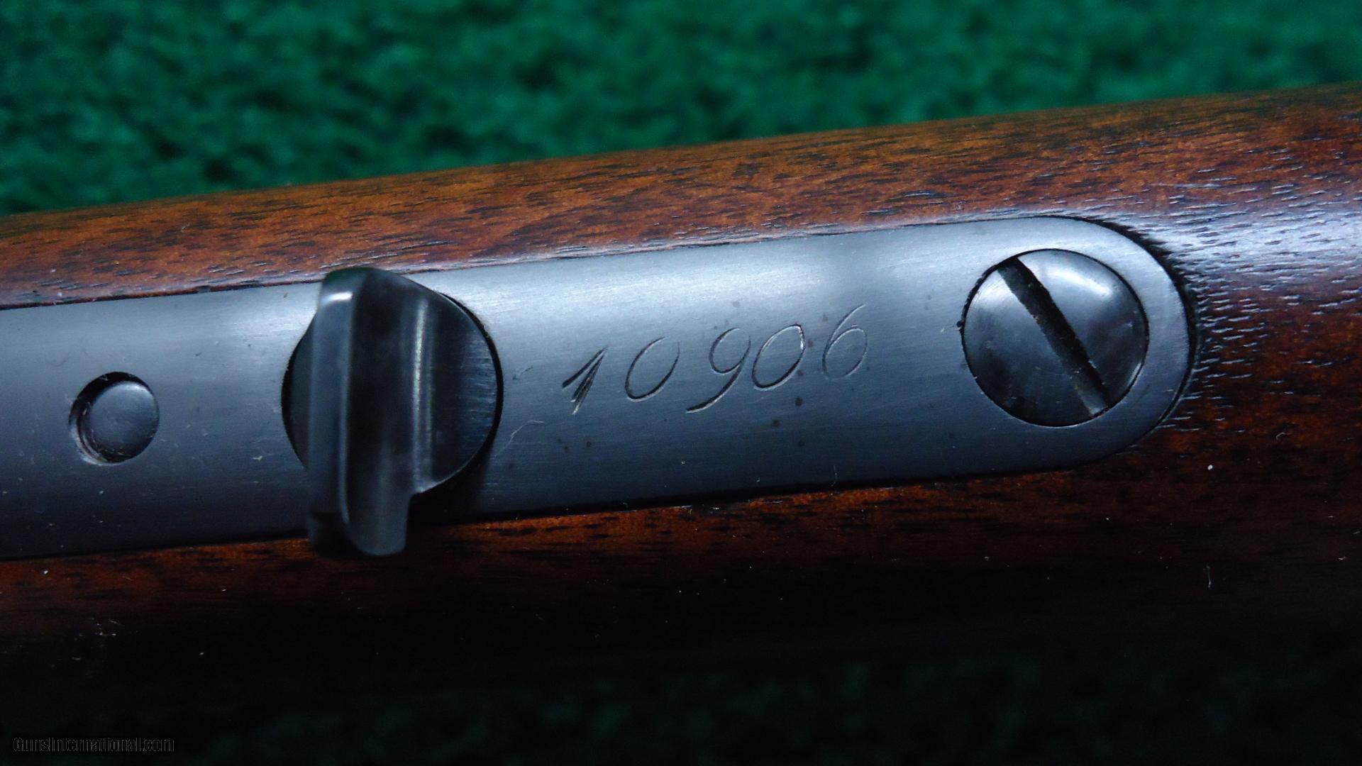 Description: 26" oct bbl, button mag and original sights. Only 894 with this barrel length. Excellent bright shiny bore. Correct thumbprint dust cover with 50 cal express markings as well as 50-95 cal marking on the lifter. Gun has been completely restored by Turnbull. Beautifully done with sharp corners and crisp action. Wood has been nicely refinished and has a shotgun style buttplate. All markings are excellent. Gun retains all of the Turnbull refinish and has bright vivid case colors on the hammer and lever. Gun letters with 50 express, oct bbl, button mag and shotgun butt. Early 10k serial range. Leroy Merz Antique Firearms specializes in antique and vintage Winchesters and other fine American firearms. Since 1965 Mr. Merz has taken part in the world of firearms and has been a contributor to many well known reference books. Just recently we mailed the 127th edition of our privately-published catalog. We have hundreds of additional guns in every price range at our home online. Search for Merz Antiques in google. SOLD Antique: Yes |