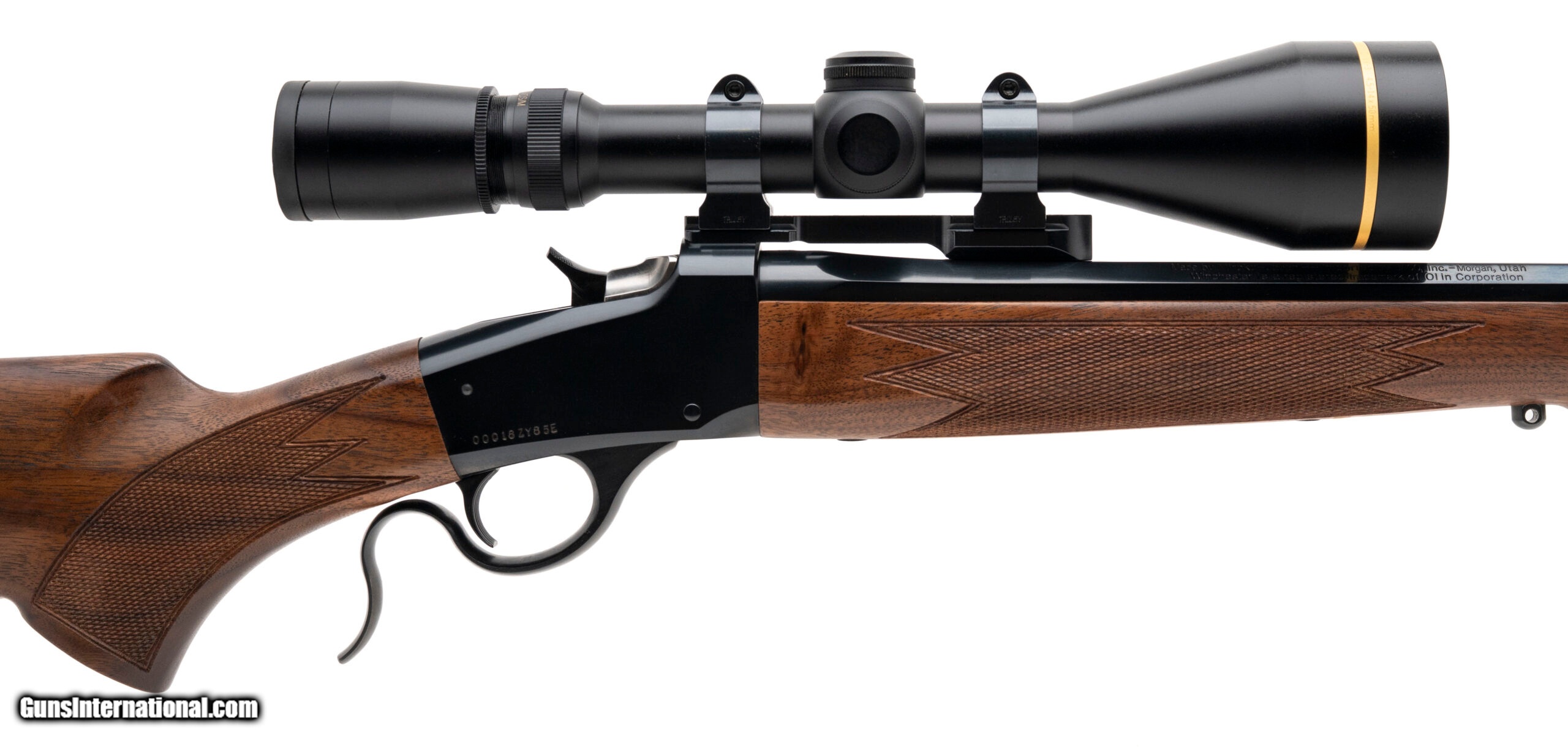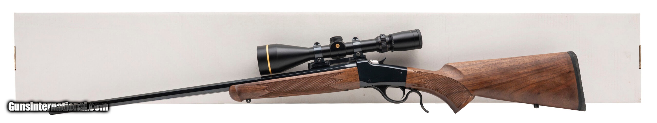 Description: "SN: 00018ZY85E. Modern production, .223 Rem. with a 24"" octagon barrel. Bore is excellent. Single-shot rifle with a Leupold VX-3 4.5-14X50mm scope, blued finish, and checkered wood stock. Includes box. Overall condition is excellent. (CONSIGNMENT) SOLD |