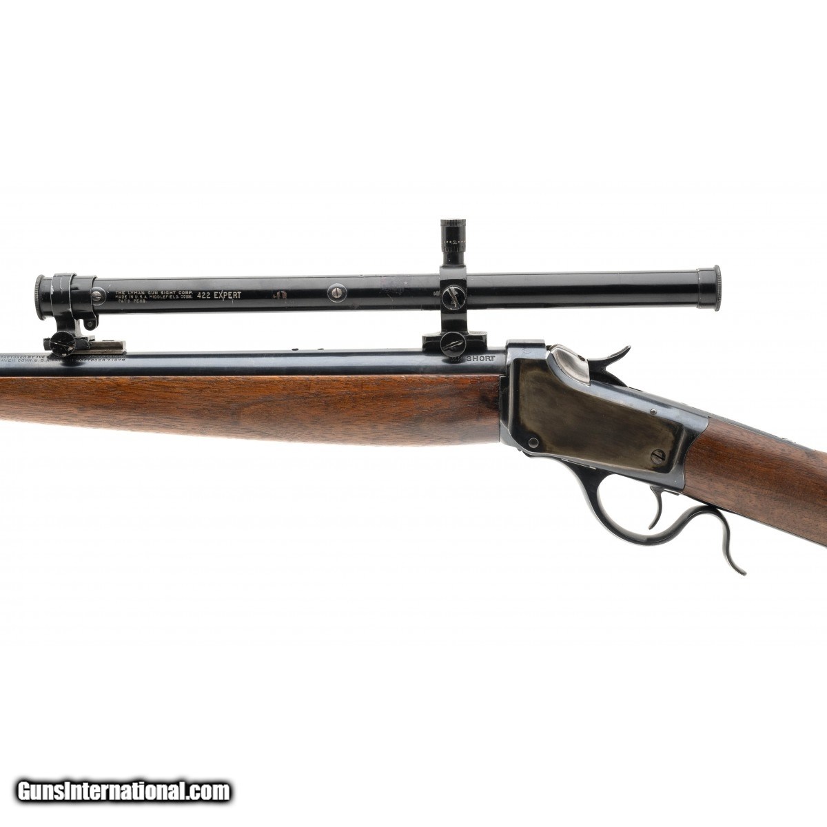 Description: " SN: 133206. Made in 1919. .22 short with a 28"" barrel. Bore is shiny with strong rifling. Low wall single shot rifle. Has about 85% blue with wear on the receiver. The wood is in excellent condition with minimal handling wear. Has a Lyman 422 Expert scope. Overall very good condition. (CONSIGNMENT) SOLD |