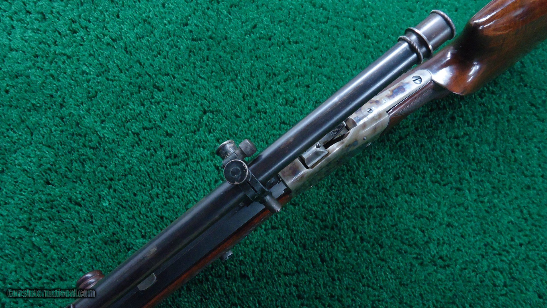 Description: This gun features a 29-3/4 inch full octagon #4 barrel with a fine bore which appears to have been shortened about a quarter of an inch. Assuming they had done so for accuracy. Barrel retains about 90% blue starting to tone somewhat. Includes fittings for scope blocks on the top of the barrel and features a globe front sight with no rear sight. A Winchester A5 scope which has excellent clarity. Also features a tuning fork style palm rest. Receiver is in fine condition with about 90% case colors starting to dim a little bit but still sharp. Original checkered deluxe wood is in very nice condition with considerable amounts of varnish present. Complete with a cheek piece and sharp checkering and also a helm style butt plate. Also includes double set triggers. Very nice little gun. Leroy Merz Antique Firearms specializes in antique and vintage Winchesters and other fine American firearms. Since 1965 Mr. Merz has taken part in the world of firearms and has been a contributor to many well known reference books. We have hundreds of additional guns in every price range at our home online. Search for Merz Antiques in google. SOLD Antique: Yes Rifle Caliber: .32-40 Winchester |