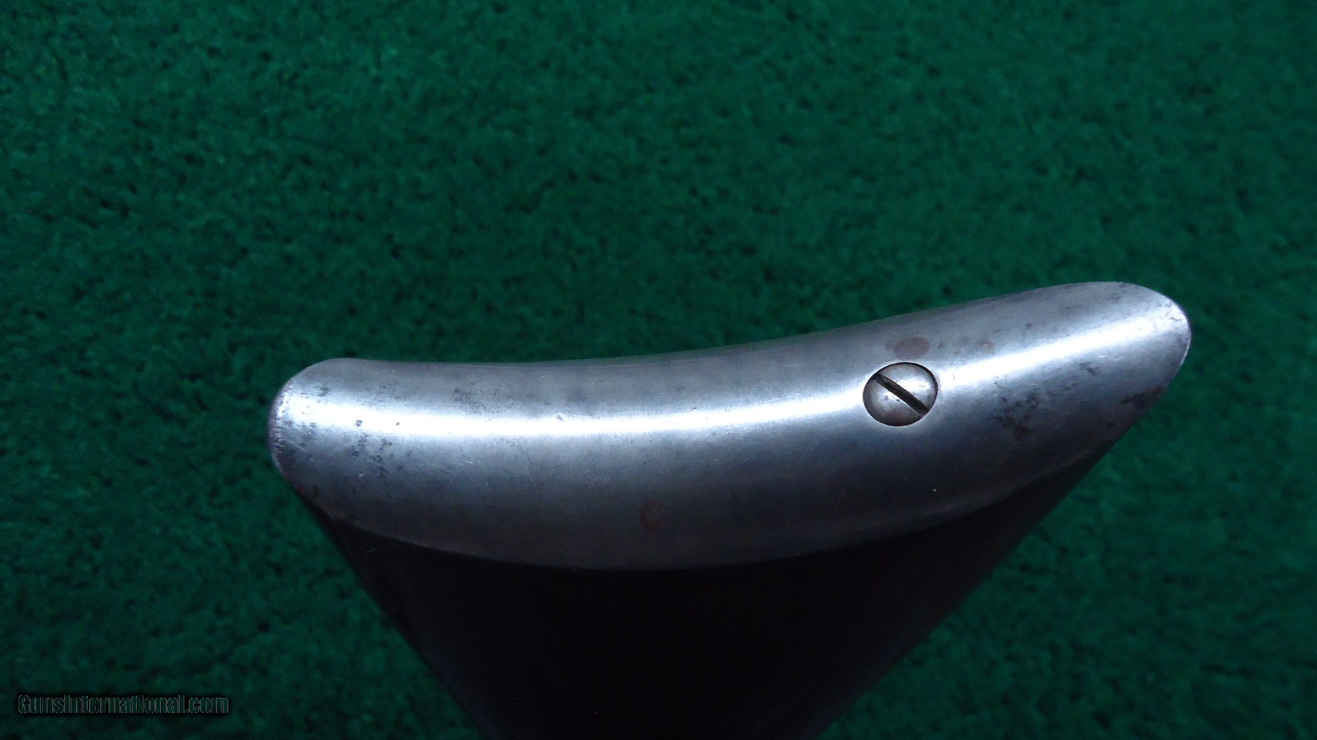 Description: 30 inch #3 part octagon barrel chambered in 32-40 caliber with a bright shiny excellent bore. Combination front sight and spirit level in the rear dovetail with a folding tang sight. Barrel retains most all the original blue. Receiver retains about 90% vivid case color with traces on the hammer and lever. Complete with double set triggers. Walnut stocks are in excellent condition with most original varnish remaining. Rifle style buttplate. Nice Antique Winchester target rifle from 1895. Leroy Merz Antique Firearms specializes in antique and vintage Winchesters and other fine American firearms. Since 1965 Mr. Merz has taken part in the world of firearms and has been a contributor to many well known reference books. We have hundreds of additional guns in every price range at our home online. Search for Merz Antiques in google. SOLD Antique: Yes Rifle Caliber: .32-40 Winchester |
