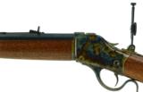 Winchester 1885 .45-90 caliber rifle. High Wall made in 1905. Expertly restored receiver has beautiful case colors. Wood is excellent. Bore is excellent. Rifle has tang peep sight in addition to its rear sight. Barrel has approximately 98% of a restored blue with light speckling. Excellent overall condition. A beautiful High Wall rifle. Also shoots .45-70 ammo.