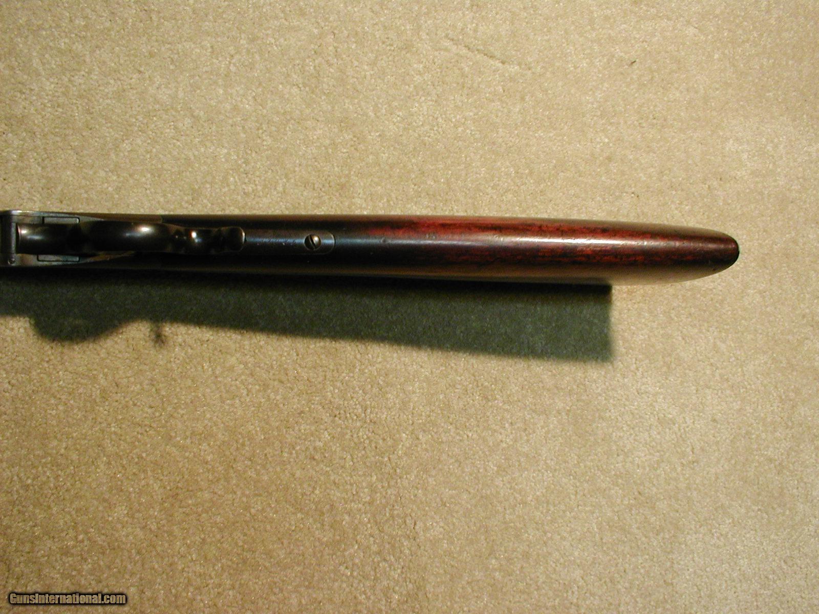 Description: 1885 SPECIAL ORDER LOWALL SINGLE SHOT IN SCARCE CENTER FIRE .32WCF (.32-20) CALIBER WITH 28" OCTAGON BARREL AND SPECIAL SHOTGUN BUTT, MADE 1889, getting hard to find Lowalls in center fire calibers, this is a really nice early example with fine deep barrel blue ageing with only a bit of plum mixing evenly, uncleaned dark patina receiver, exc. butt stock with correct smooth steel butt plate and tight wood to metal fit, exc. forend with original ebony inlay forend tip intact, both stock and forend showing only light normal handling, tight action, original sights, exc. markings, surprisingly fine bore with only some scattered light surface roughness mainly ahead of the chamber- bore may scrub out near exc., exc. screws, hard to find in this uncleaned and un-messed with condition. SOLD Antique: Yes Manufacturer: Winchester Model: 1885 LOWALL Serial Number: 37XXX Caliber Info: .32-20 Condition: fine+ Barrels: 28" #1 OCT. |