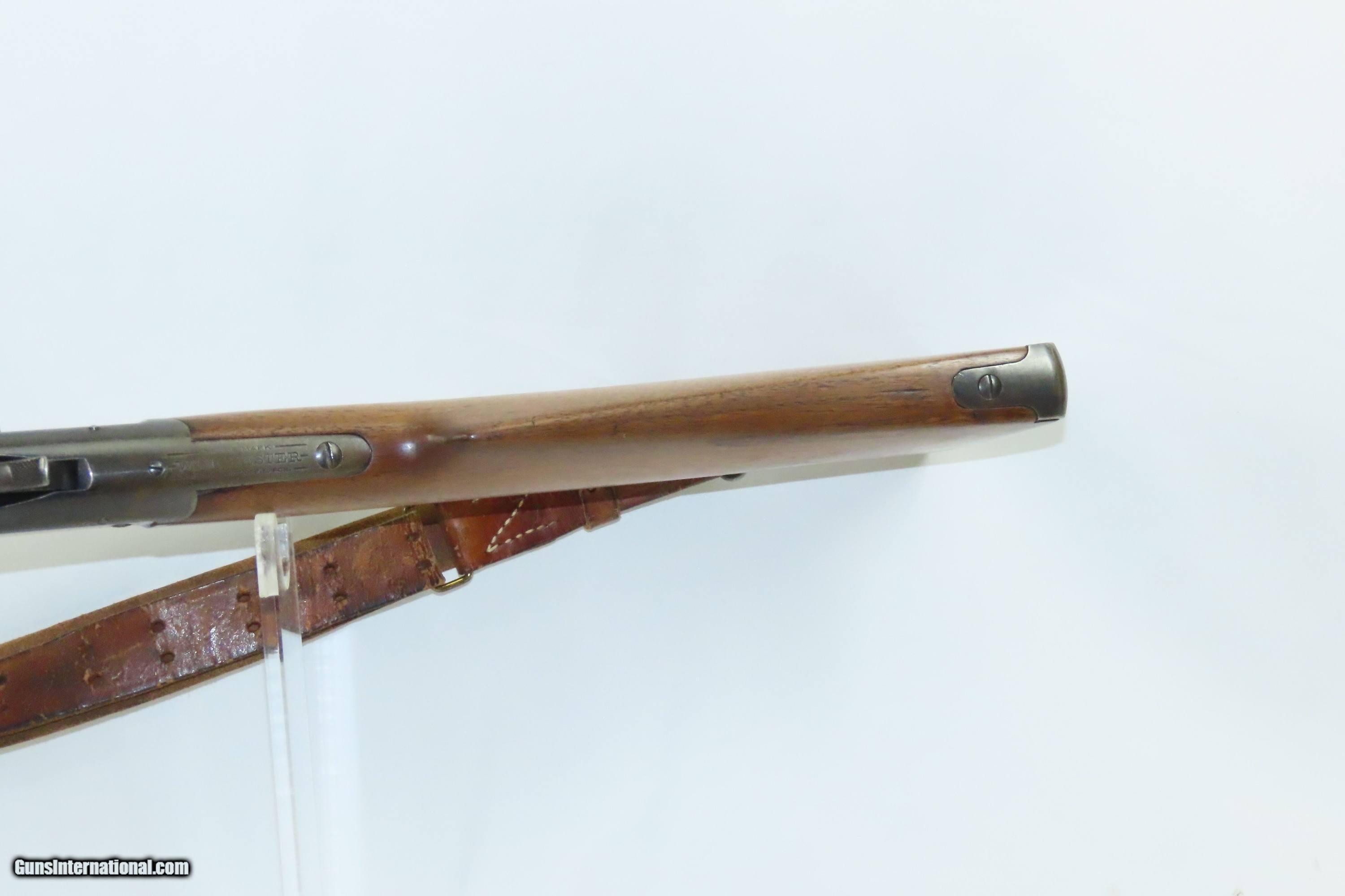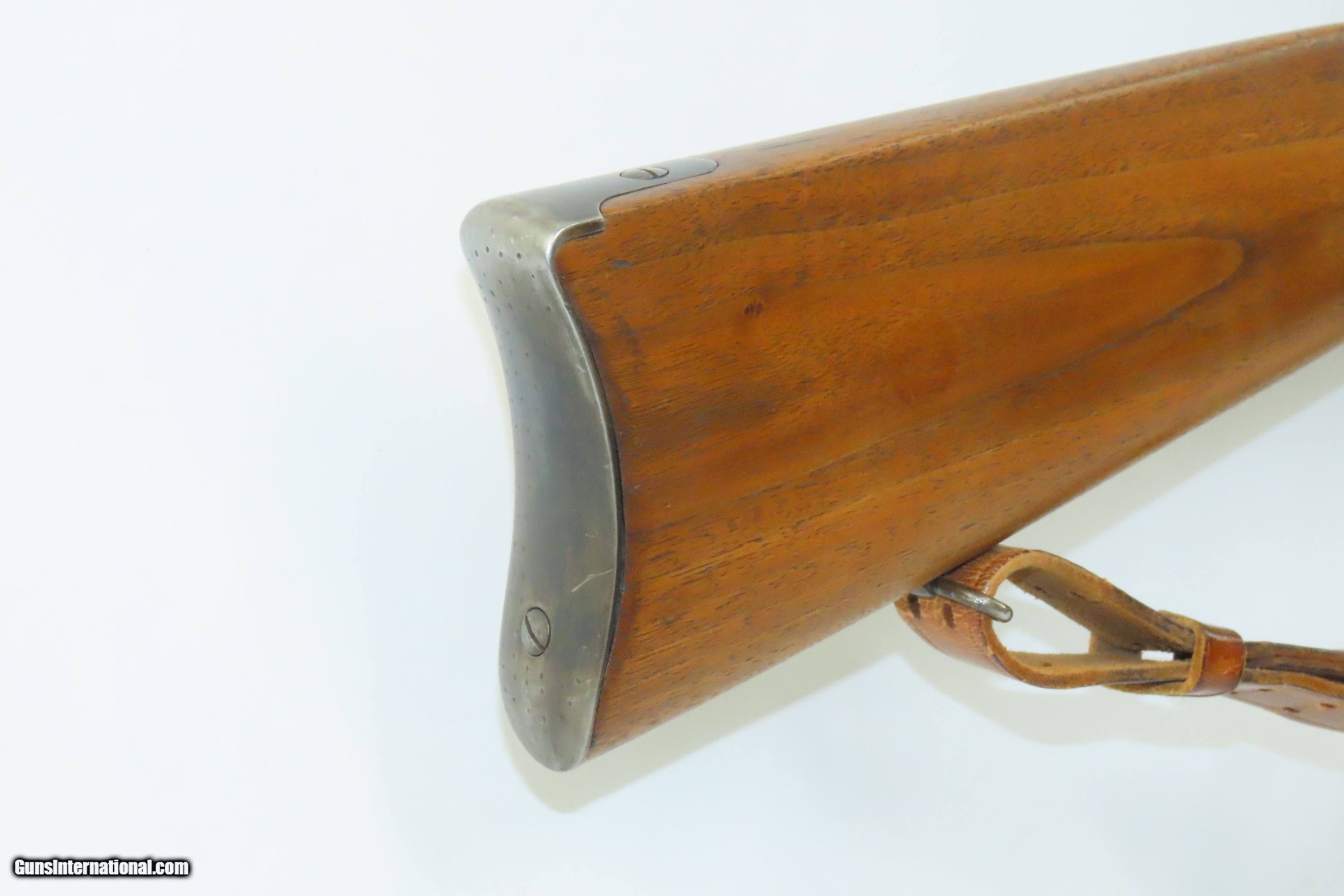 Description: c1905 mfr. WINCHESTER M1885 LOW WALL .22 Short RF SINGLE SHOT Musket C&R With LEATHER SLING & LYMAN REAR PEEP SIGHT Here we present a C&R Winchester Model 1885 Low Wall Musket, chambered in .22 Caliber Short Rimfire, made in 1905 in New Haven, Connecticut. The Model 1885 Single Shot rifle was famed gun designer John M. Browning’s first design and patent, and it was the first single shot to be built by Winchester. The patent for the Model 1885 rifle was what brought Browning and the Winchester Repeating Arms Company together for the beginning of their eventual 19-year association. Nearly 140,000 Model 1885s (both Low Walls and High Walls) were manufactured from September 1885 to June of 1920. There were two basic frame types, referred to as “High Wall” and “Low Wall”, made. The frame types refer to the height of the receiver sides, and its relationship to the breech block. With the High Wall version, built for the more powerful cartridges, just the top of the breech block is visible when viewed from the side. The Low Wall, chambered for all of the various rim fire cartridges, and most of the pistol caliber center fire cartridges, exposes the upper 1/3 of the breech block. The overall condition is very good. Original blue finish on the barrel and receiver with a refinished butt plate. The action is excellent. The bore is shiny bright with sharp rifling. The walnut stock is smooth and solid throughout. The sling is U.S. issue and remains in good condition for the age. This firearm is classified as a Curio & Relic. Barrel is 28 inches. Caliber: .22 Short Rimfire Overall condition as seen in photos. Very Fast. Very Safe. FREE SHIPPING. Will need to be sent to your local FFL or C&R licensee. This firearm is classified as a Curio & Relic. Guaranteed AUTHENTIC & Includes CERTIFICATE OF AUTHENTICITY. ancestryguns $1800 #240076 SOLD Antique: Yes |