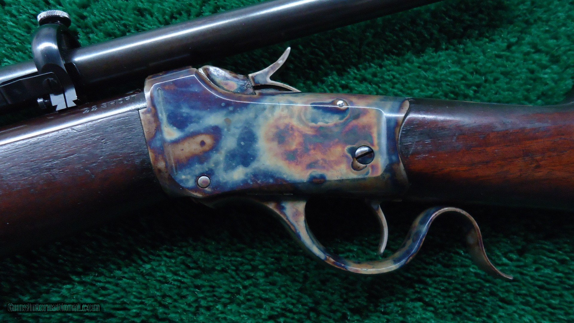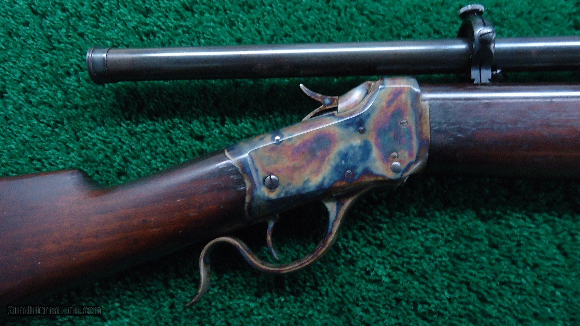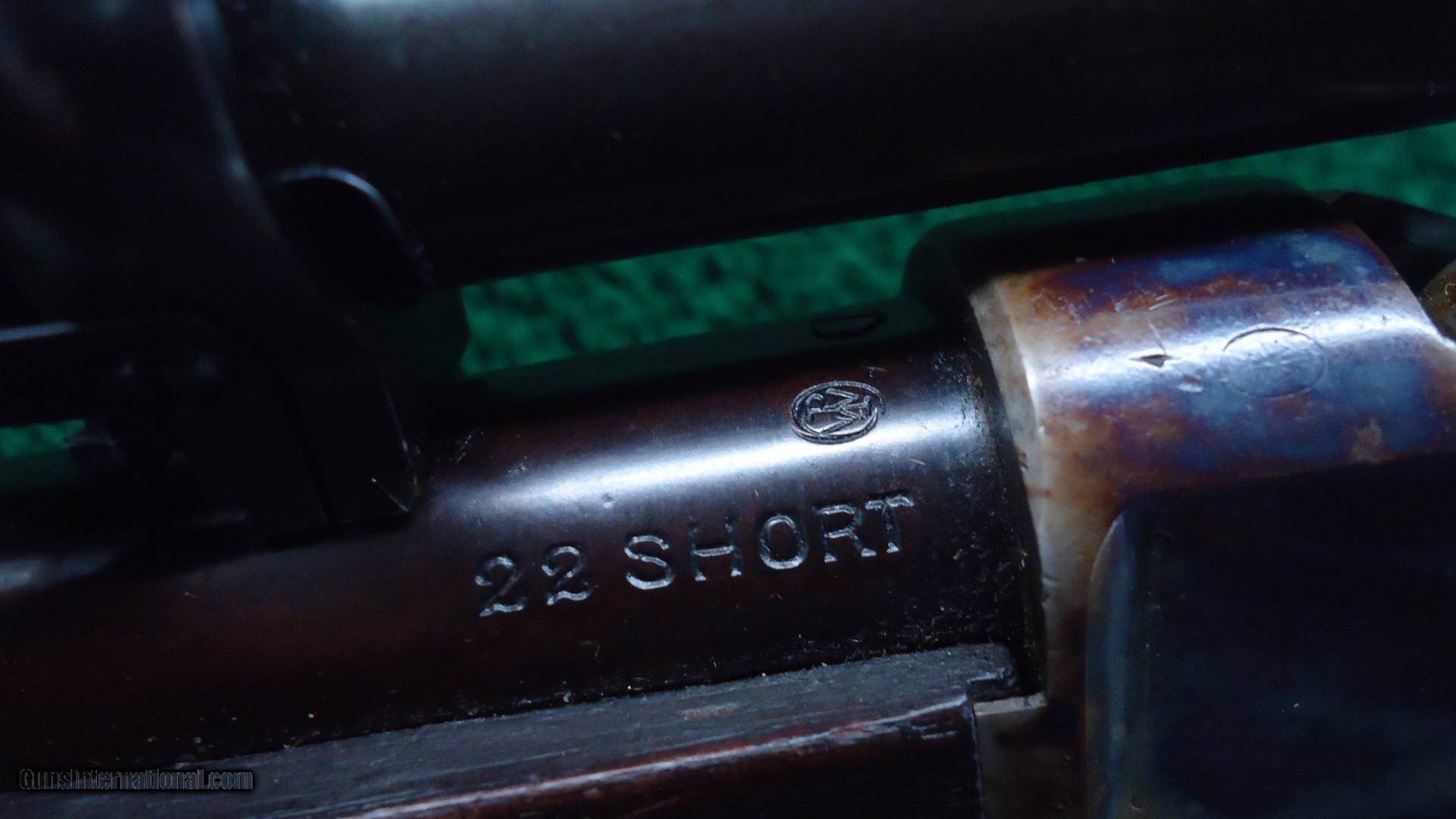 Description: 28 inch round barrel chambered in 22 Short caliber with a bright shiny near excellent bore. This gun has been completely re-finished. Vivid case color on the receiver and most of the barrel re-blue remains. A touch of brown starting to show. Fitted with a full length Lyman Stevens #141 target scope with good optics. Wood is in excellent condition with just some minor handling mars. Complete with sling swivels. Neatly filled in holes that were from a side mount sight. Nice little gun made sometime between 1913-1923. Leroy Merz Antique Firearms specializes in antique and vintage Winchesters and other fine American firearms. Since 1965 Mr. Merz has taken part in the world of firearms and has been a contributor to many well known reference books. We have hundreds of additional guns in every price range at our home online. Search for Merz Antiques in google. SOLD Curio/Relic: Yes Rifle Caliber: .22 Short |