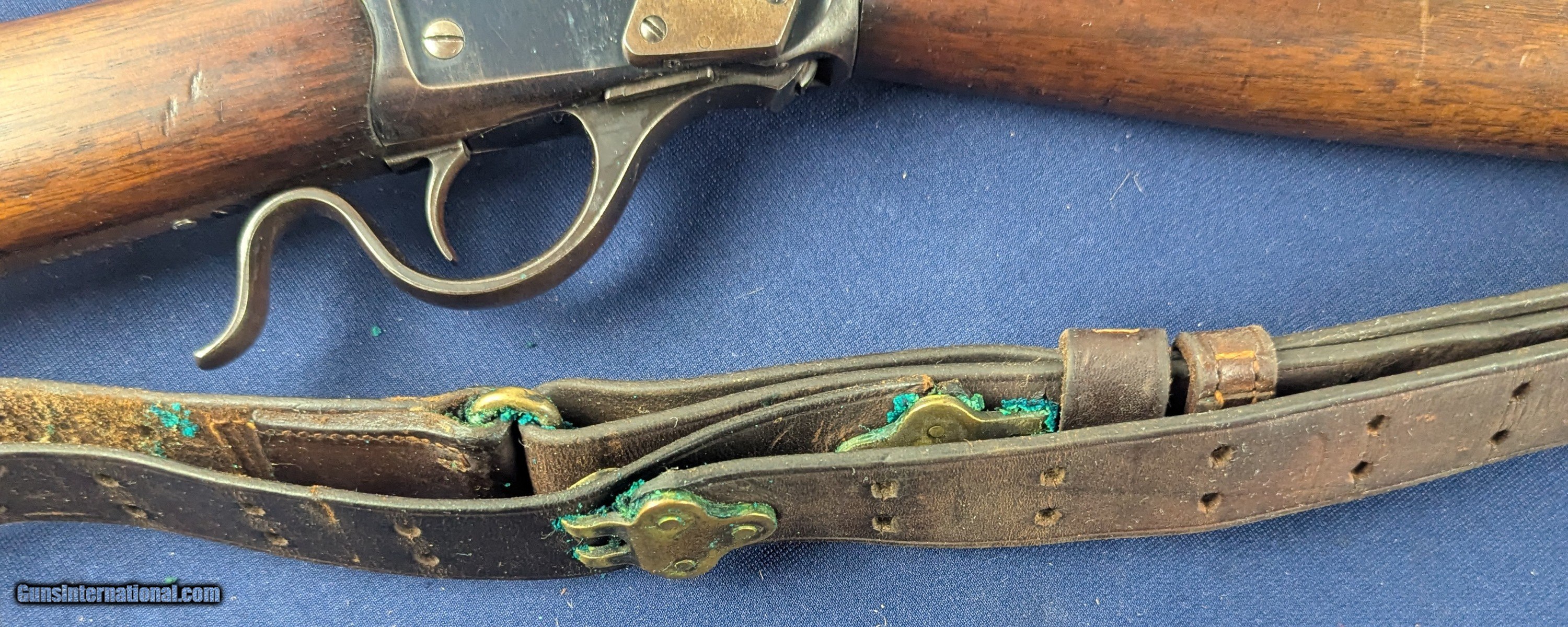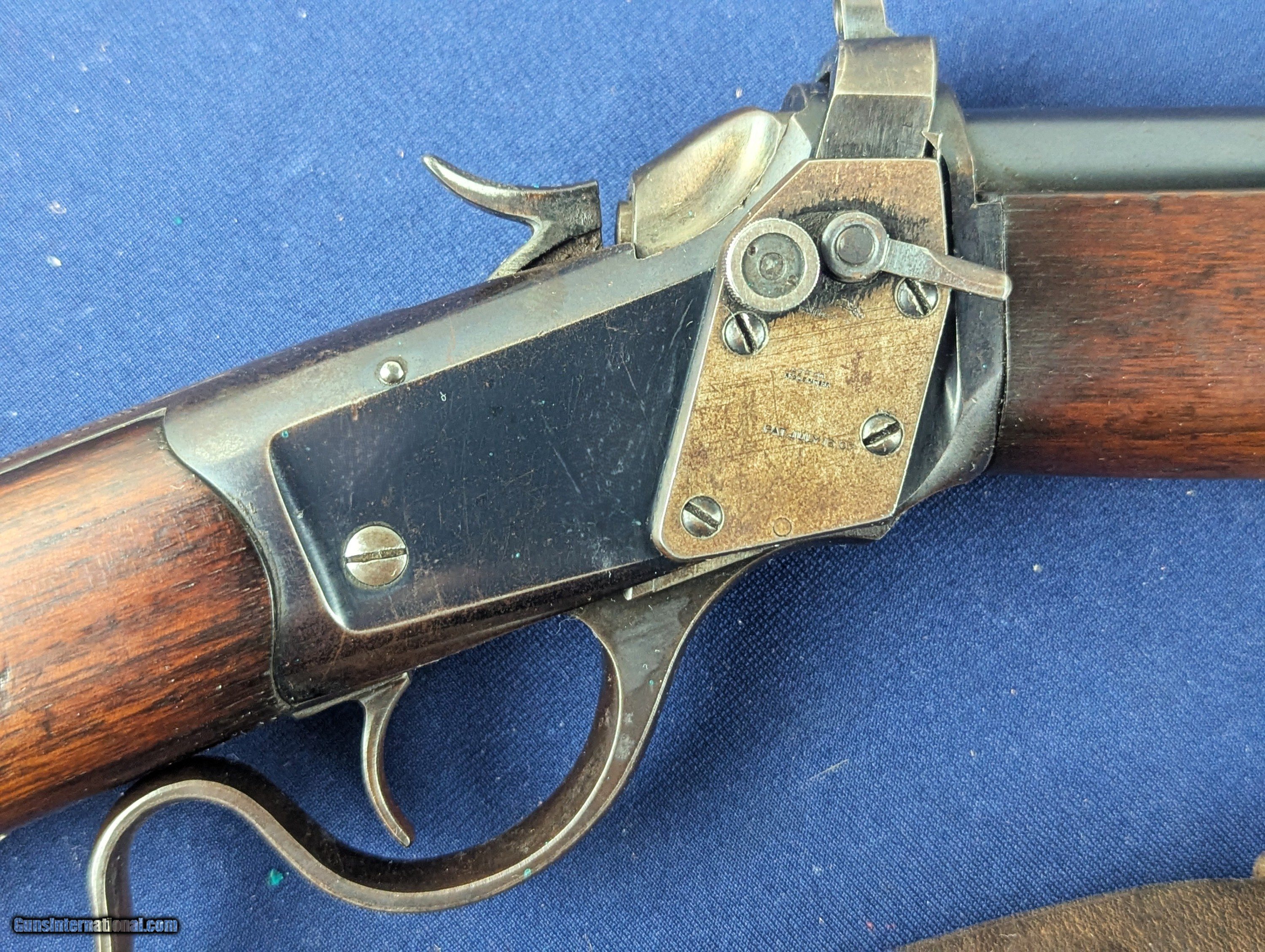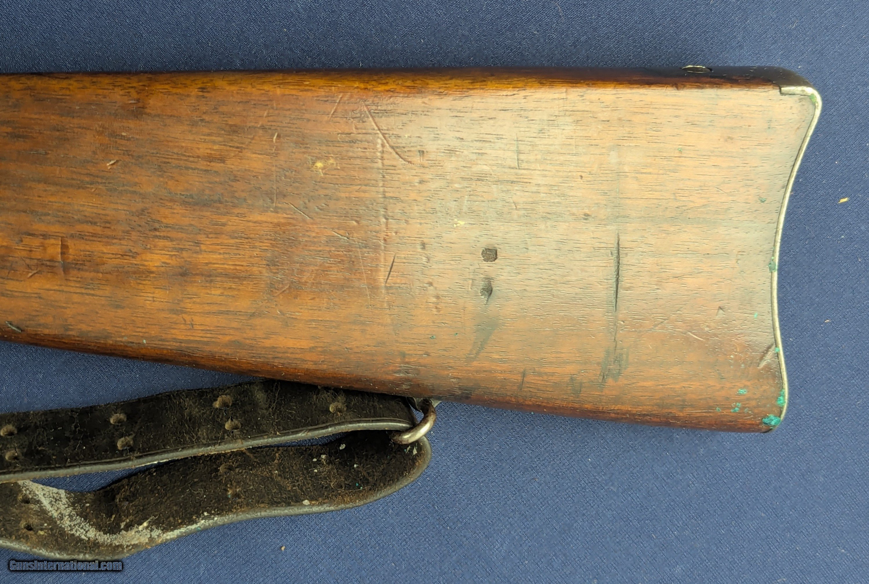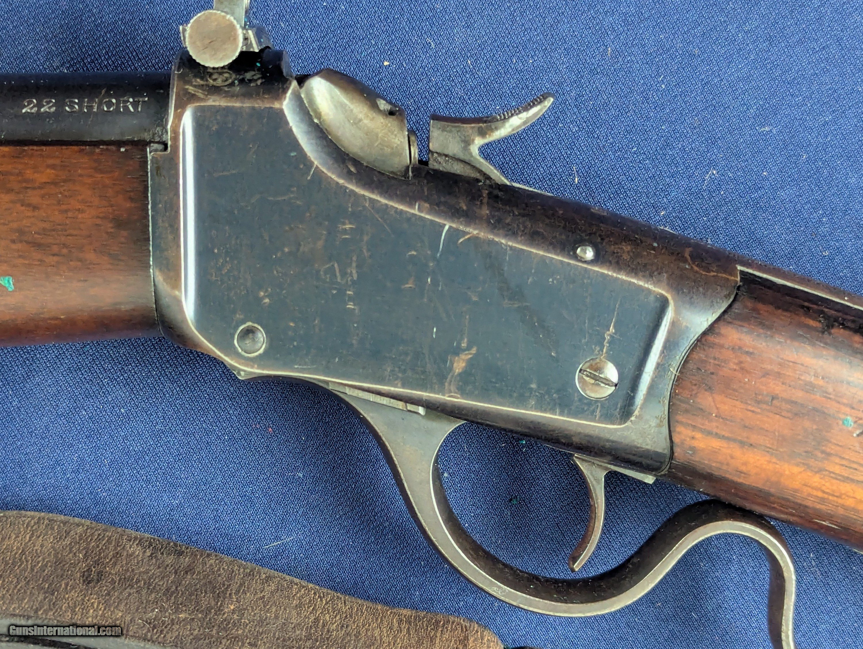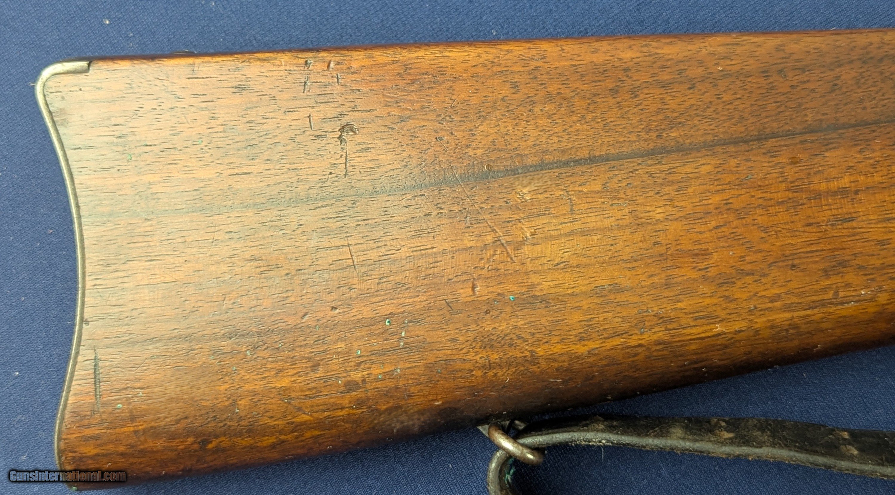 Description: Exc. Winchester Winder 1885 U.S. Issue .22 Short Training Rifle Offered here and just acquired by us from a very prestigious 60 year arms collection is this excellent U.S. Winchester Model 1885 Low Wall Winder Musket chambered in an uncommon .22 Short caliber. The rifle features a 28-inch round barrel with tall blade front sight and Lyman precision receiver sight. The Winchester Repeating Arms Co. Model 1885 is a single-shot falling-block action, which was offered in two distinct variations, the Low Wall and the High Wall, and was designed by John Browning and produced from 1885-1918. In 1883, Thomas G. Bennet, the Vice-President and General Manager of the Winchester Repeating Arms Company, traveled to Ogden, Utah to meet with the Browning Brother’s about the negotiation and purchase of the single-shot design, as well as a prototype of what would become the Model 1886 lever action. This meeting began what was to be a very fruitful 20-year Winchester and Browning collaboration. The rifle was produced to satisfy the demands created for the growing sport of long-range “Match Shooting” and was dominated by the single-shot giants, such as Sharps, Remington, Stevens, Maynard, Ballard. They entered as competitors and excelled, with Major Ned H. Roberts (inventor of the .257 Roberts cartridge) describing the Model 1885 as “the most reliable, strongest, and altogether best single shot rifle ever produced”. The action was considered so strong and trustworthy that Winchester used the Model 1885 as the test rifle for all new large calibers. Later, the U.S. Army would order a special contract of the “Winder Musket”, a marksmanship training rifle. The breechloading Winder Musket was given its namesake from its brainchild of Colonel C. B. Winder, an advocate for marksmanship training. The top of the receiver is marked “U.S.” over a flaming bomb. The rifle features the band fastened grooved full length walnut forearm and straight grip, sportier style walnut stock with original crescent steel butt plate. The rifle receiver shows traces of original finish case fading to a gray coloration, with the barrel having virtually all of its original bright blue finish with slight fading in one spot closer to muzzle. The wood shows patina from wear and use with some dents. Buttplate a grey patina. Original sling comes with rifle with vertigris on brass parts which we have not cleaned. Serial Number: 131618. This firearm qualifies as a Curio & Relic eligible item. L566 Thanks for your bid. Shipping for this item is $48 however final shipping amount is based upon geographical area. Handling is $18.00 for longarms only. We gladly accept money orders, bank checks and personal checks. Credit card orders (VISA AND MASTER CARD ONLY) charged 3.95% additional for use. PLEASE CALL DALIA AT 203-257-5256 TO GIVE CREDIT CARD INFORMATION. Also, please vview our at hansenguns. Click on "Online Catalog" and see All OF OUR ITEMS LISTED CONSECUTIVELY on or search online on that site with the ID “lope”...... OFFERED ONLINE AND AVAILABLE IN OUR RETAIL GALLERY IN SOUTHPORT, CT. Visit us also on Facebook at ://facebook/hansenguns/?fref=ts. We also own and/or operate Hansen Cartridge Co. and the Ruger Collectors Assc.(RCA). Hansen & Hansen wishes to expedite each order received, however we ship 80-100 items weekly, therefore orders paid by money orders or bank checks are cleared for shipping 5-7 days after deposited funds show in our account. Shipping date is scheduled ONLY AFTER VERIFICATION TAKES PLACE AND FFL/C&R IS RECEIVED (IF APPLIES). This is 5-7 days after WE receive order by mail - NOT customer date mailed and postmarked and after credit card funds are posted. Credit card orders exceeding $500 must be cleared through customer’s bank before shipping. Personal checks are accepted but orders are held UP TO 3 WEEKS after deposit of funds before items released for shipping. IF you have special instructions or require overnight or expedited shipping please advise at time of ordering and we will gladly prioritize shipping FOR AN ADDITIONAL CHARGE. THIS IS OUR POLICY and we encourage you to PLEASE READ AND UNDERSTAND OUR POLICY BEFORE . We would be pleased to answer ANY questions by phone (our toll free number is 1-800-571-7337 or e-mail cwlopiaol. Curio/Relic: Yes Price: $1,950.00 Buy Now Contact Seller |